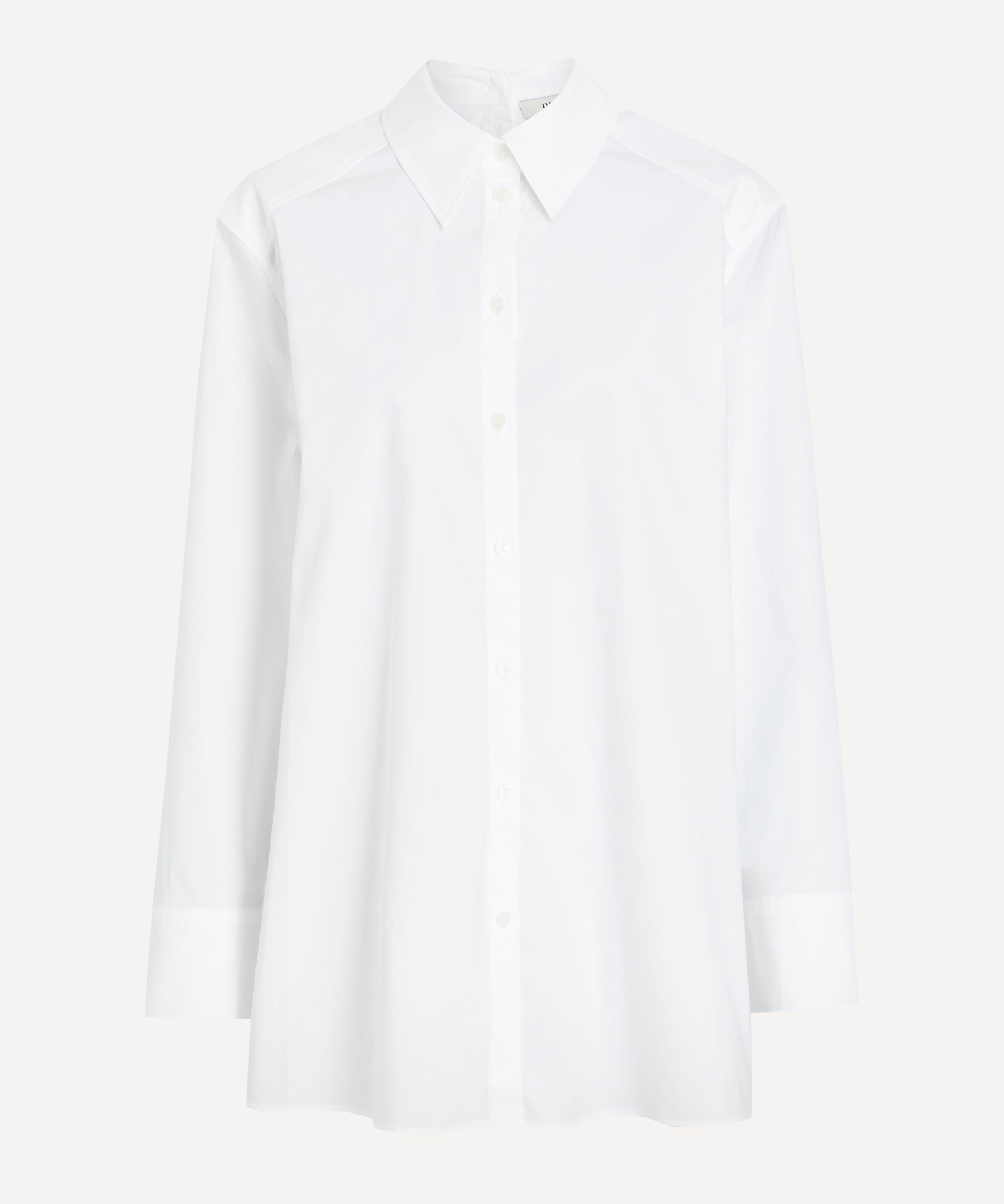 Cut from crisp cotton poplin, the Emory shirt offers a modern twist on classic shirting. Designed with a boxy, oversized fit and dropped shoulders, it features a double collar and buttoned plackets at both the front and back for a playful finish.