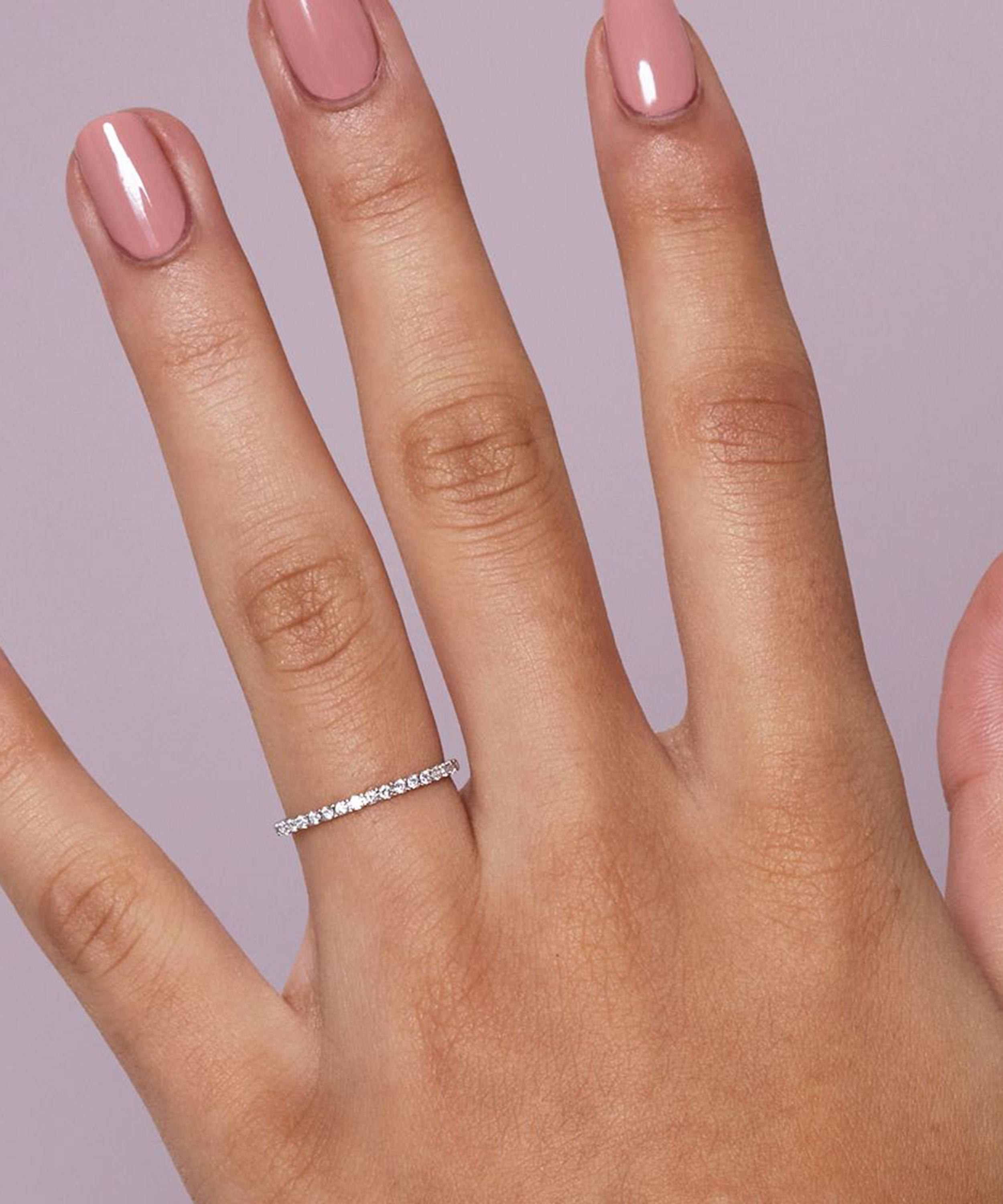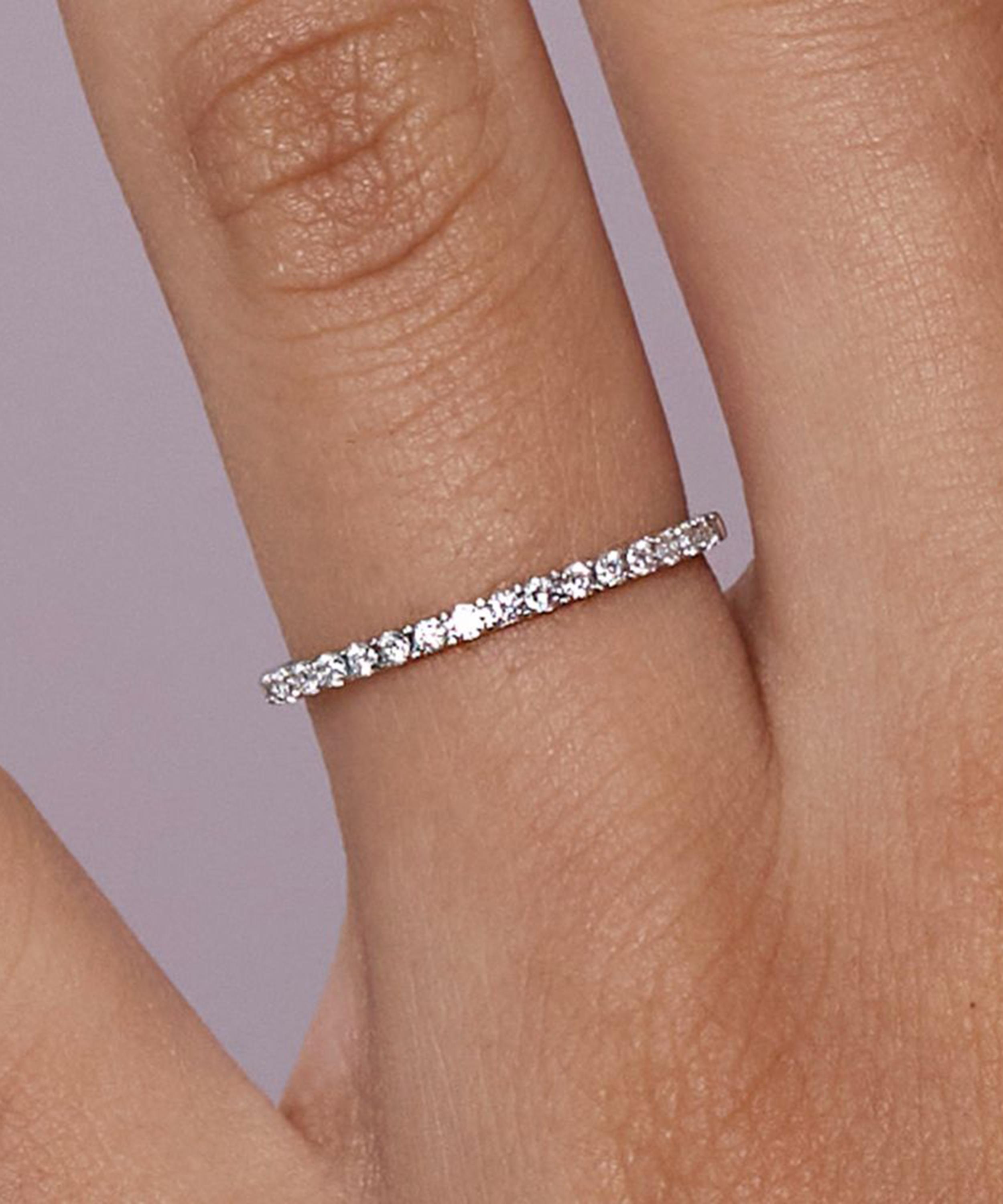 The most delicate of the brand's micro set eternity styles, this half eternity ring features a 0.19-carat row of 19 brilliant cut white diamonds - each presented in a tiny claw setting on a high-polished, 18 carat white gold band. Designed for stacking with other fine gemstone rings from the designer's collections, try layering it with a classic diamond solitaire ring for a contemporary bridal curation.
