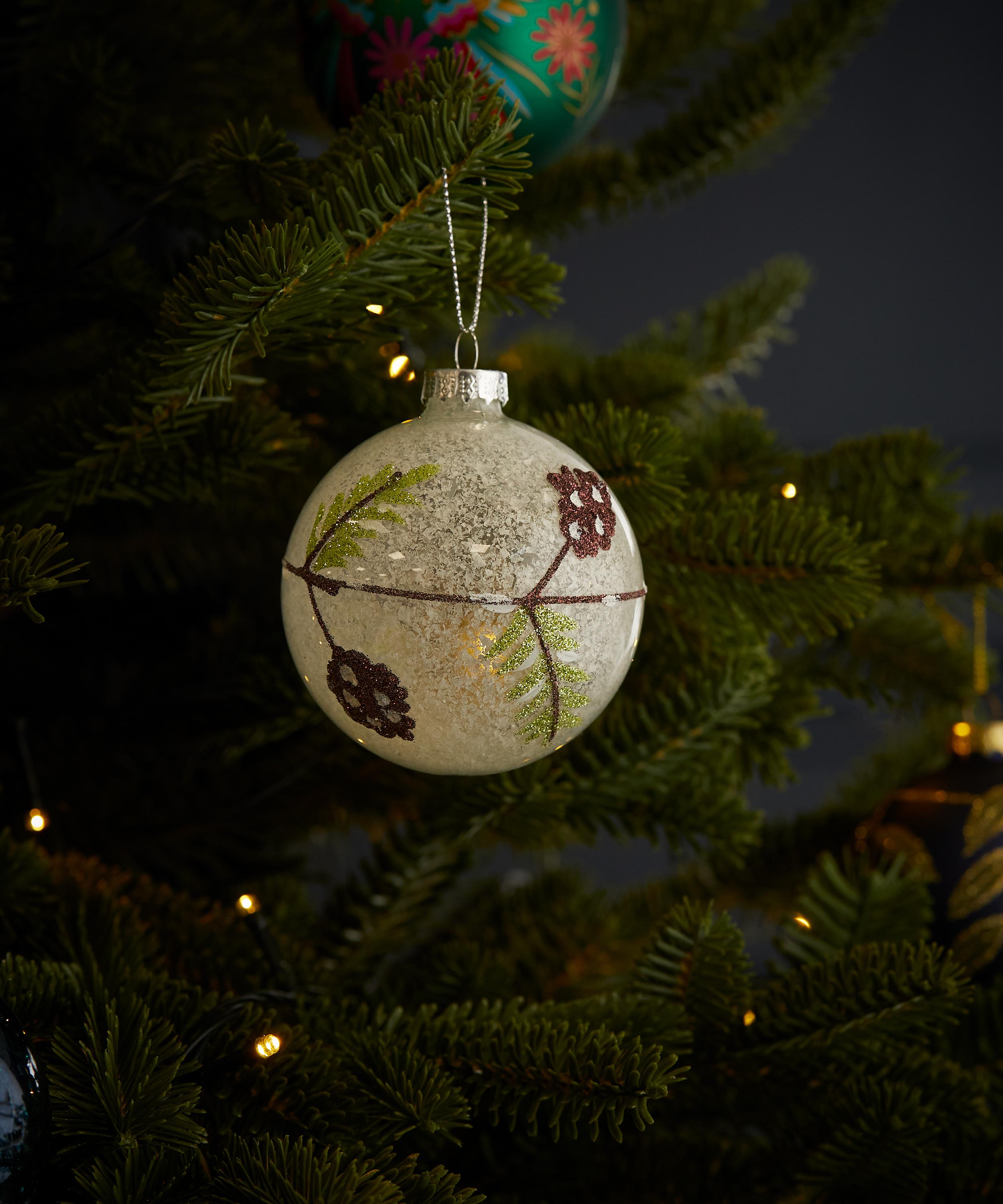 Deck out your tree with a touch of whimsy and bring the magic of the season to life with this bauble. An alternative to traditional decorations, it’s exquisitely crafted from glass, featuring a white colourway and pinecone design - a luxuriously embellished option for those seeking a treasured heirloom piece, use to bring a pop of colour to your festive display.