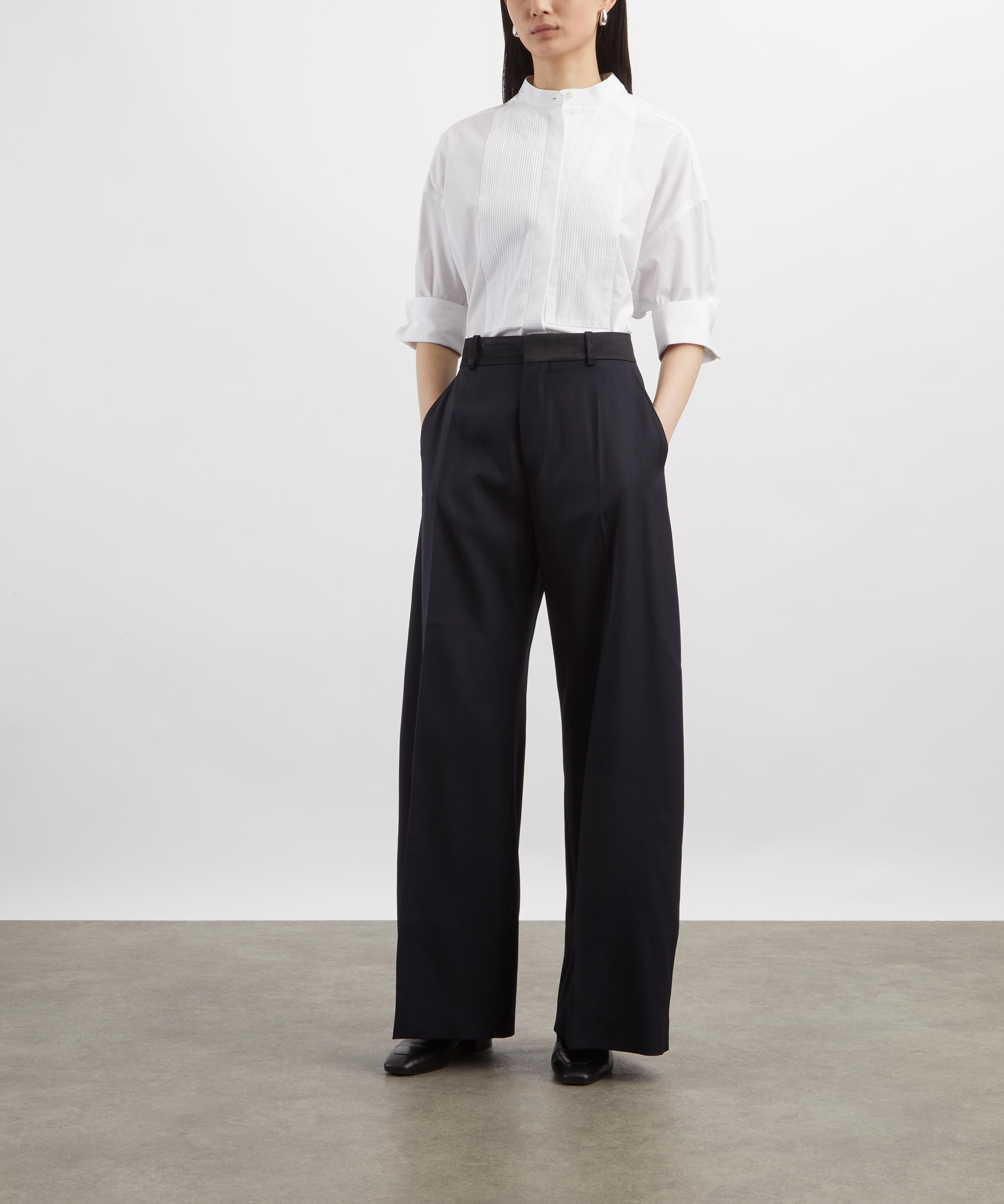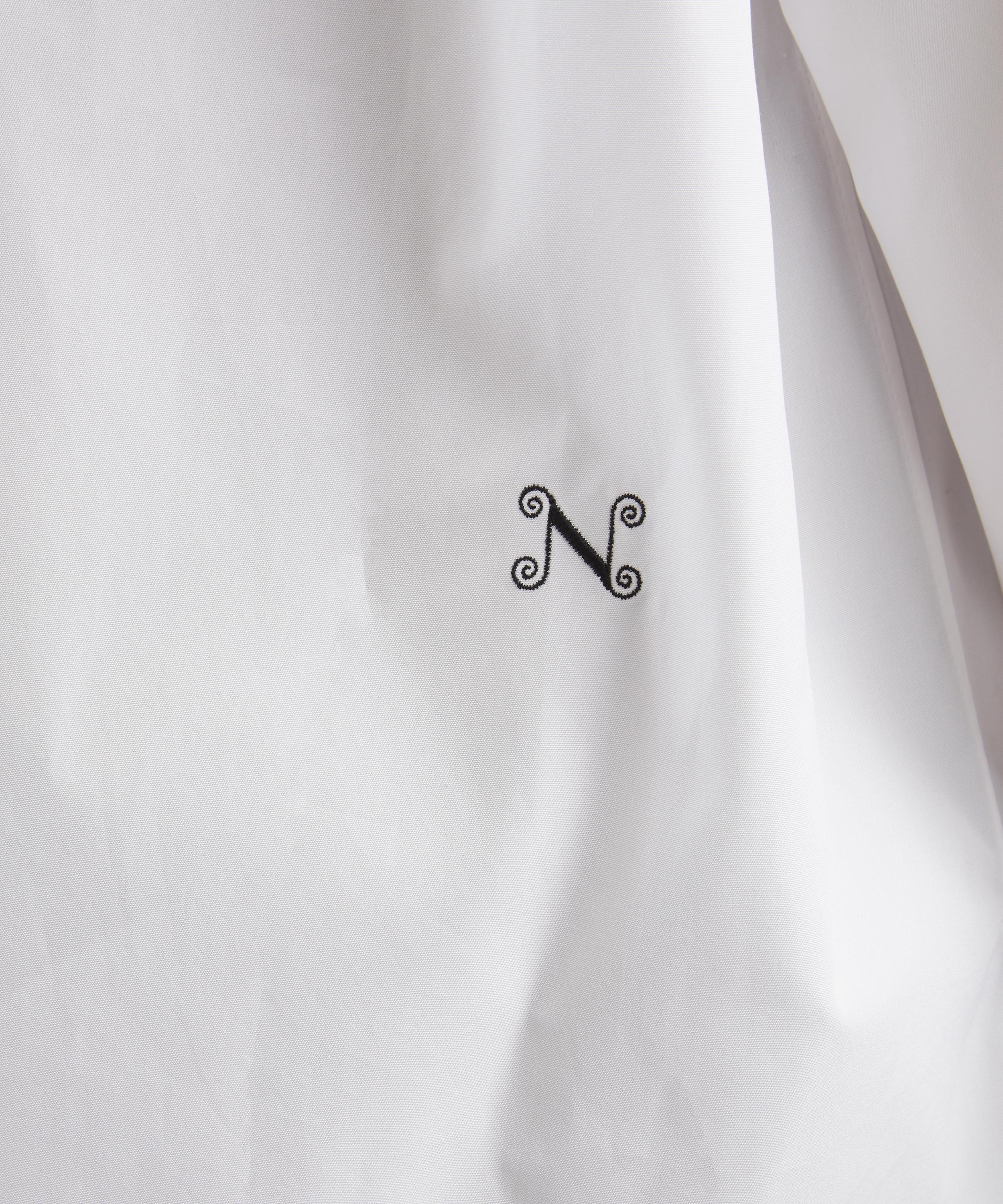 Crafted from premium English cotton by Thomas Mason, this tuxedo shirt reworks classic tailoring through an oversized fit. Detailed with a band collar, pleated bib and exaggerated cuff links, it’s finished with signature ‘N’ embroidery for a playful, polished touch.
