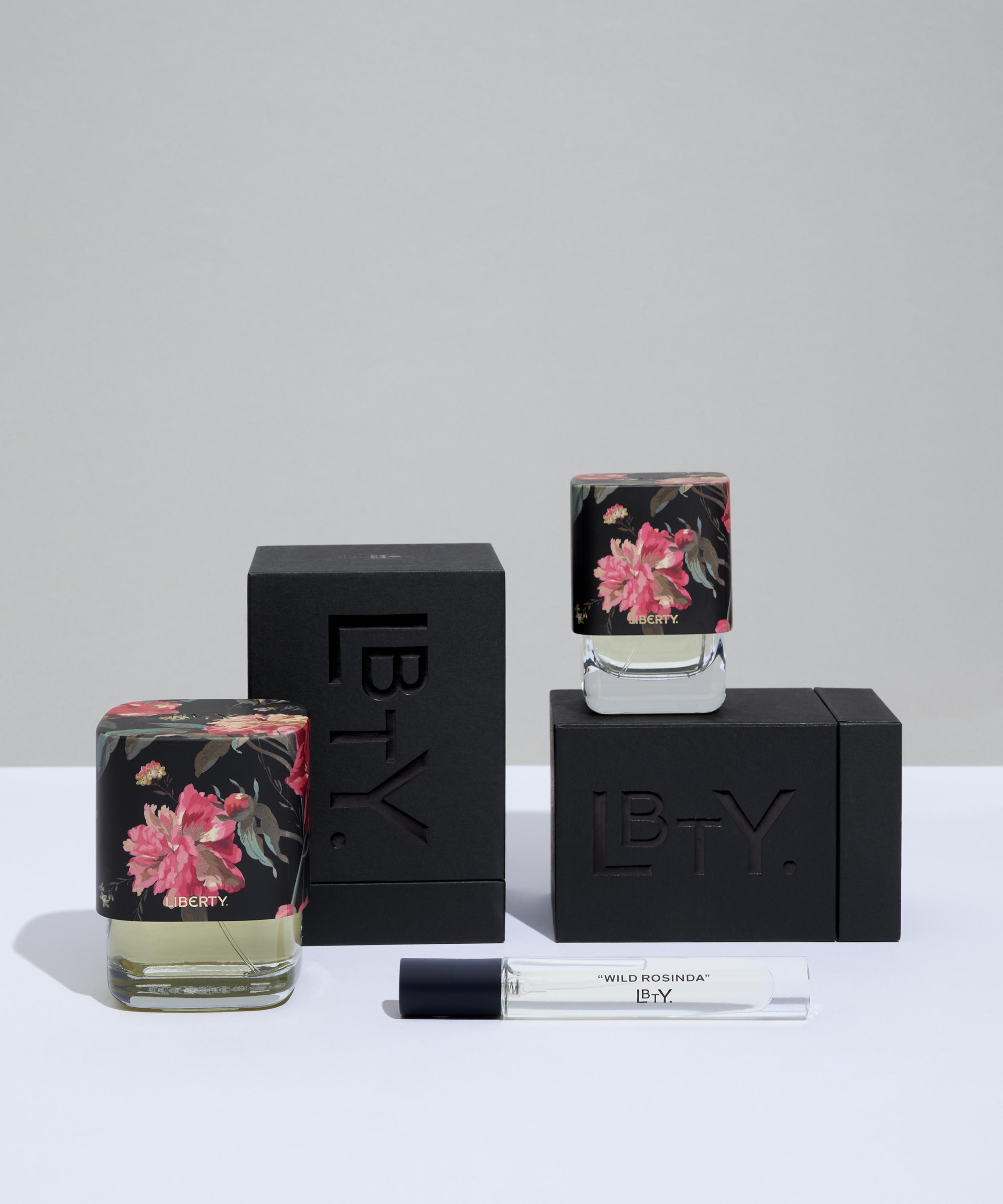 Experience the wondrous world of Liberty in a fresh way with Wild Rosinda eau de parfum from the Liberty LBTY. Fragrance collection, reimagining an iconic, archival print in olfactory form.