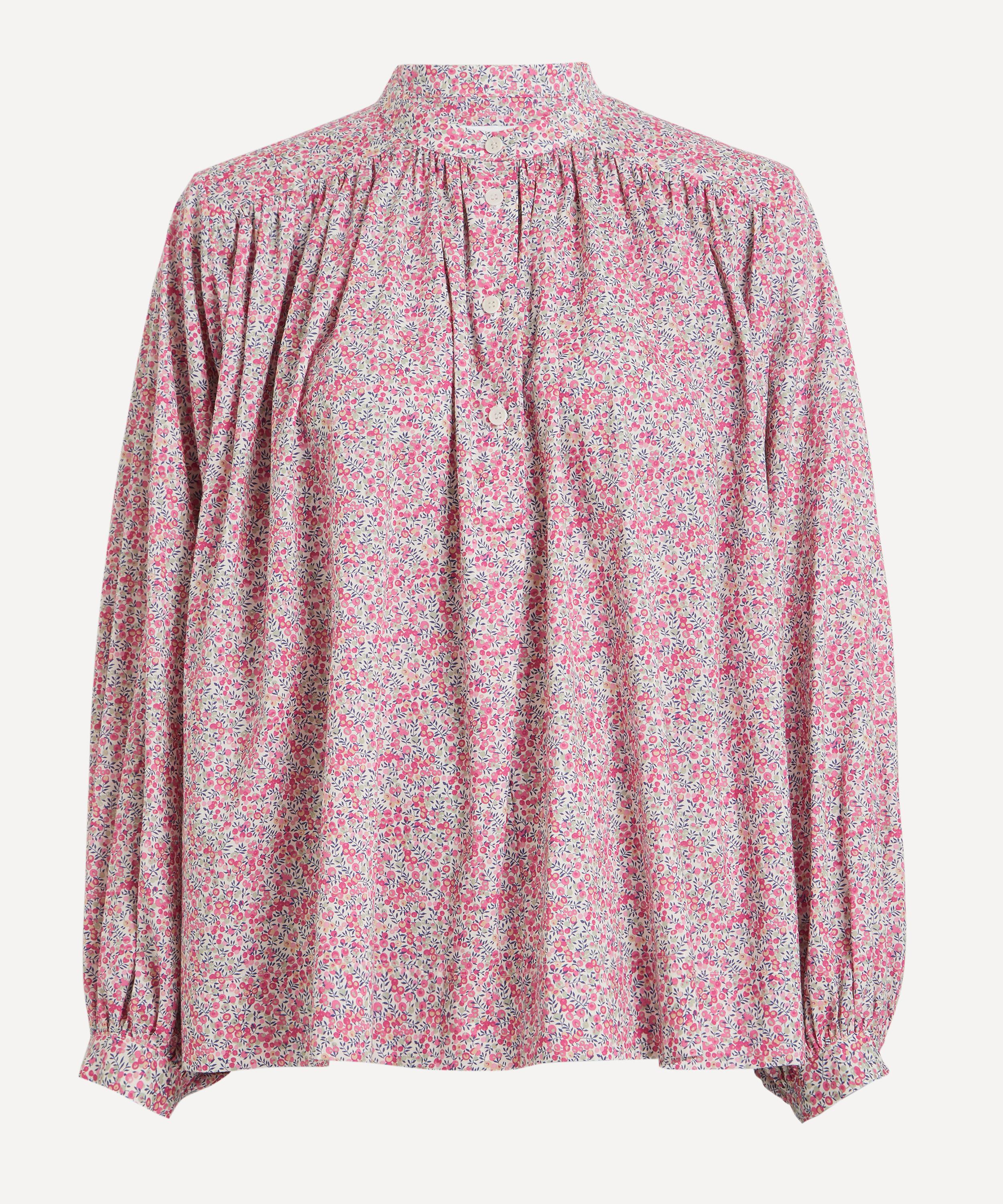 Crafted from our signature Tana Lawn Cotton™, the Boho Shirt features a voluminous fit and long blouson sleeves that flatter the silhouette. Inspired by retro boho fashion, it boasts a grandad-style collar with a half-placket, complemented by intricate gathering along the yoke and shoulders.