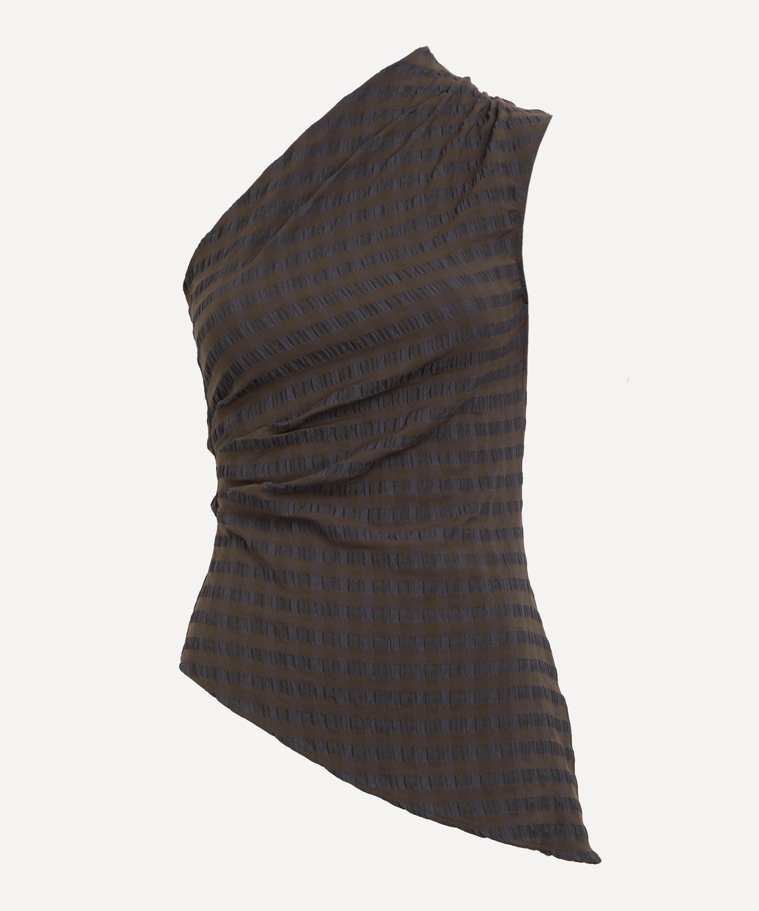 Celebrate the act of getting dressed with the Win Seersucker Asymmetric Top from Barcelona-based label, Paloma Wool.