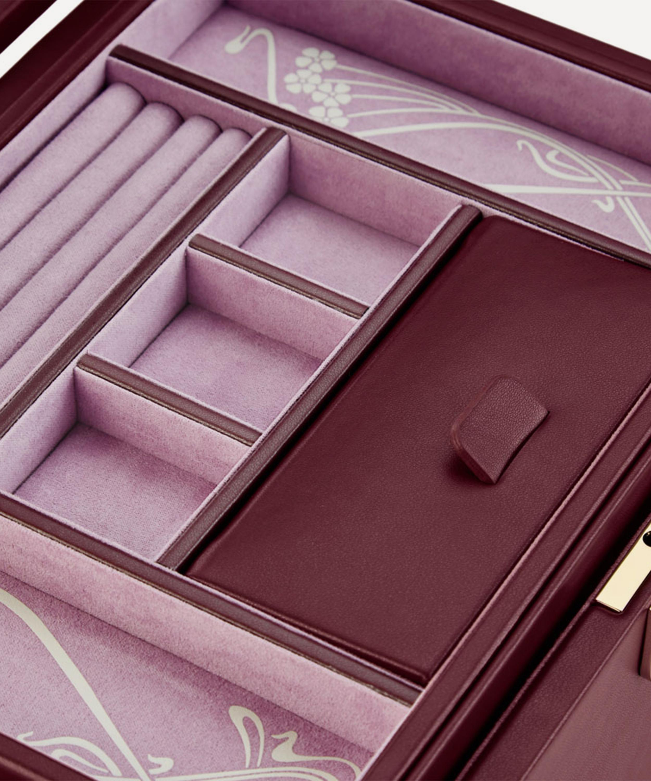 Boasting a celebration of tradition, made modern, it’s thoughtfully engineered by two icons of British design, featuring a durable exterior embossed with Liberty’s Art Nouveau classic, Ianthe. Inside, it’s lined with WOLF’s patented LusterLoc™ fabric, crafted to protect your jewellery from tarnishing and discoloration. Equipped with fifteen compartments, including three ring rolls, two watch cushions and an interior mirror, it’s perfect for storing your curated collection beautifully in place. More than a jewellery box, it’s a keepsake in its own right, designed to be admired for generations. Gift it to someone special as an expression of your sentiment or use it to elevate your own dressing table.
