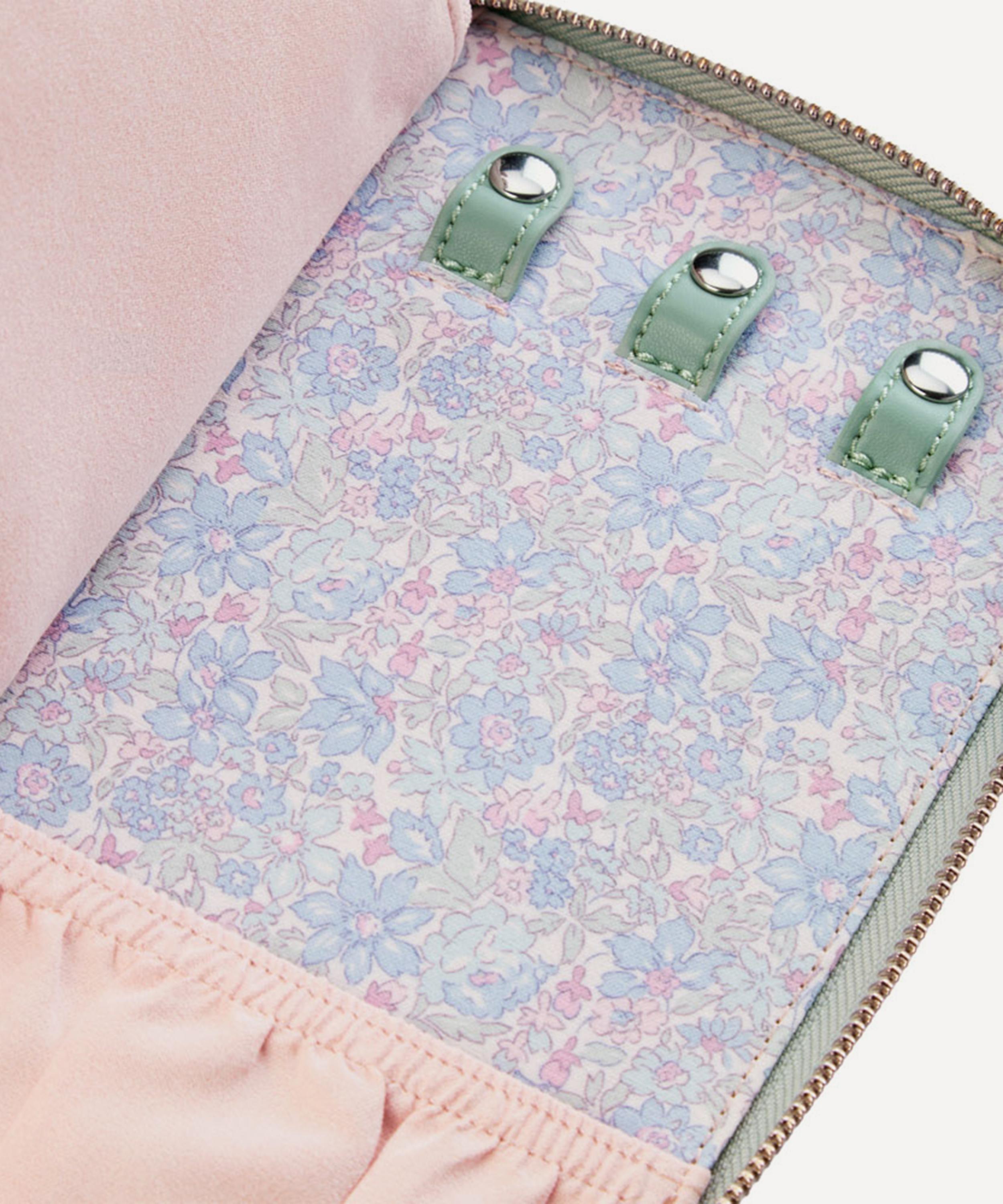Boasting a celebration of tradition, made modern, it’s thoughtfully engineered by two icons of British design, featuring a durable exterior in sage-green. Inside, it’s lined with Liberty's Julia print and WOLF’s patented LusterLoc™ fabric, crafted to protect your jewellery from tarnishing and discoloration. It’s designed with dedicated sections for necklaces, rings and earrings, including a zipped pocket and central pouch. The streamlined silhouette slips neatly into your carry-on or tote, perfect for weekends away, holidays, or everyday use – a travel essential for jewellery lovers who never leave their sparkle behind.