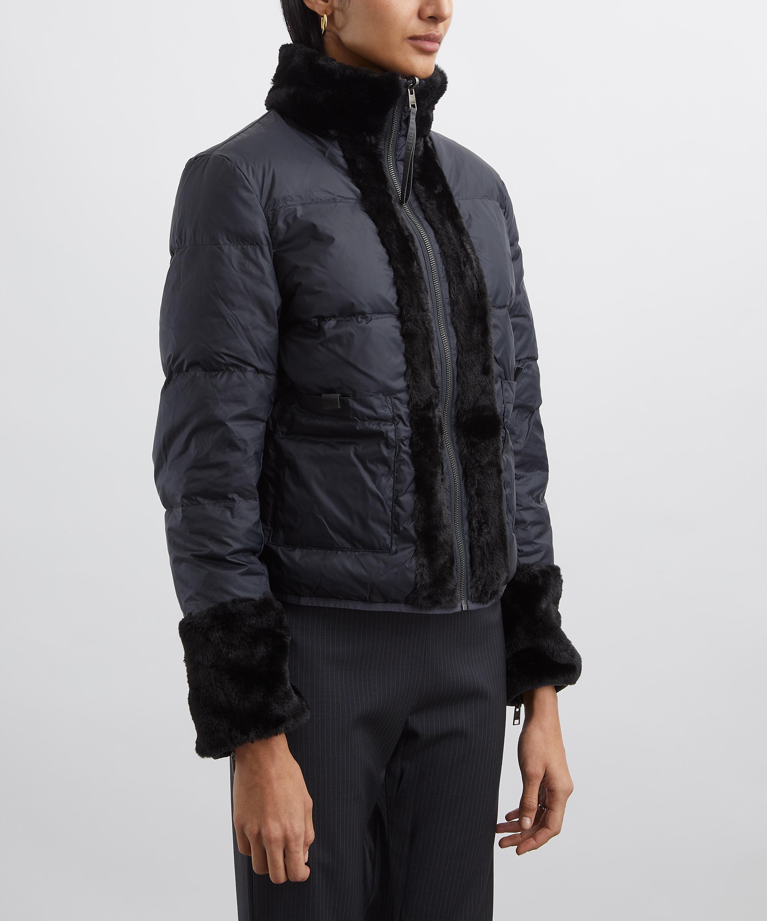 Constructed from nylon, this down-filled puffer jacket features a reversible design accented by a contrast furry collar, placket, and inner cuffs. A zip fastening and both exterior and interior pockets ensure a practical finish.