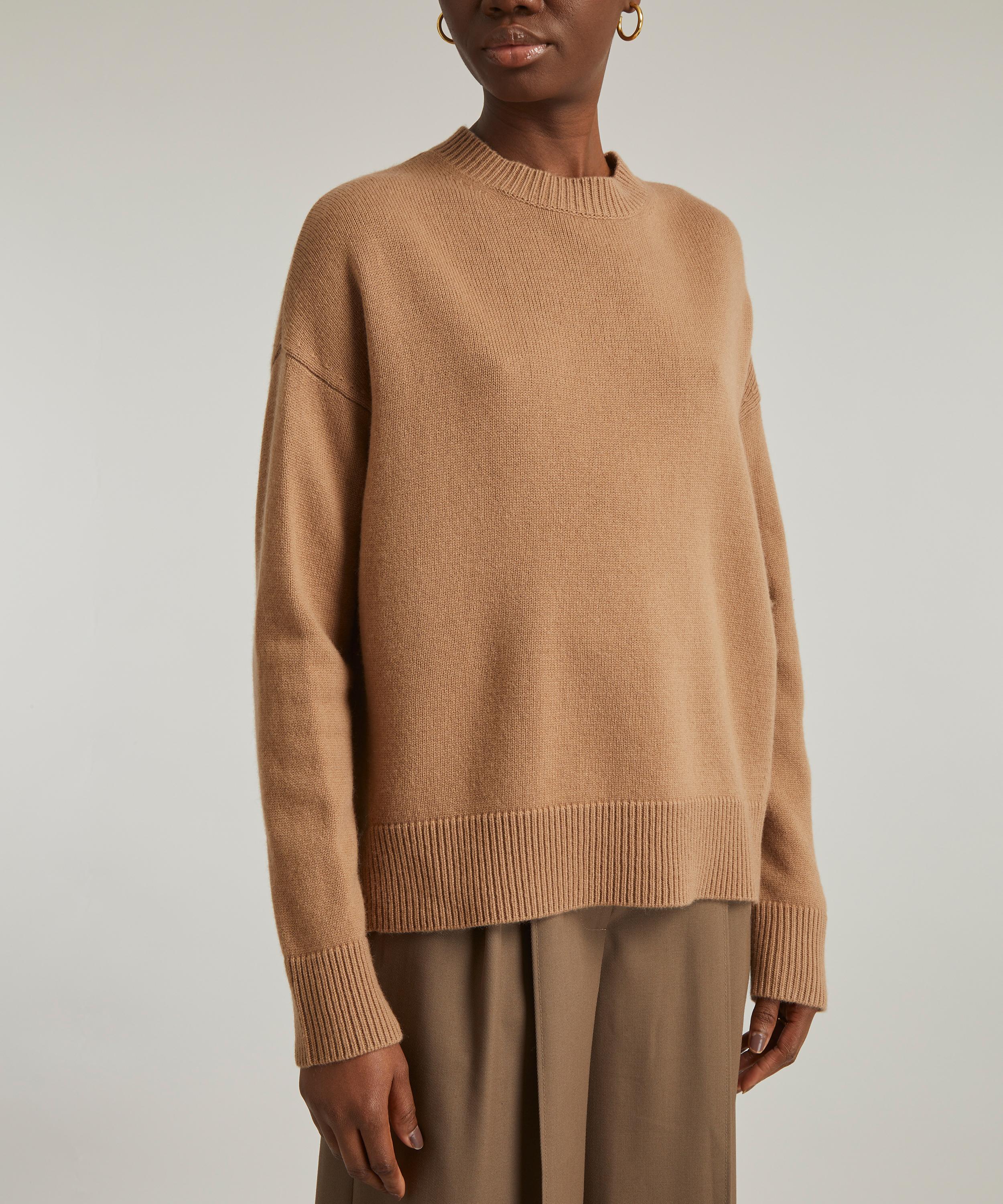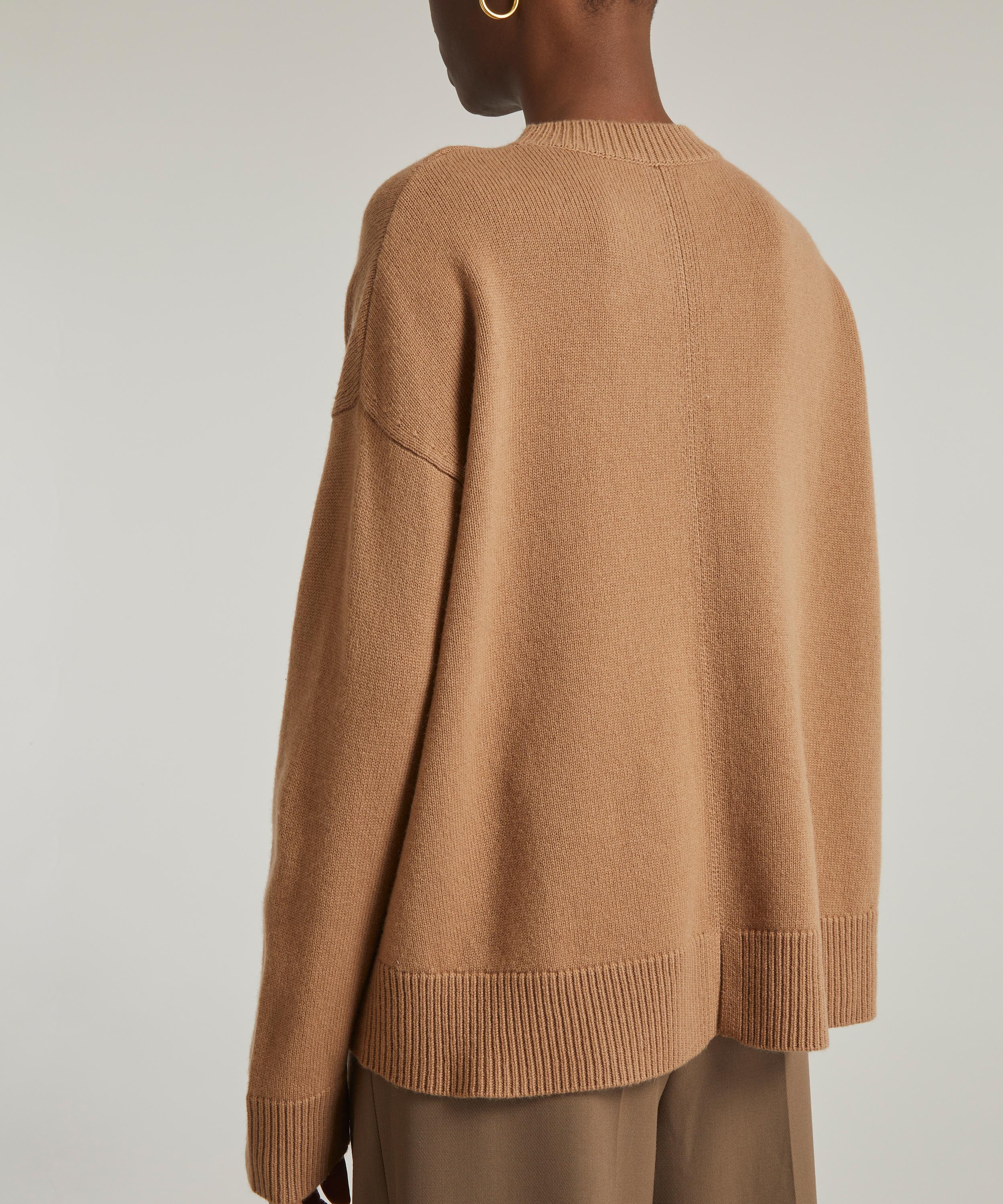 ‘S Max Mara showcases its dedication to wearable luxury design with this classic knitted crew-neck jumper. Crafted from a sumptuous wool and cashmere-blend, this camel pullover is cut for a relaxed fit with dropped shoulders and loose, long-sleeves featuring rib-knit trims.