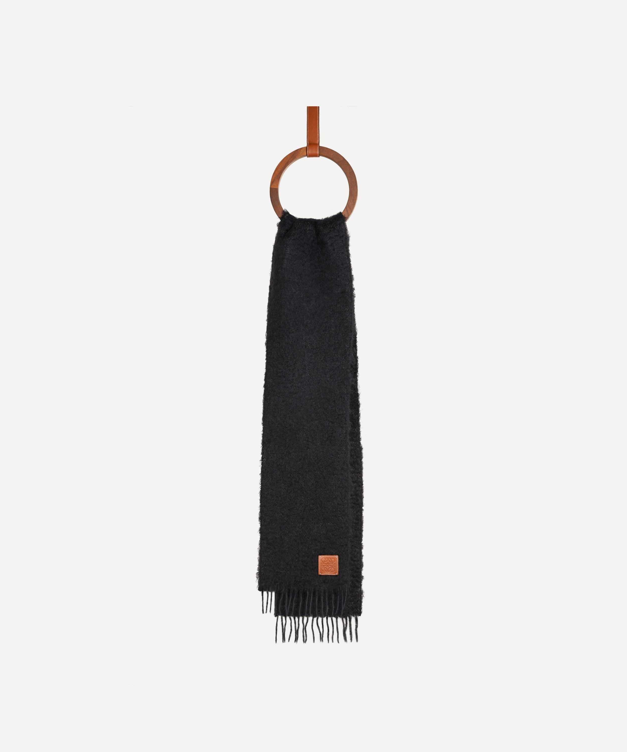 Crafted in Spain from a warming wool and mohair blend, this scarf is available in a range of versatile colourways - each finished with contrasting fringed ends and a calfskin leather patch that's debossed with the brand's distinctive Anagram logo. Try draping it over crisp, contrasting outerwear, or knot it close to the neck to brave even the coldest temperatures in style.
