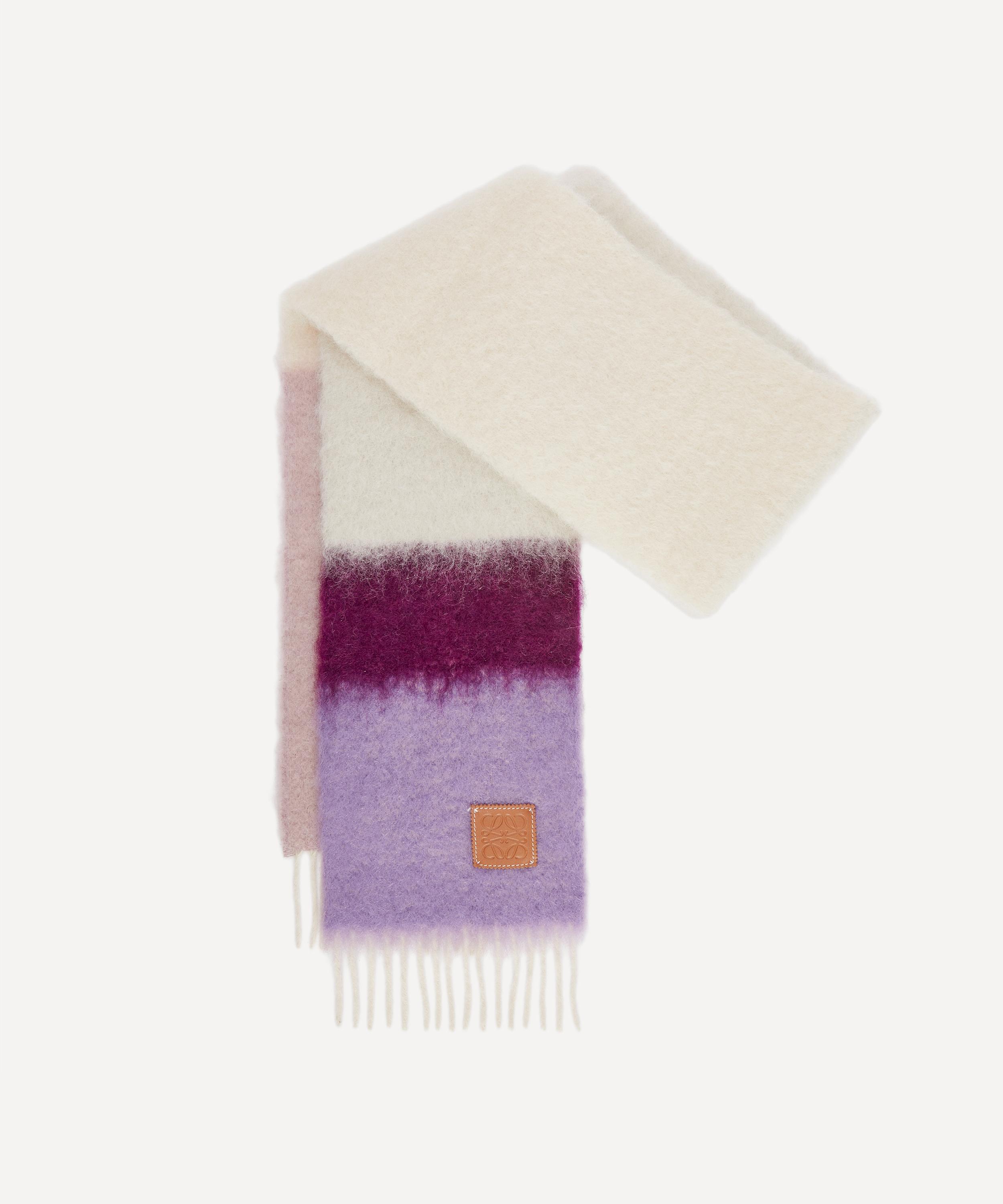 Crafted in Spain from a warming wool and mohair blend, this scarf features a stripe design, fringed ends and an embossed calfskin tab, adorned with the distinctive Anagram motif – try draping it over crisp, contrasting outerwear, or knot it close to the neck to brave even the coldest temperatures in style.