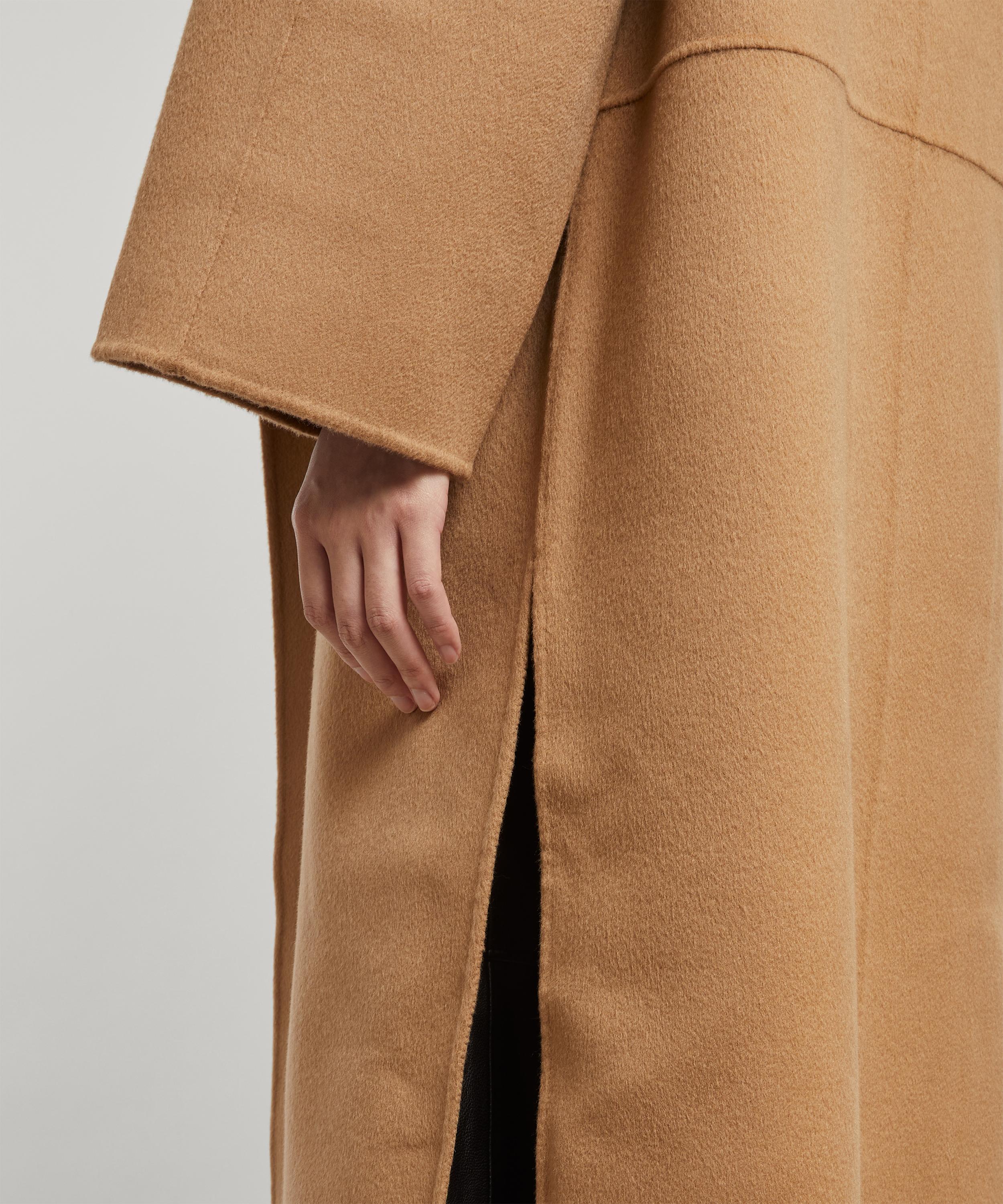 This oversized coat – crafted in double-faced wool-cashmere blend – has been hand-stitched with TOTEME’s impeccable attention-to-detail. The structured silhouette is complemented by dropped shoulders and draped collar details – giving this coat a relaxed yet sophisticated fit. Finished with inseam pockets and side slits, this coat typifies Totême’s signature style.