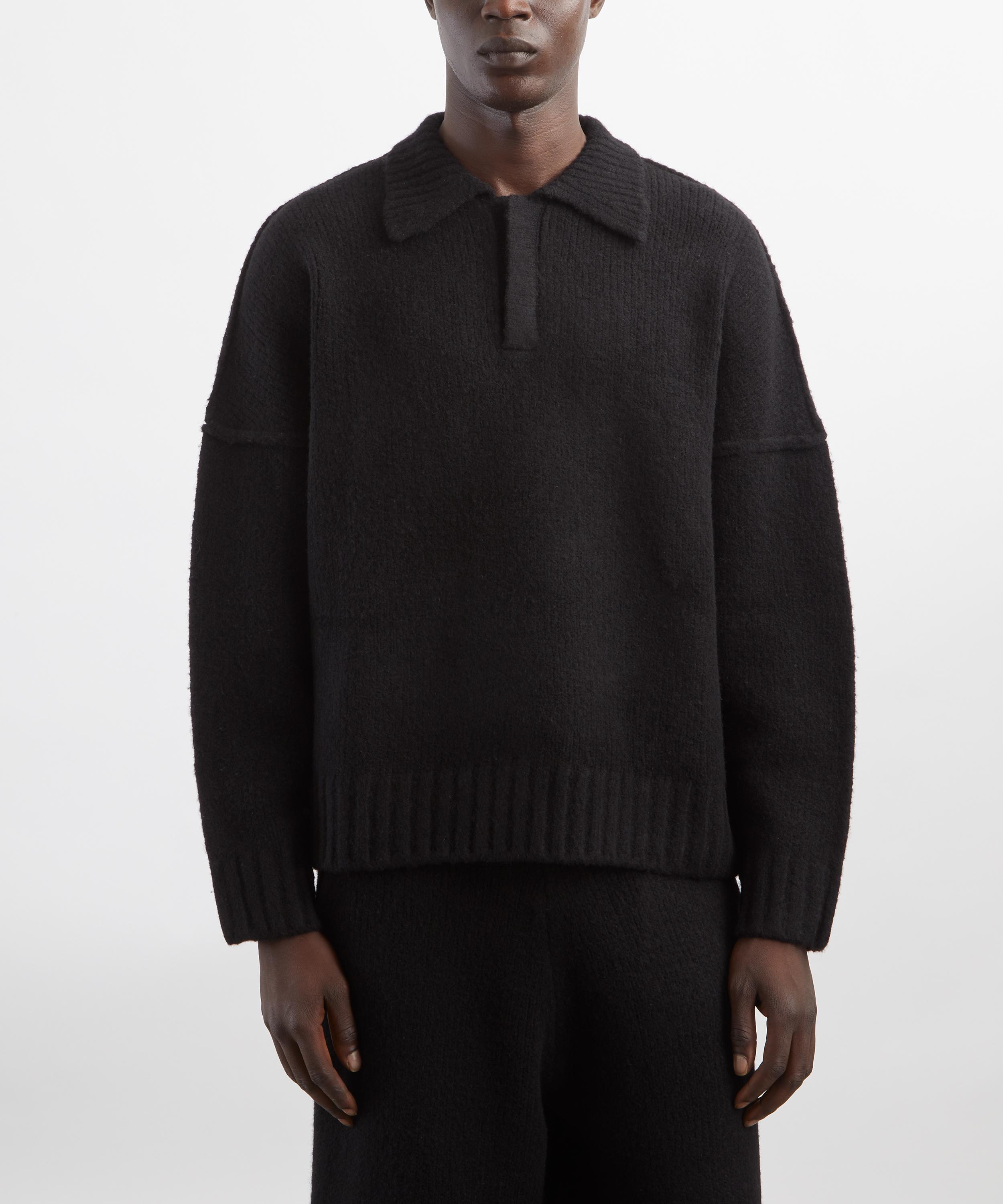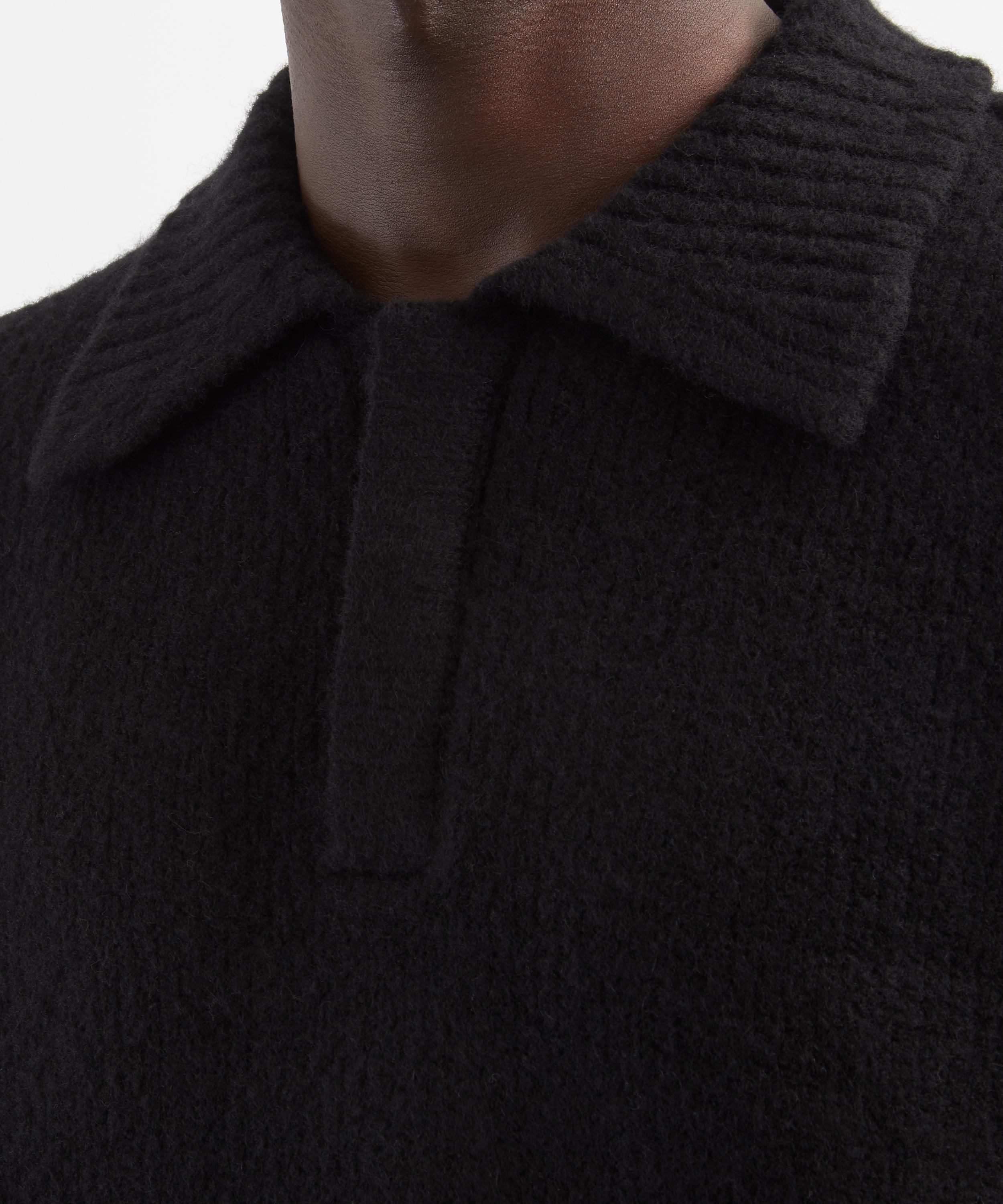 Expertly crafted from heavyweight wool, this oversized polo knit offers unparalleled comfort. Ribbed hems and a spread collar lend tactile sophistication, while the concealed button placket allows for effortless styling, dressed up or down.