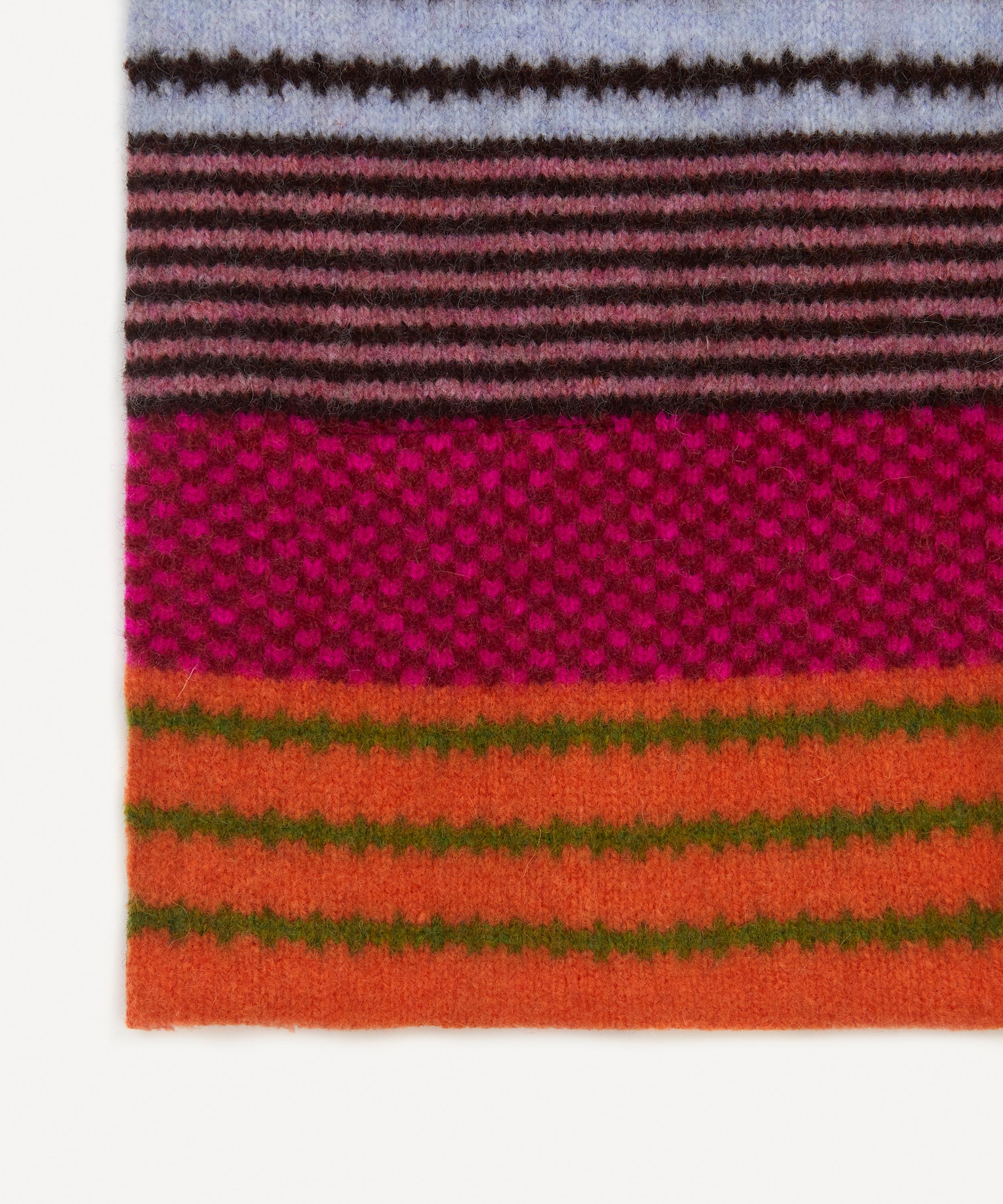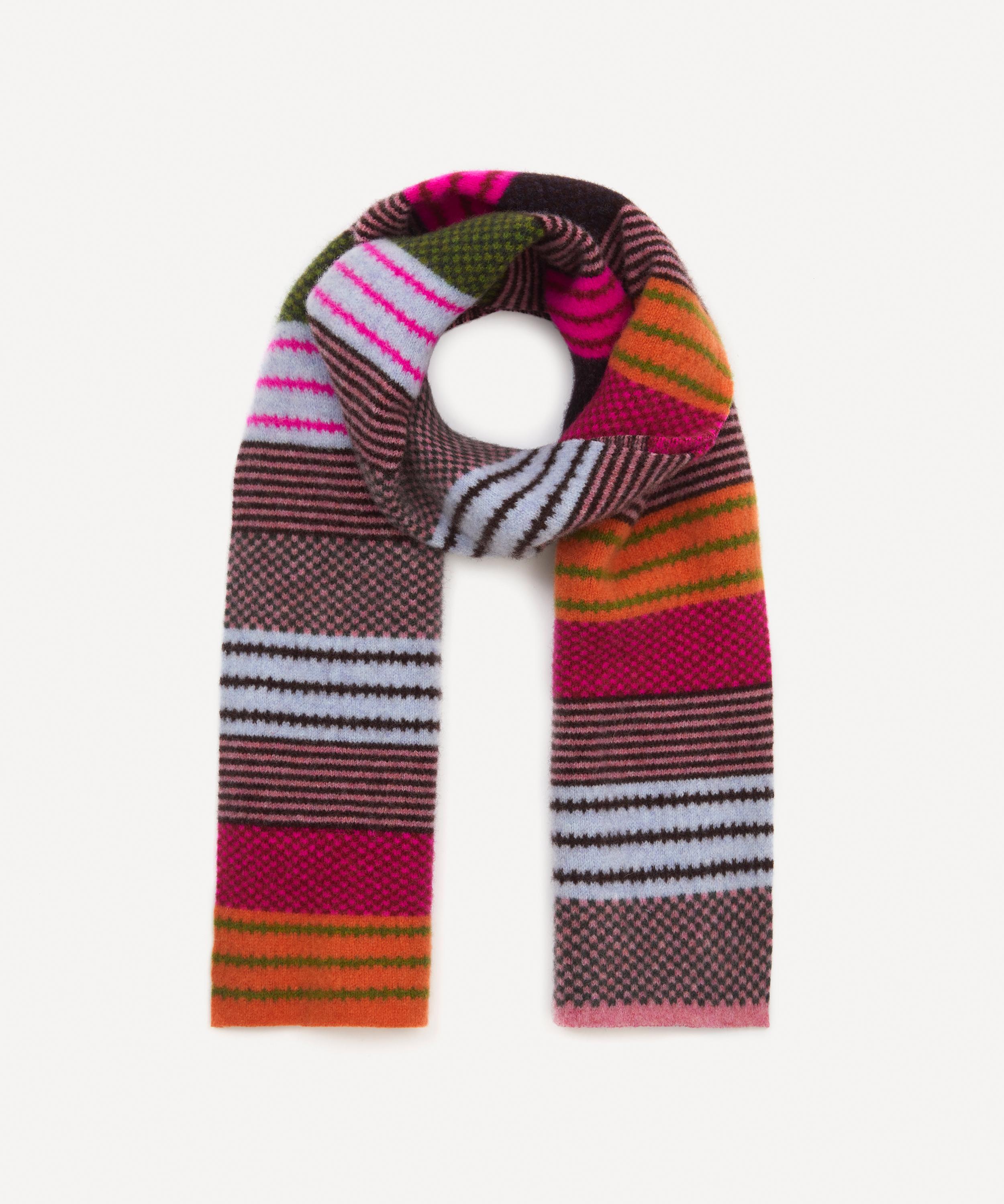 Woven from pure lambswool and lightly felted for extra softness, this small style combines a mix of patterns and colours inspired by the Suffolk coast for a tactile take on classic stripes.