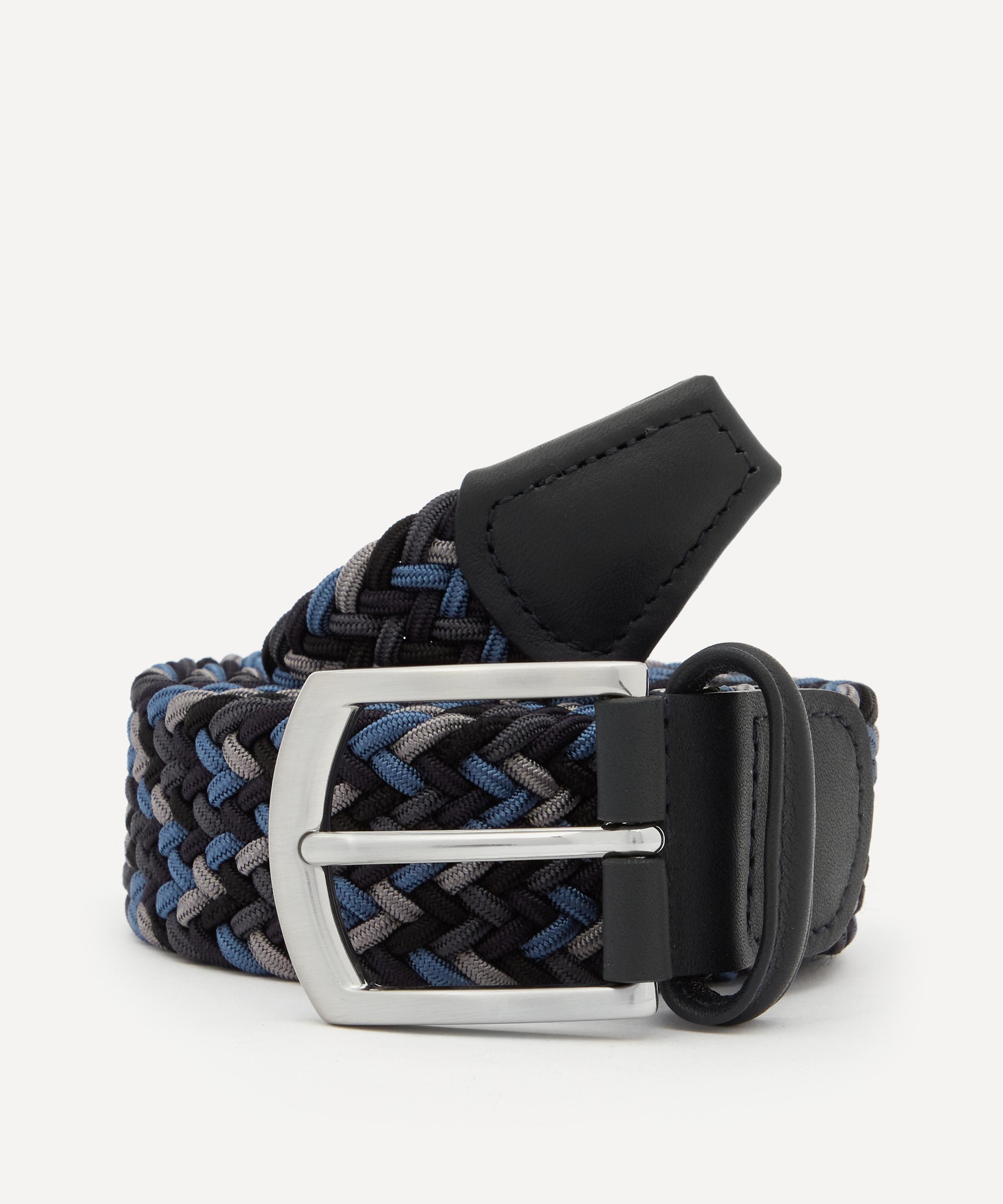 Working with exquisite materials to create its luxurious pieces, Anderson’s presents this elasticated woven belt in a tonal blue and grey colourway.