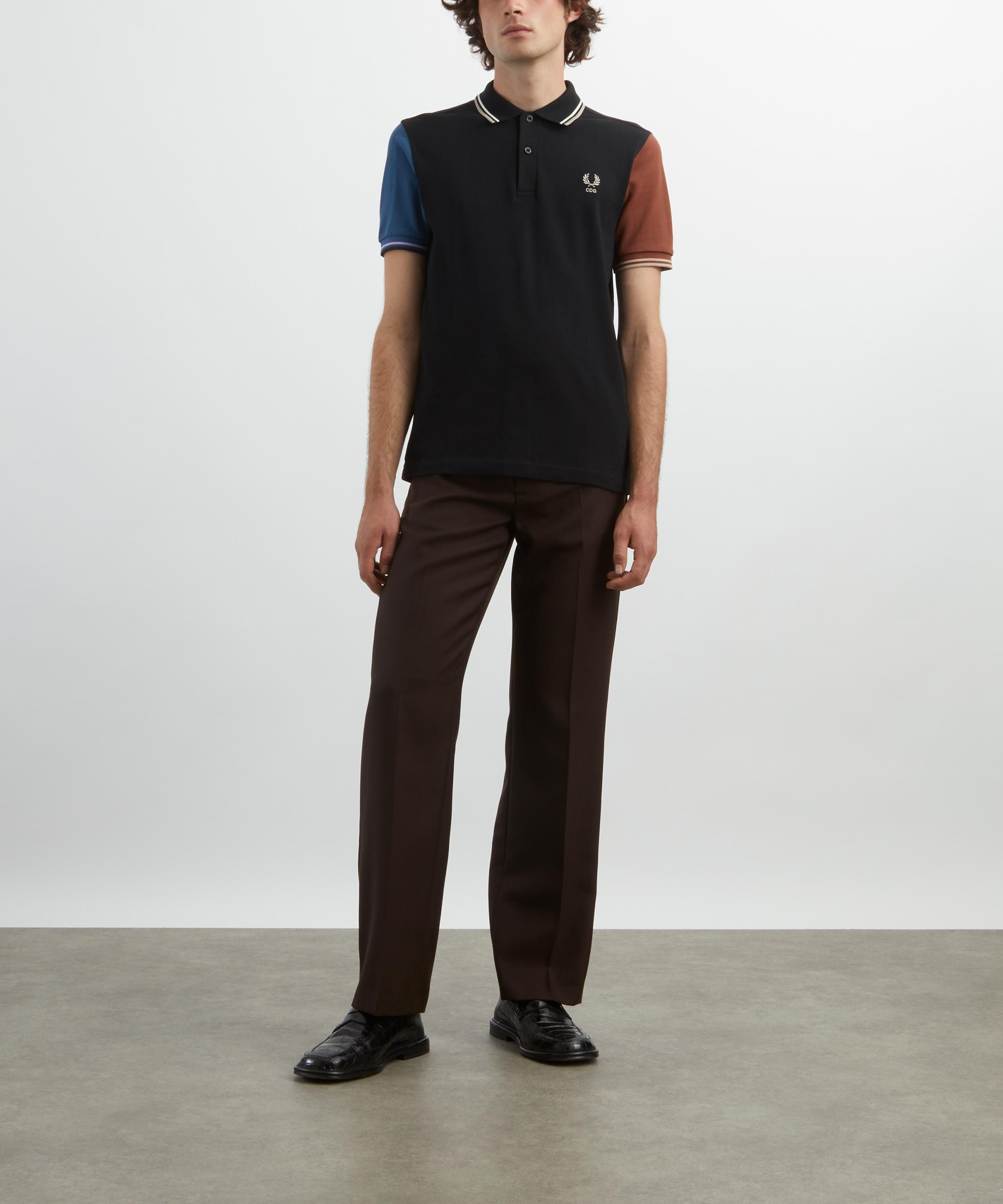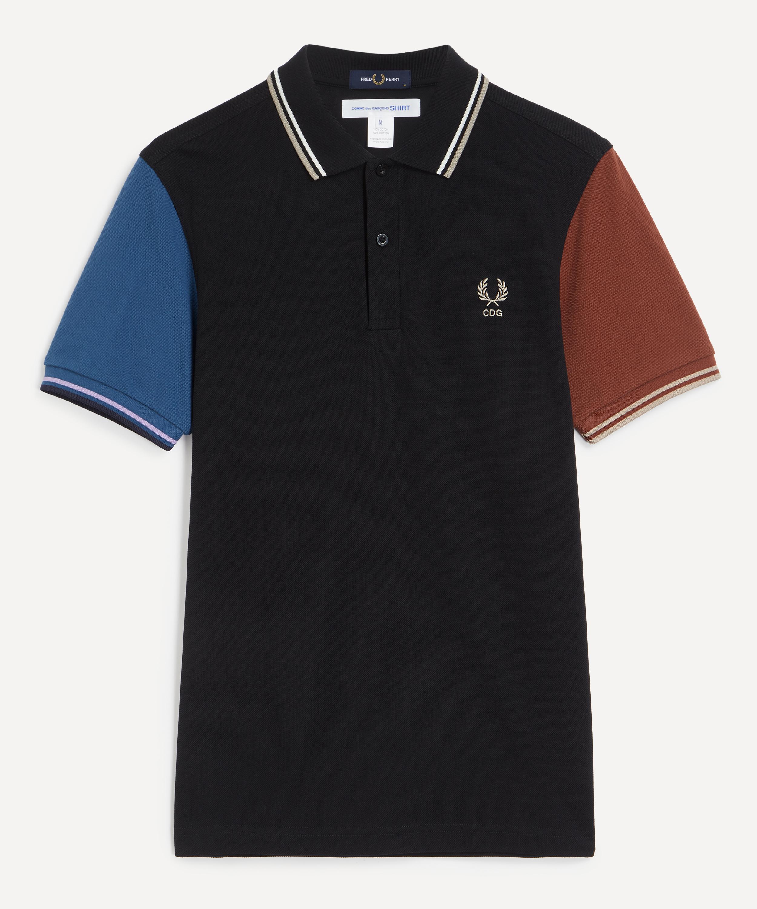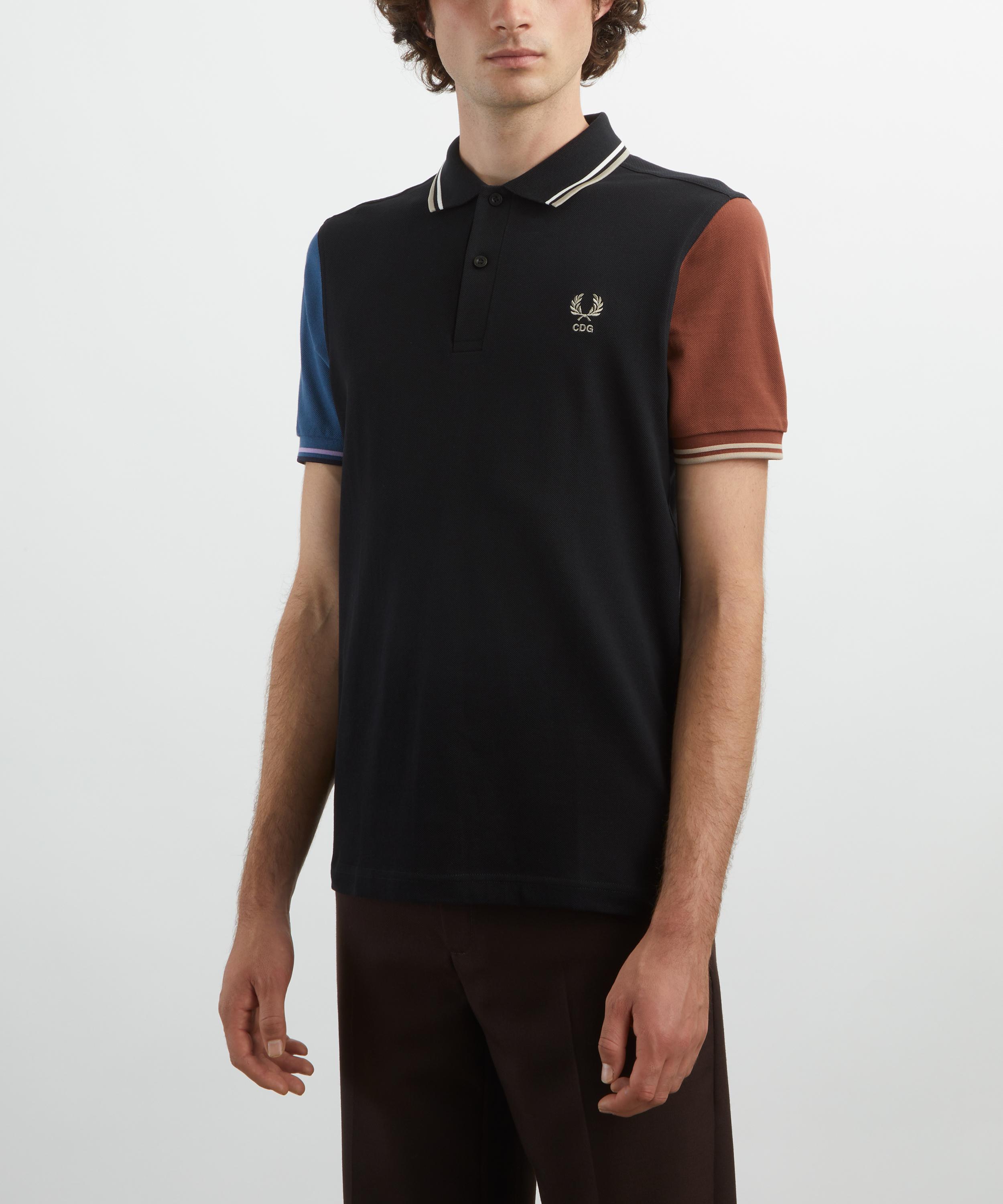 The Fred Perry Shirt, reimagined. Crafted from cotton piqué, this modern update of the classic Regular M3600 shirt features bold colour-blocked sleeves in blue and red. Twin tipping details the collar and cuffs, while Laurel Wreath and CDG embroidery at the chest add a signature touch.