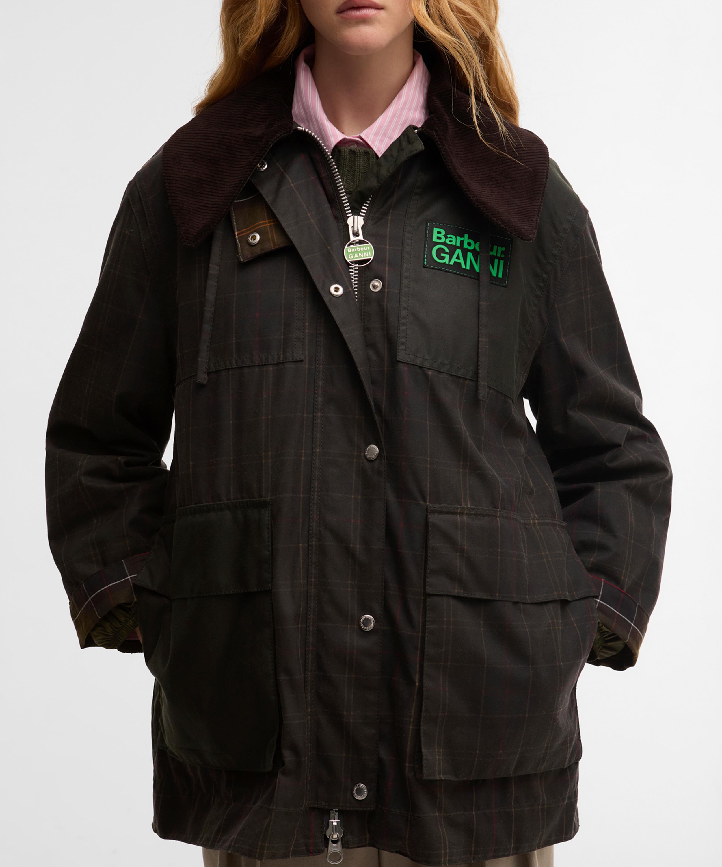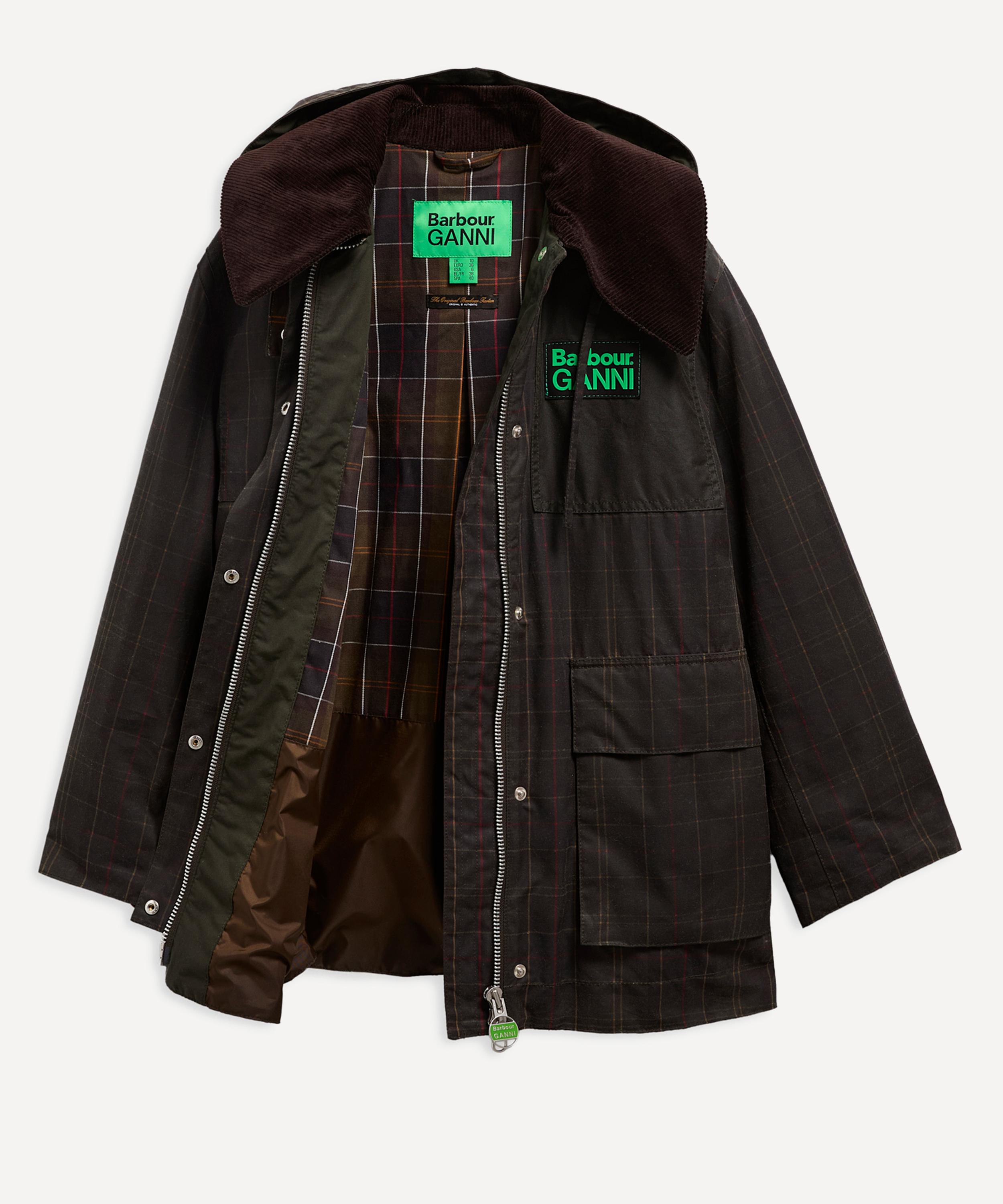 Now in its fourth season, the Barbour x GANNI collaboration is a showcase of both brand's values in style, practicality and durability. This collection captures Barbour's British countryside heritage with waxed fabrics and tartan trims and the essence of GANNI's home of Copenhagen with playful Scandi touches. Putting GANNI's exaggerated twists on Barbour's waxed jackets, trench coats, scarves, tote bags and more, this collection is a timeless celebration of craftsmanship and tradition.