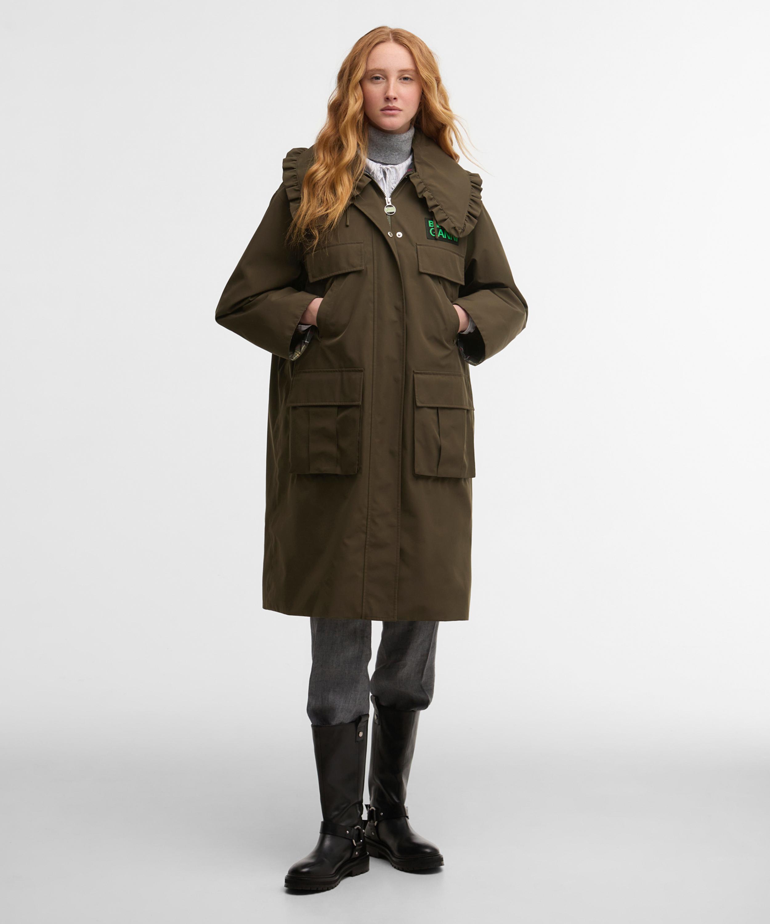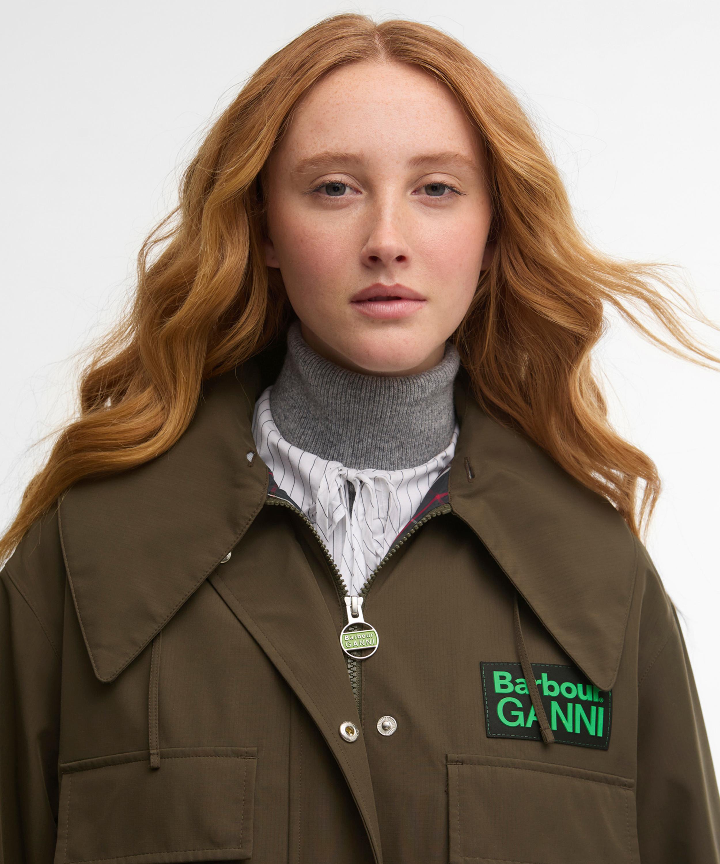 Seamlessly blending style and practicality, the Barbour x GANNI Waterproof Parka Jacket is perfect for the changing seasons.