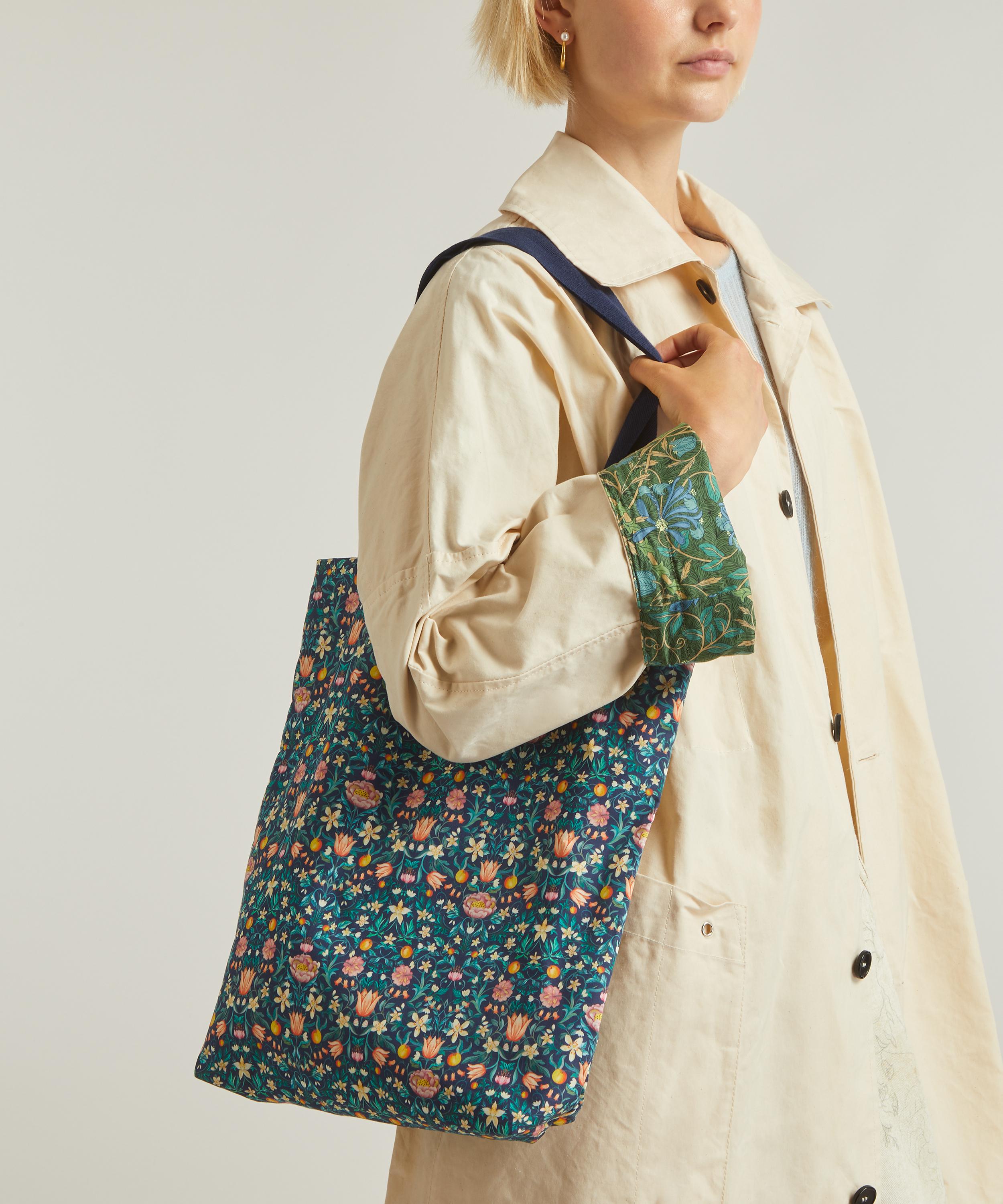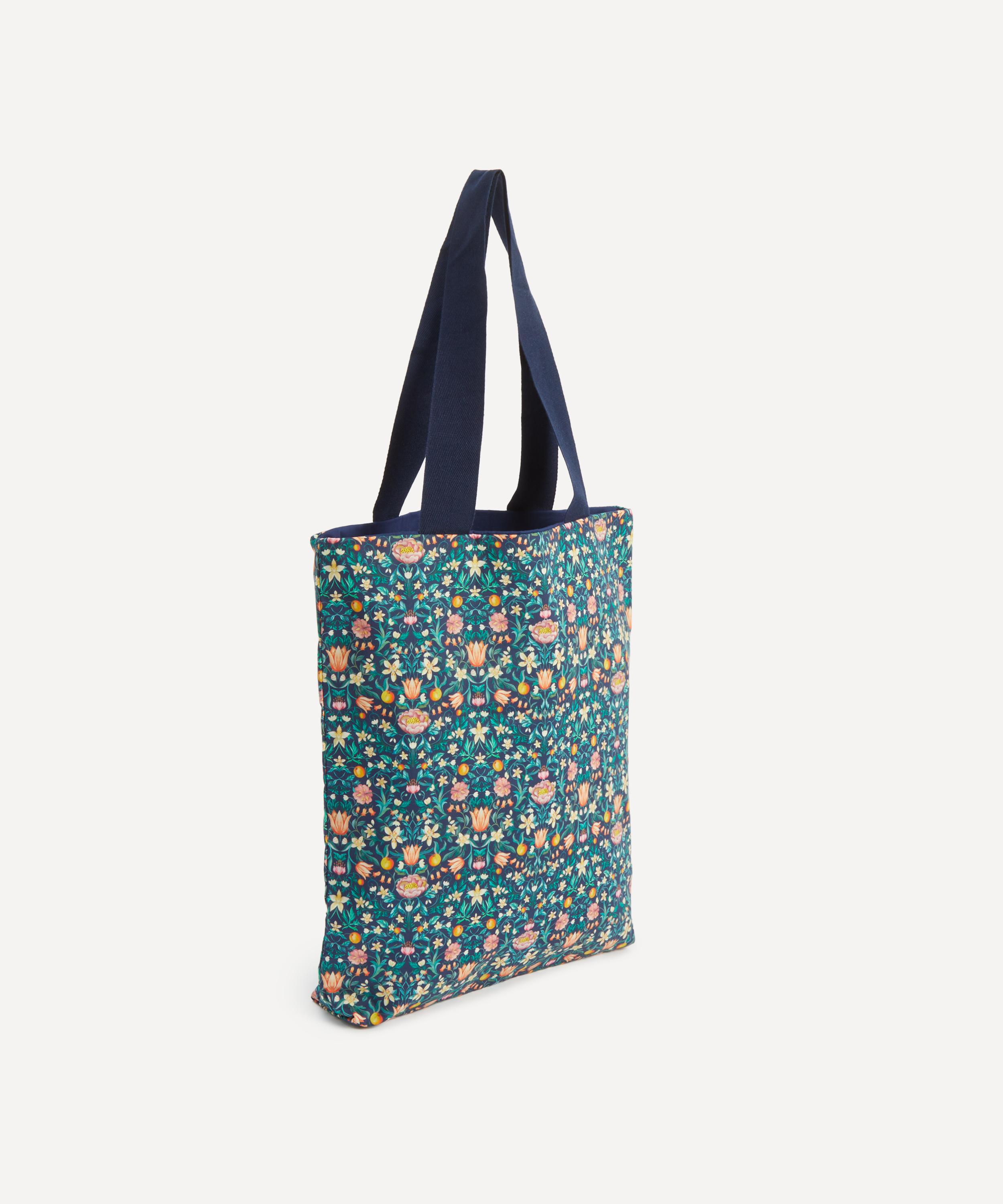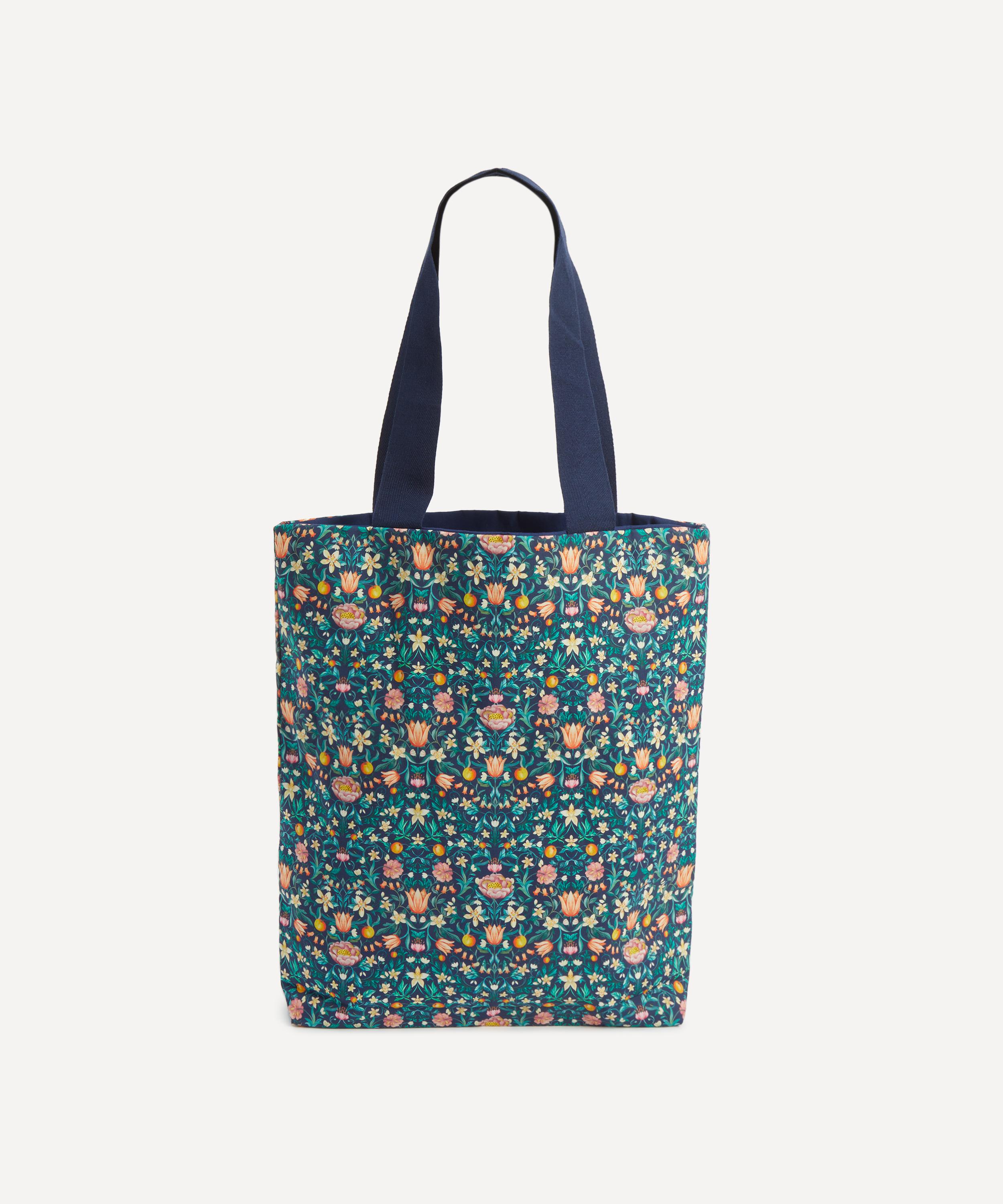 Handmade by Gemima London, this everyday bag is just the thing for toting books, food market shopping and on-the-go finds. The print echoes the exquisite embroideries of May Morris - a contemporary interpretation of a traditional Arts & Crafts style design, it was meticulously hand-painted in our Liberty London studio. Adorned with intricate botanical details, May’s Orchard features an array of blooming flowers and spring blossom, intertwined with trailing foliage and a variety of delectable orchard fruits. Drenched in richly saturated colour and soft watercolour washes, this sophisticated structured repeat is a celebration of spring, captured through a quintessential Liberty lens. An alternative to disposable plastic bags, this tote offers practicality and function with a pretty Liberty print twist.