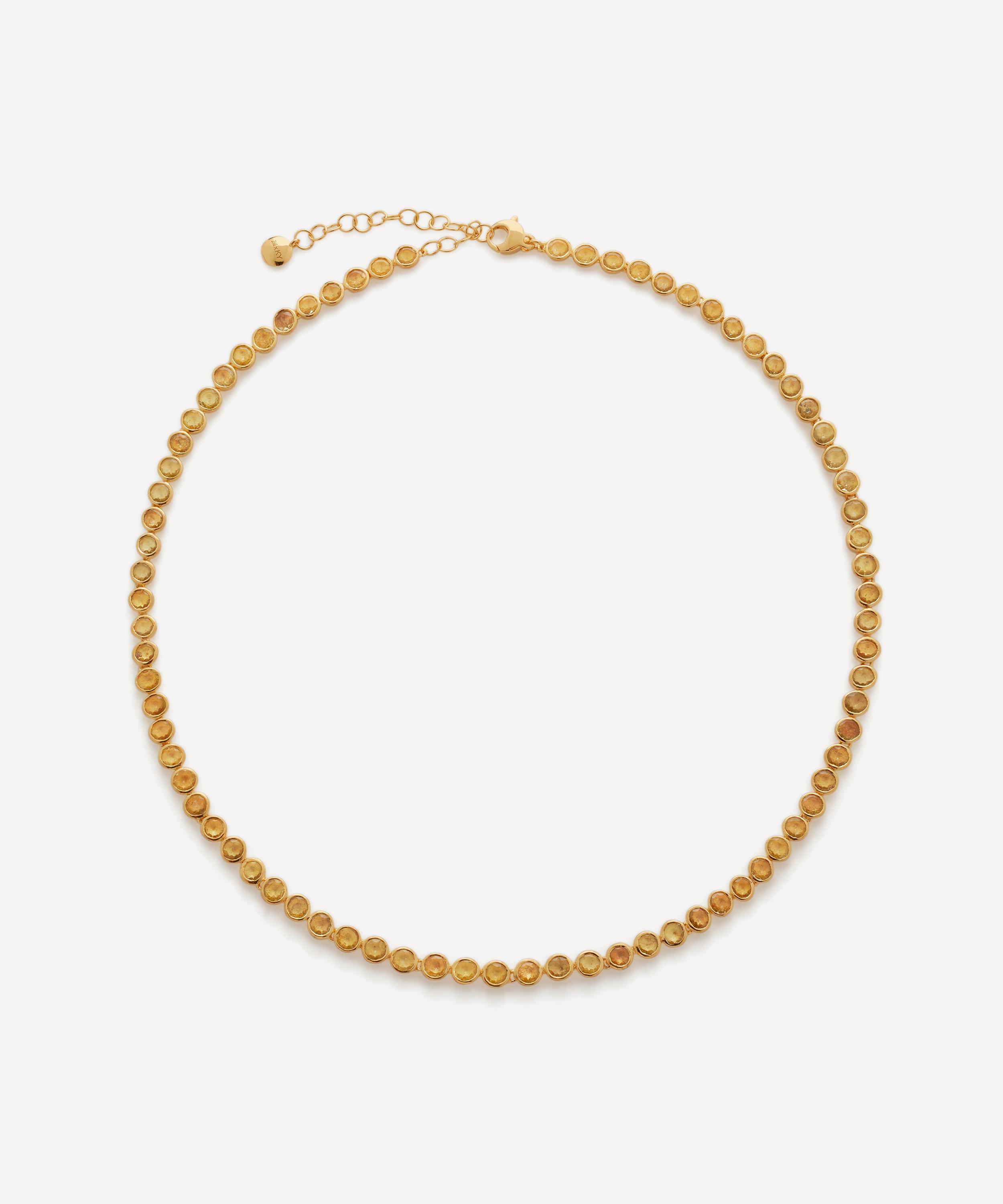 The perfect addition to your layered necklace curation, Monica Vinader’s collaboration collection with Kate Young presents a timeless classic with the gemstone tennis necklace. Featuring a string of highly-faceted lemon quartz gemstones it will instantly add a powerful contrast to gold or silver chains.