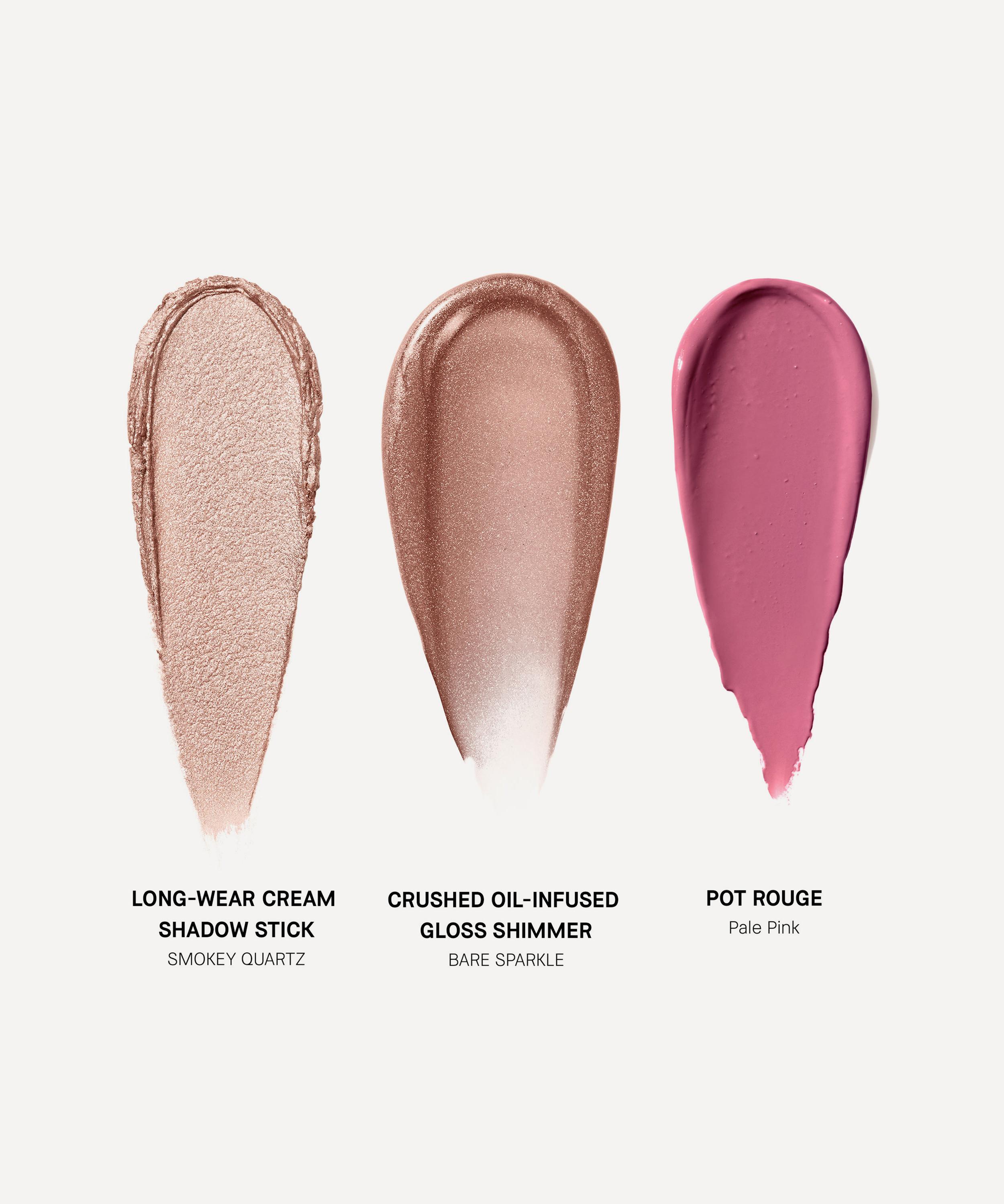 - Pretty Powerful Collection includes: Limited Edition Pretty Powerful Pot Rouge in Pale Pink 3.7g, Long-Wear Cream Shadow Stick in Smokey Quartz 1.6g, Crushed Oil-Infused Gloss in Bare Sparkle 6ml, Vitamin Enriched Face Base Travel 15ml and a Limited Edition KITRI Makeup Bag