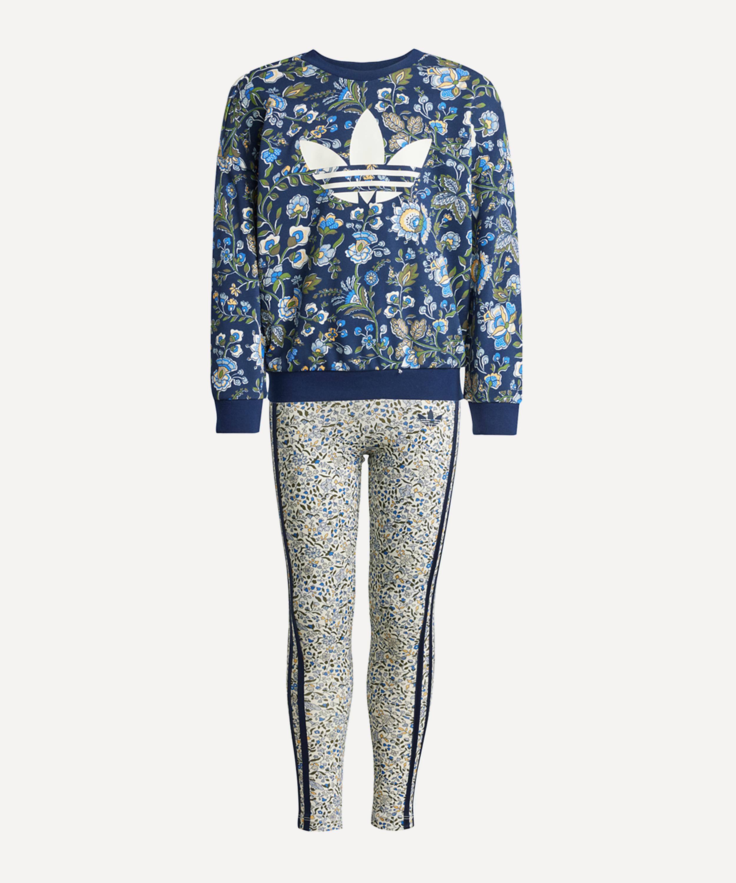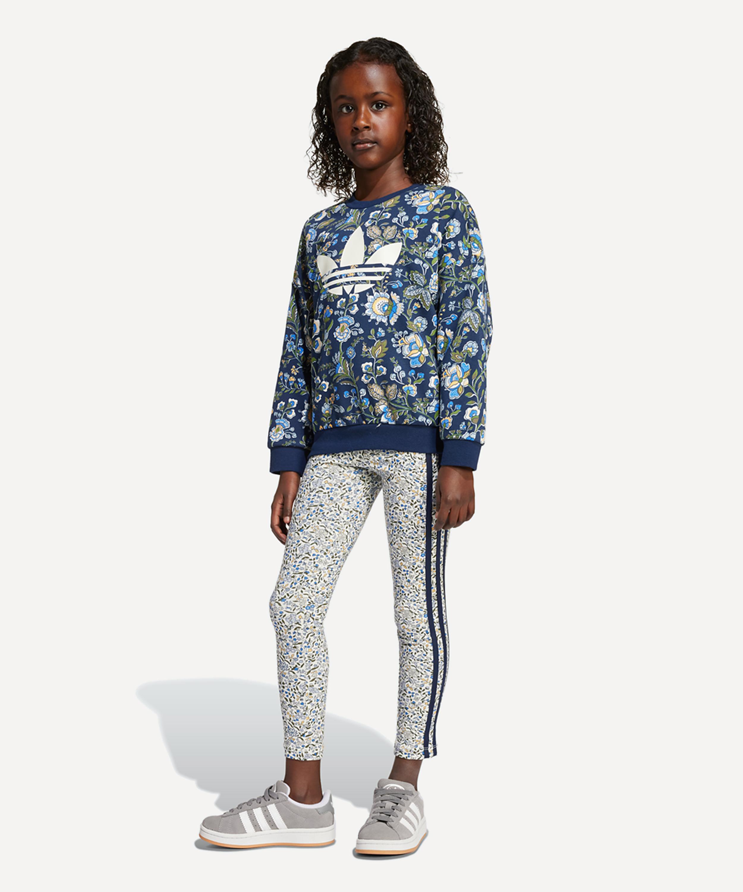 Whether they're playing in the park or relaxing at home, this kids' adidas crew and leggings set keeps them comfy all day long. The set includes a loose-fitting top and mid-rise leggings, offering a casual fit that lets them move freely. Designed in collaboration with fashion house Liberty London, it features a sporty spin on their iconic floral print.