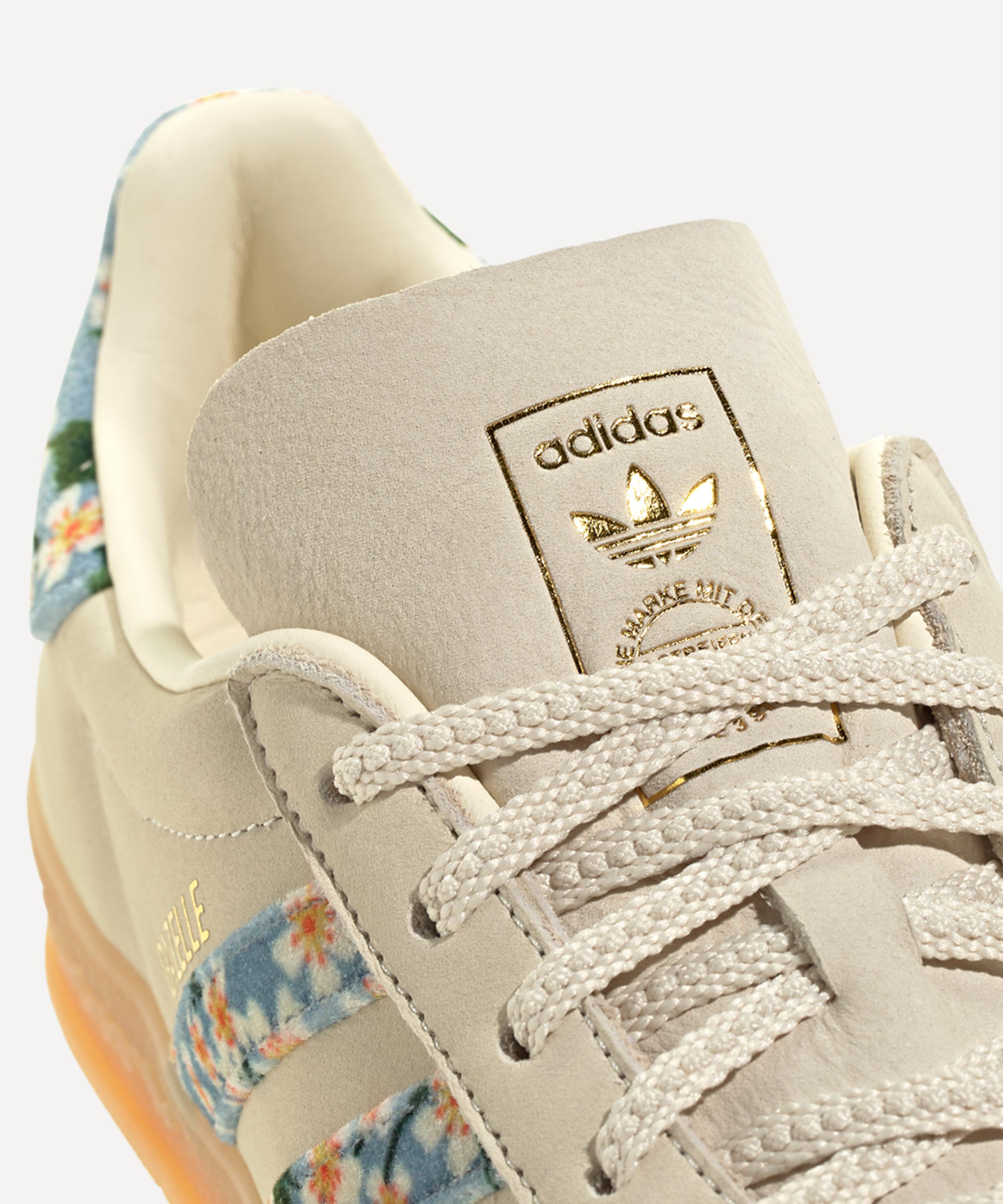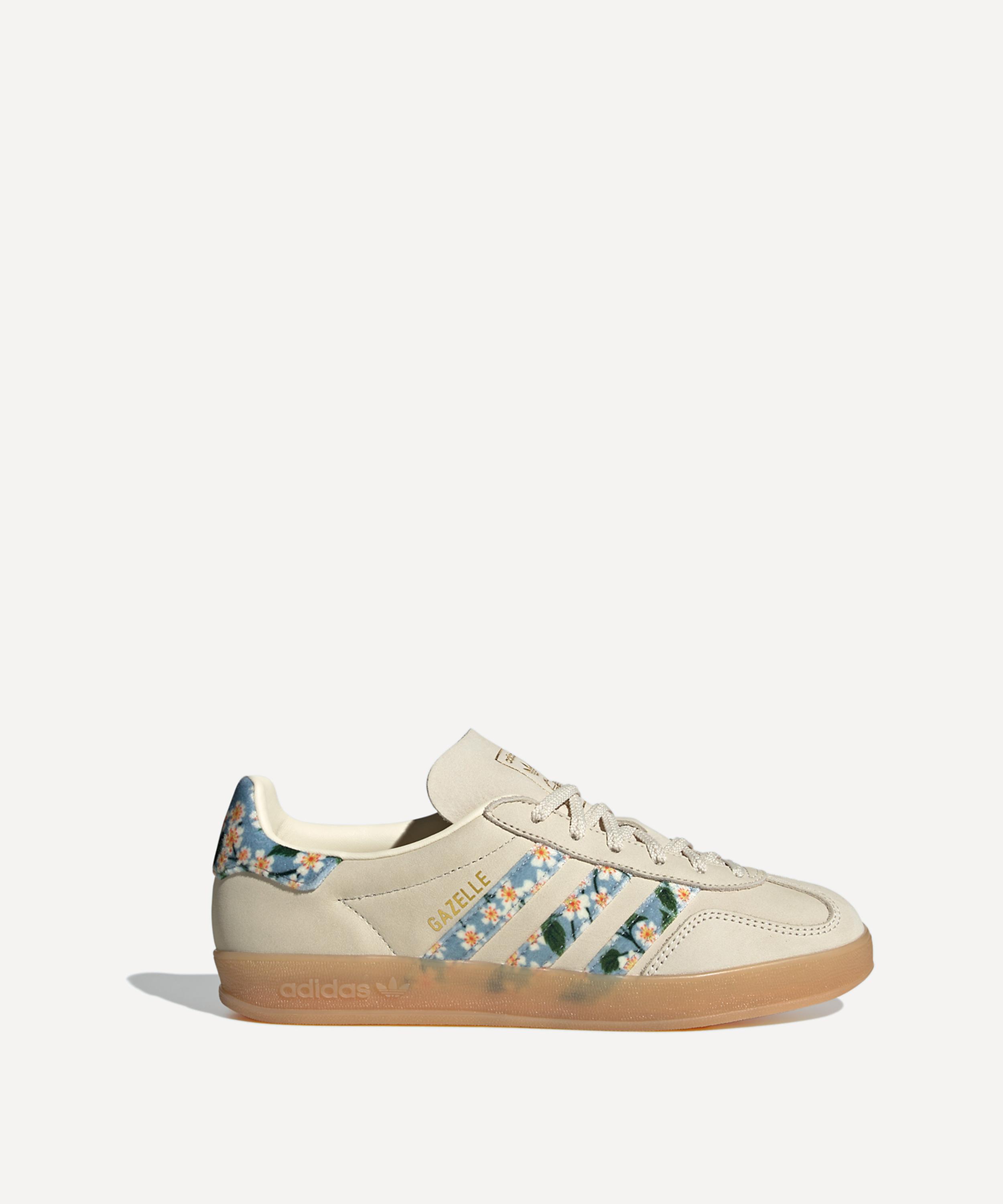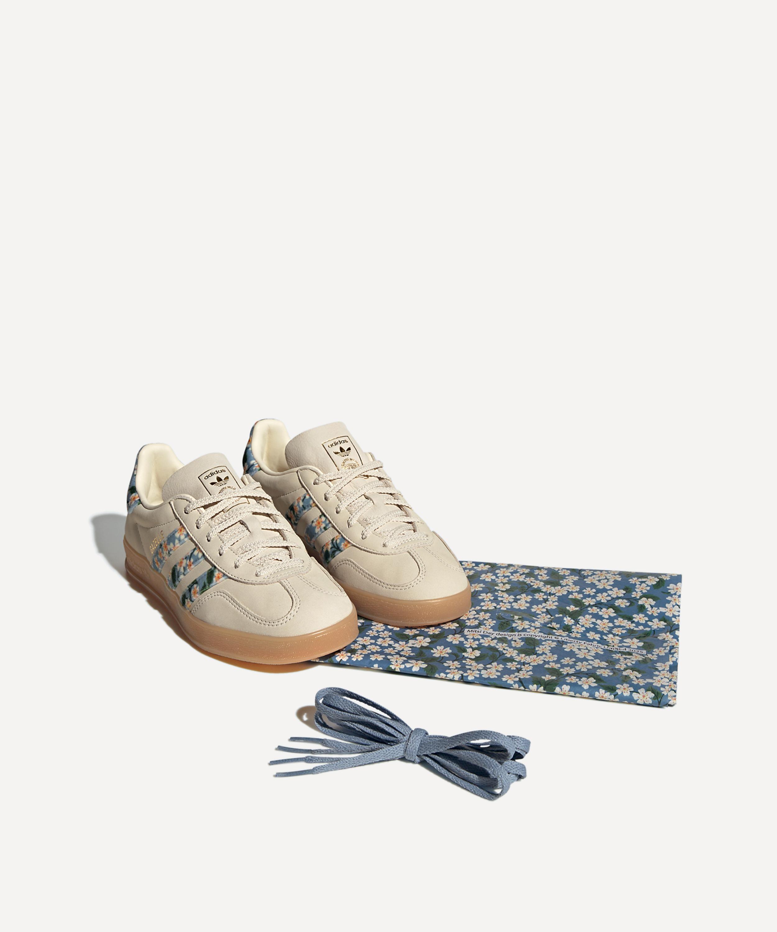 The adidas Gazelle Indoor shoes showcase the merging of the two brands, bringing together one of London's famous prints on one of adidas Originals' iconic silhouettes.