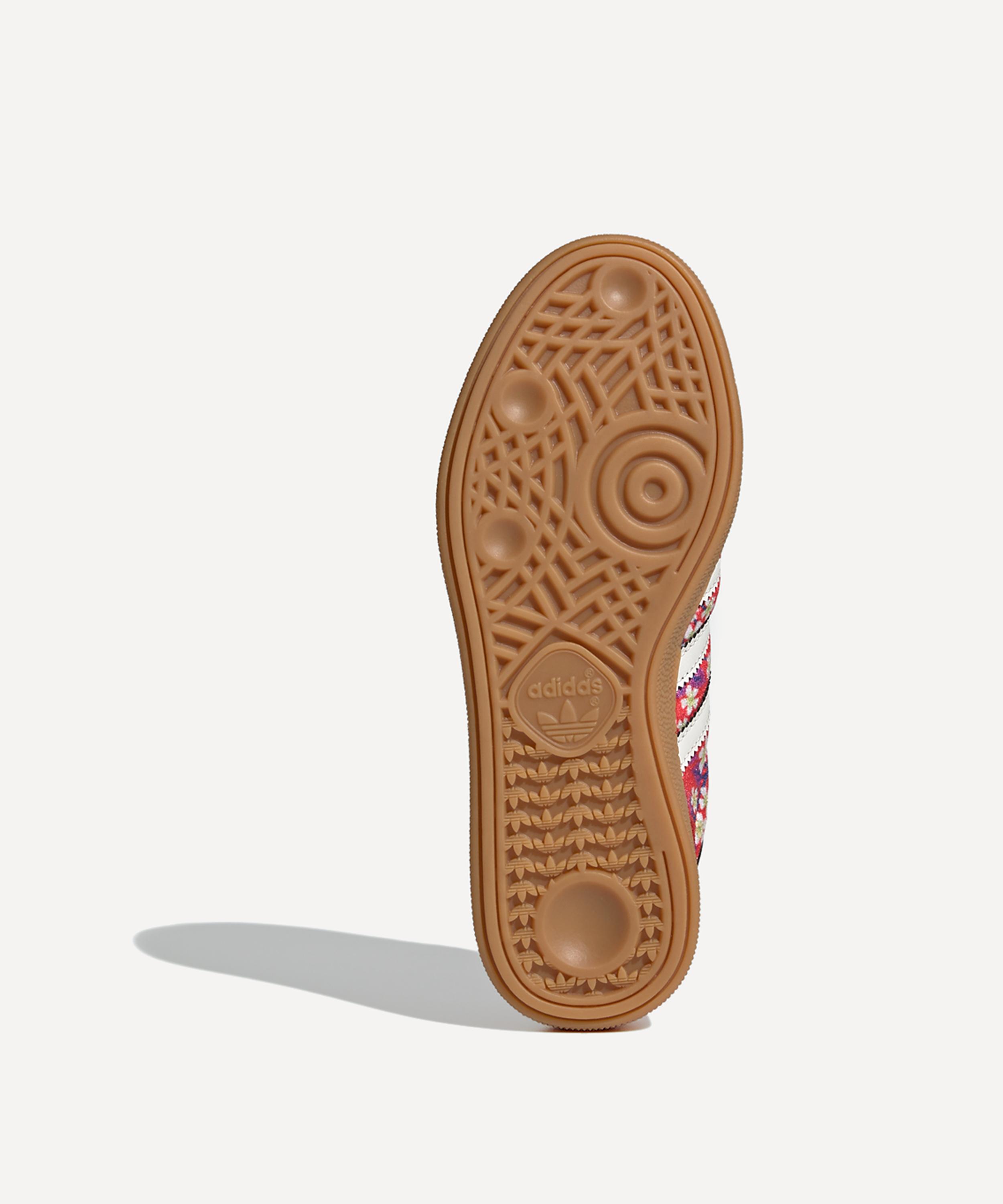 This pair of adidas Handball Spezial shoes for juniors was created in collaboration with luxury department store Liberty London. Complete with a woven tongue label and leather 3-Stripes, it features floral print pops on the iconic low-profile silhouette, while the signature gum rubber outsole provides a retro sporty finish.
