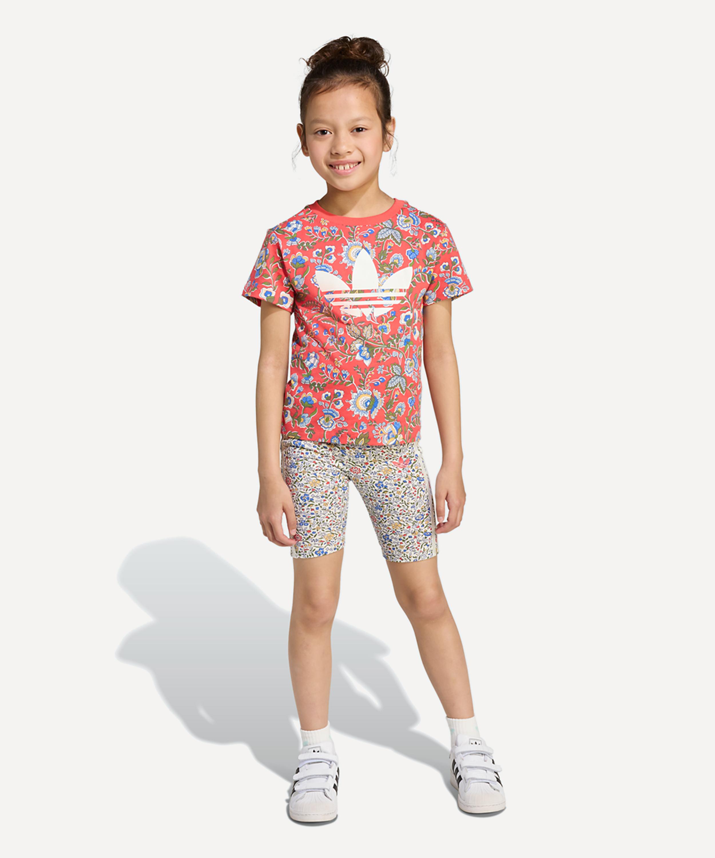 Bringing together two brands with over a century each of pioneering design, this kids' adidas Originals tee and shorts set is a collaboration with Liberty London. The top features a floral pattern inspired by a 1930s archive print, reinvented for today.