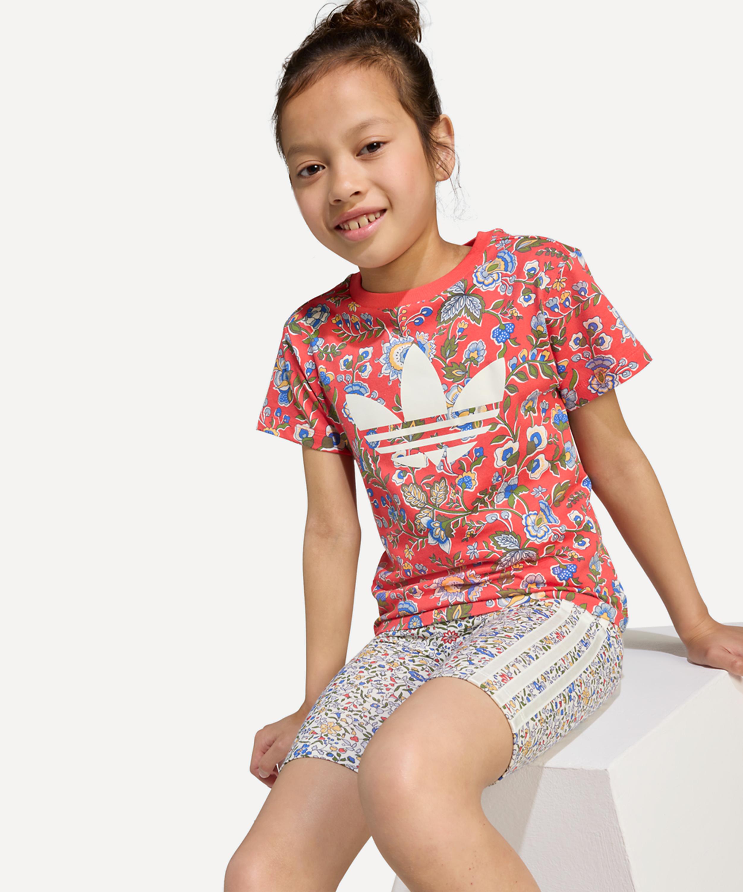 The Kids Short Tee Set from adidas' latest collaboration with Liberty infuses bold, vibrant blooms to effortlessly elevate your little one’s sporty wardrobe.