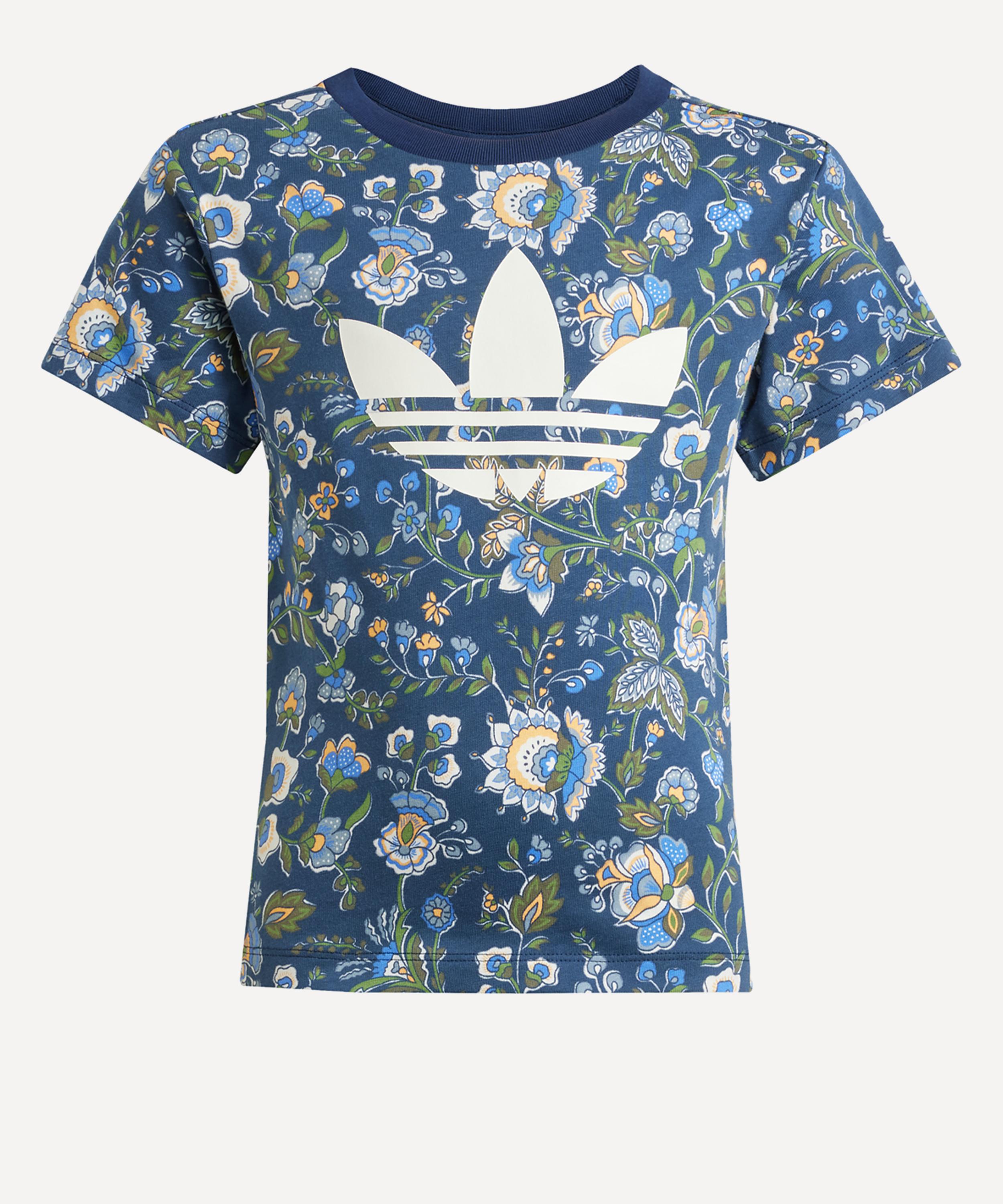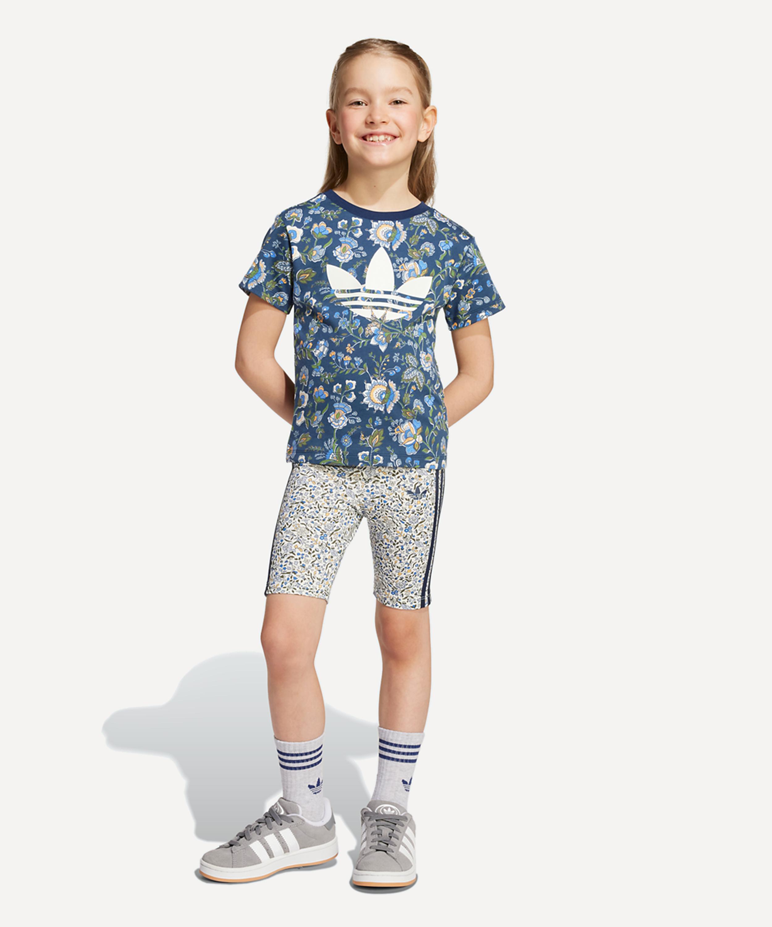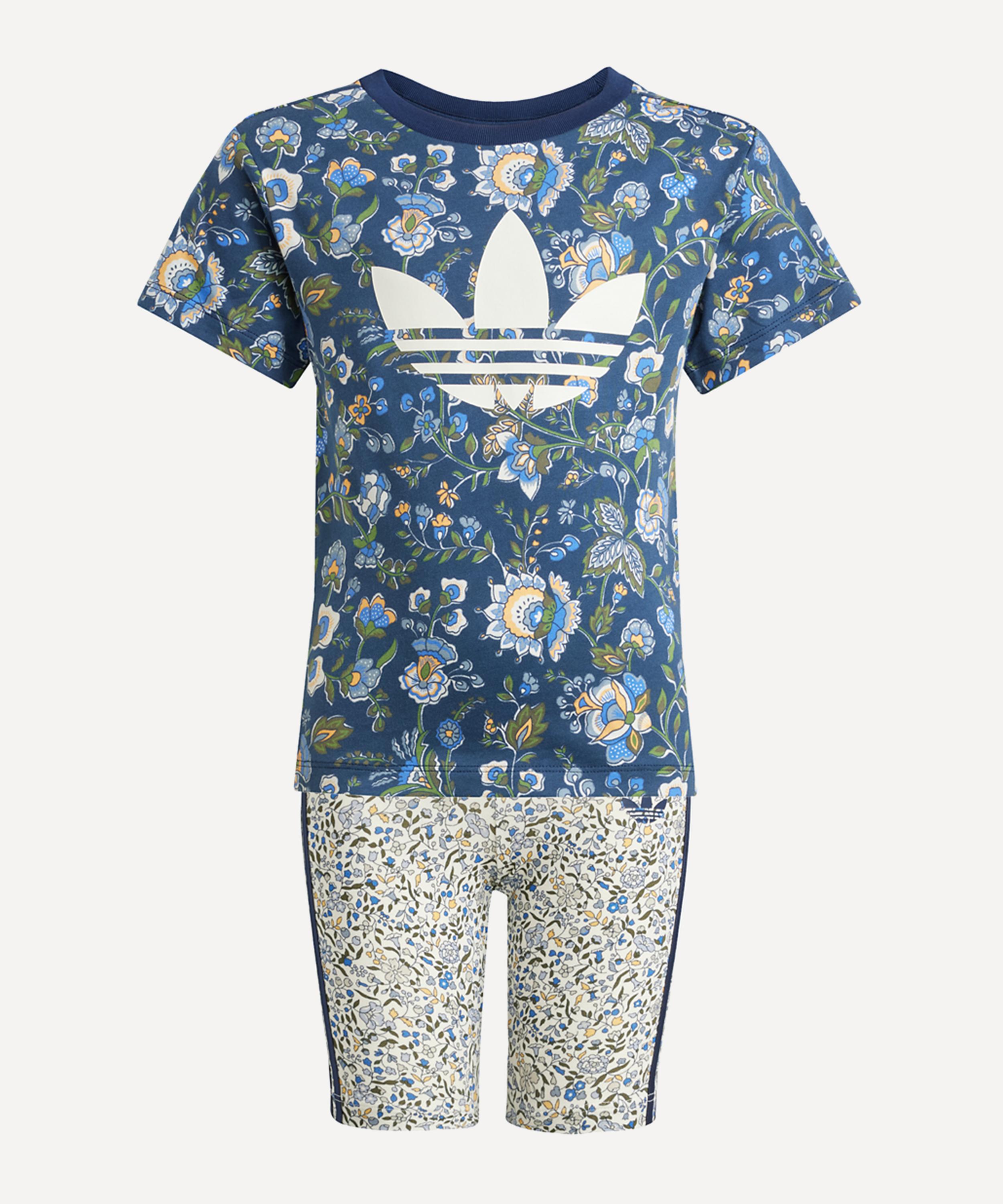 Bringing together two brands with over a century each of pioneering design, this kids' adidas Originals tee and shorts set is a collaboration with Liberty London. The top features a floral pattern inspired by a 1930s archive print, reinvented for today.
