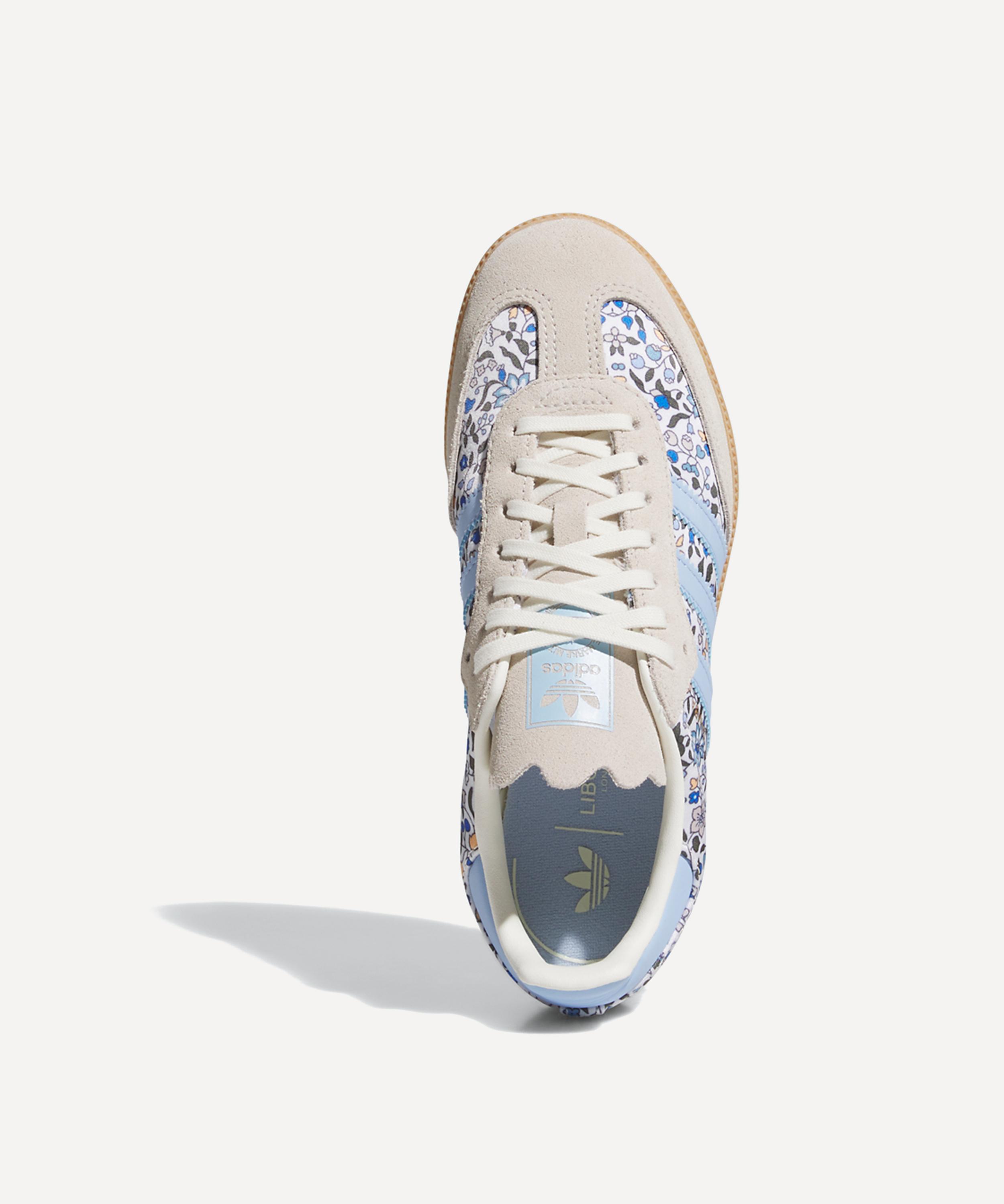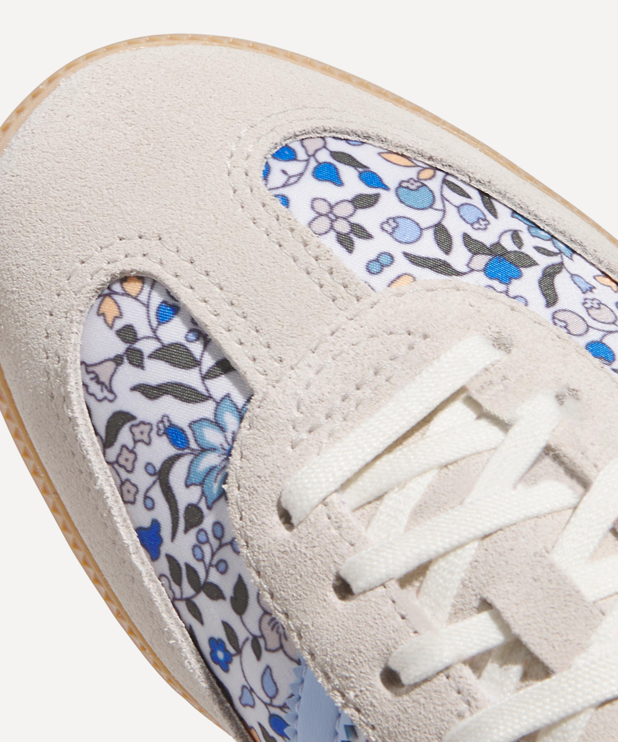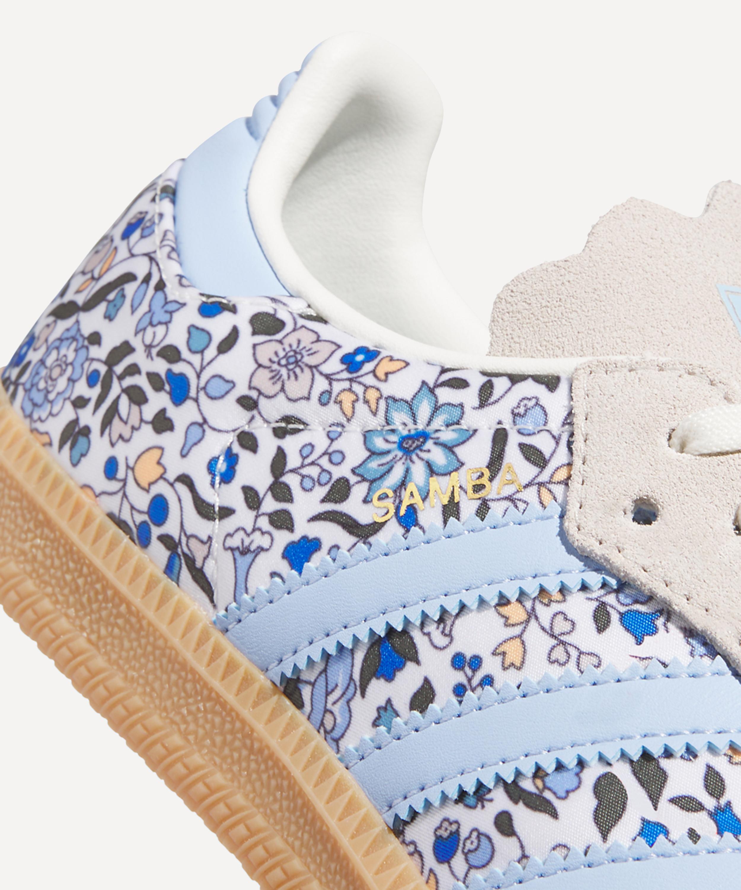 The adidas Samba Kids shoes showcase the merging of the two brands, bringing together one of Liberty's famous prints on one of adidas Originals' iconic silhouettes.