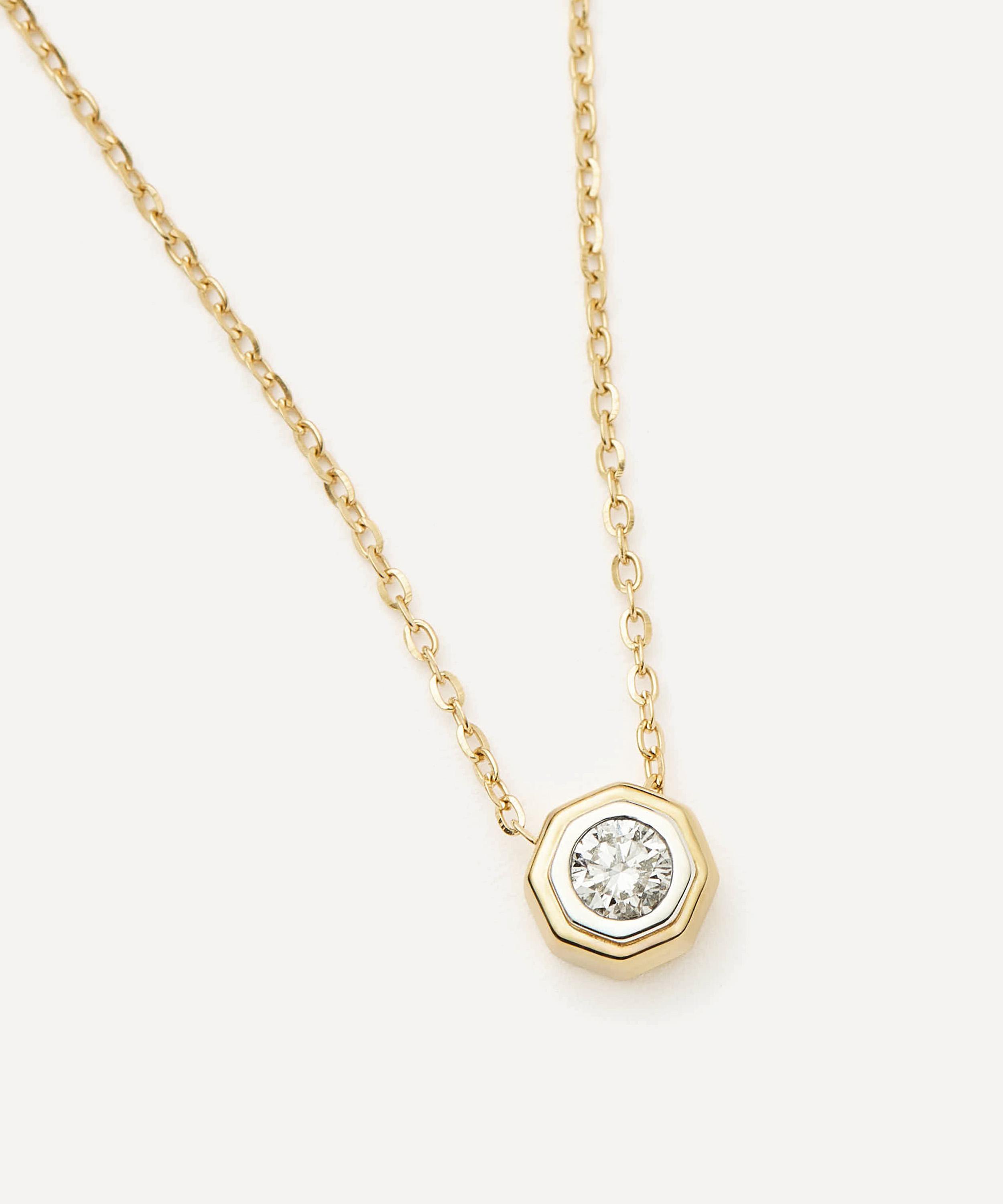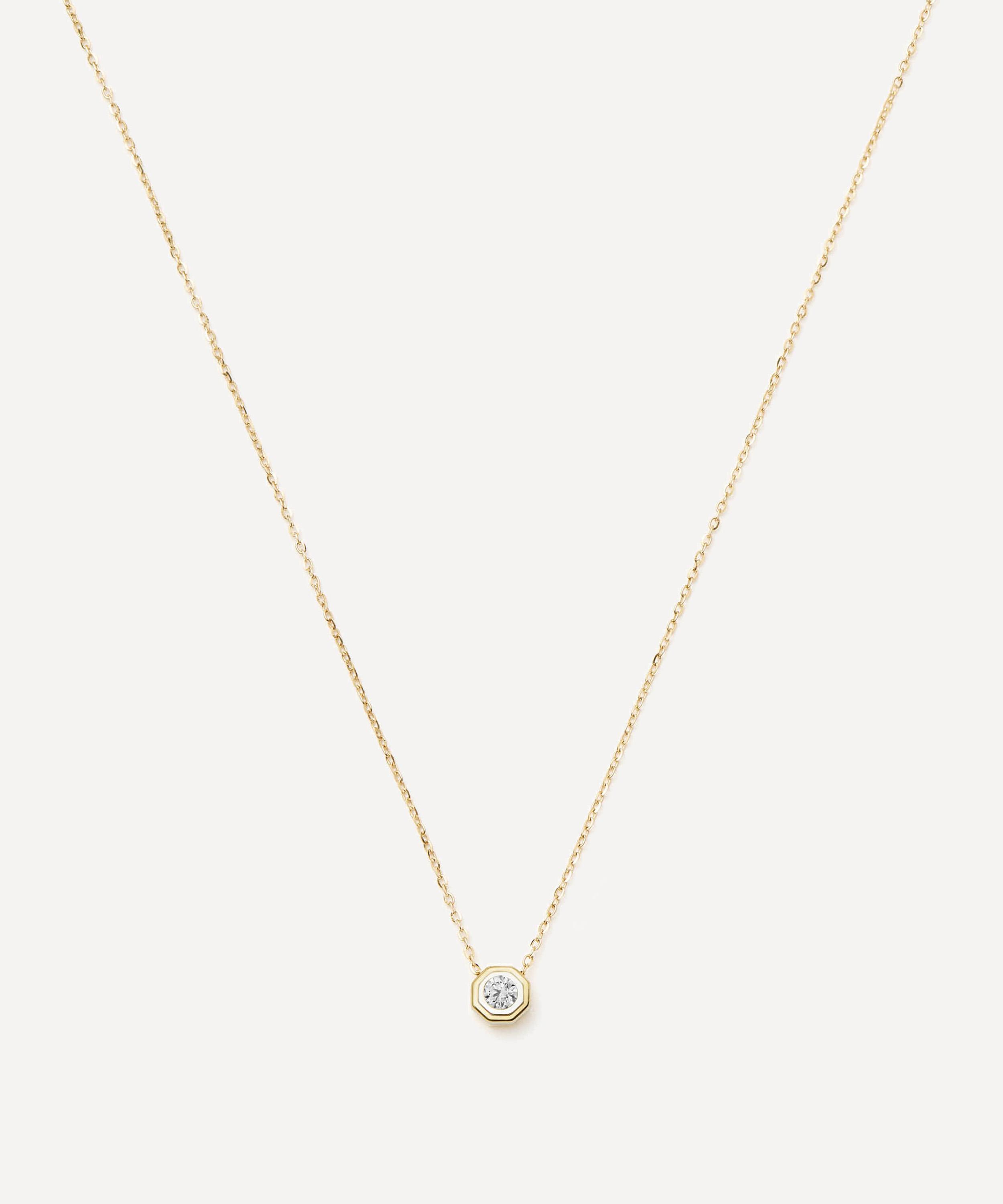Make a statement and elevate your outfit with the timeless Fine Diamond Pendant Necklace from Missoma, in collaboration with Lucy Williams. Rendered in solid 14ct gold, it features a fine cable chain and an octagon-shaped pendant, embellished with a solitaire lab-grown diamond. Perfect for every day and special occasions, style yours solo or stacked, and try pairing it with other iconic Lucy Williams styles.