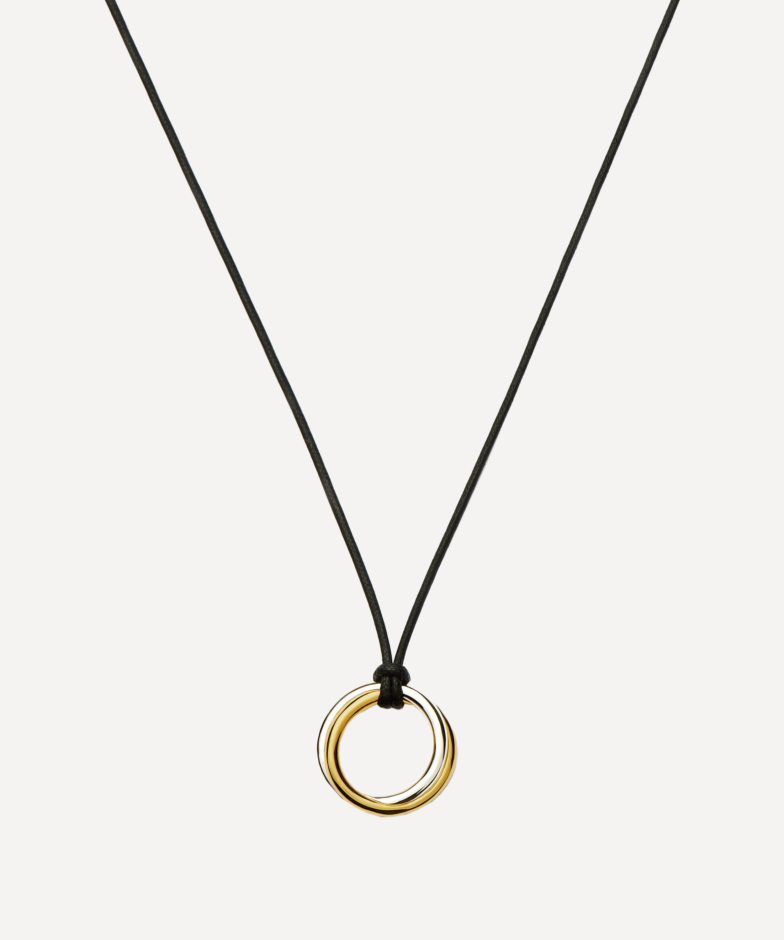 Make a style statement and elevate your outfit with the standout Entwine pendant necklace from the Lucy Williams x Missoma collection. Crafted in a mixed metal design, it features an intertwined pendant in rhodium-plated silver and sterling silver plated in 18ct gold vermeil. Suspended from a contrasting long black cord, it can be tied at various lengths – try styling it doubled up as a choker, layer it long with shorter necklaces, or wear it on its own.