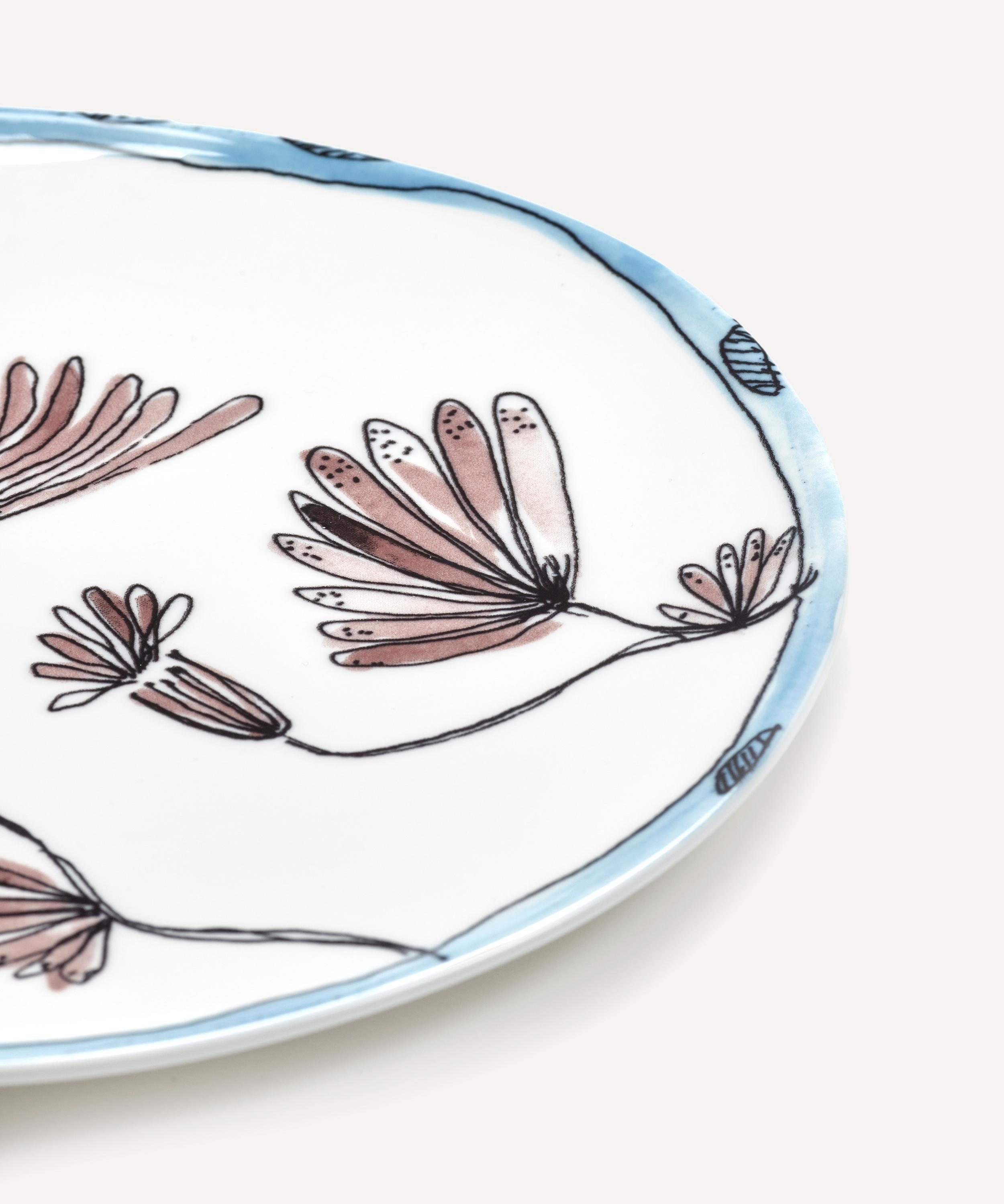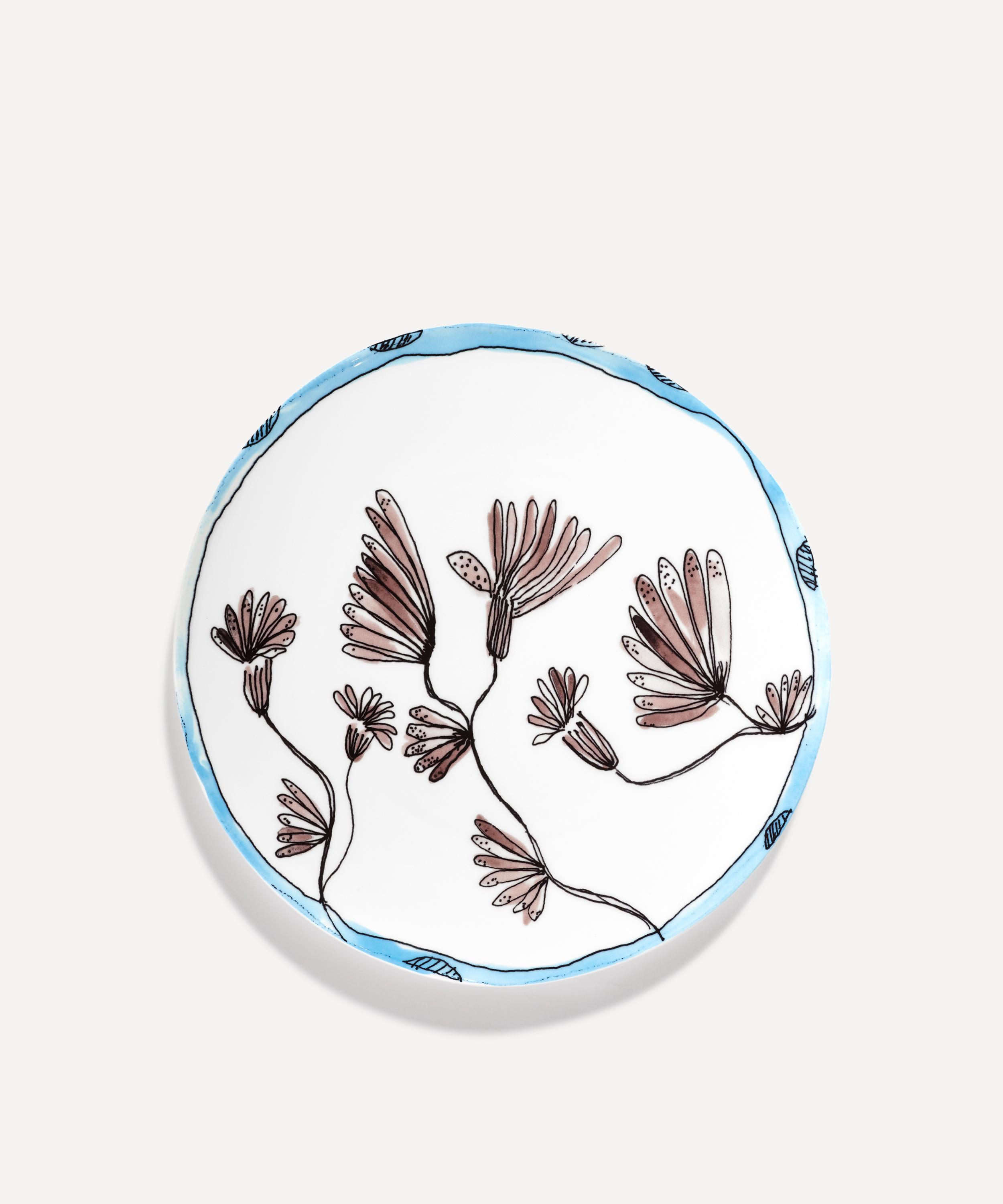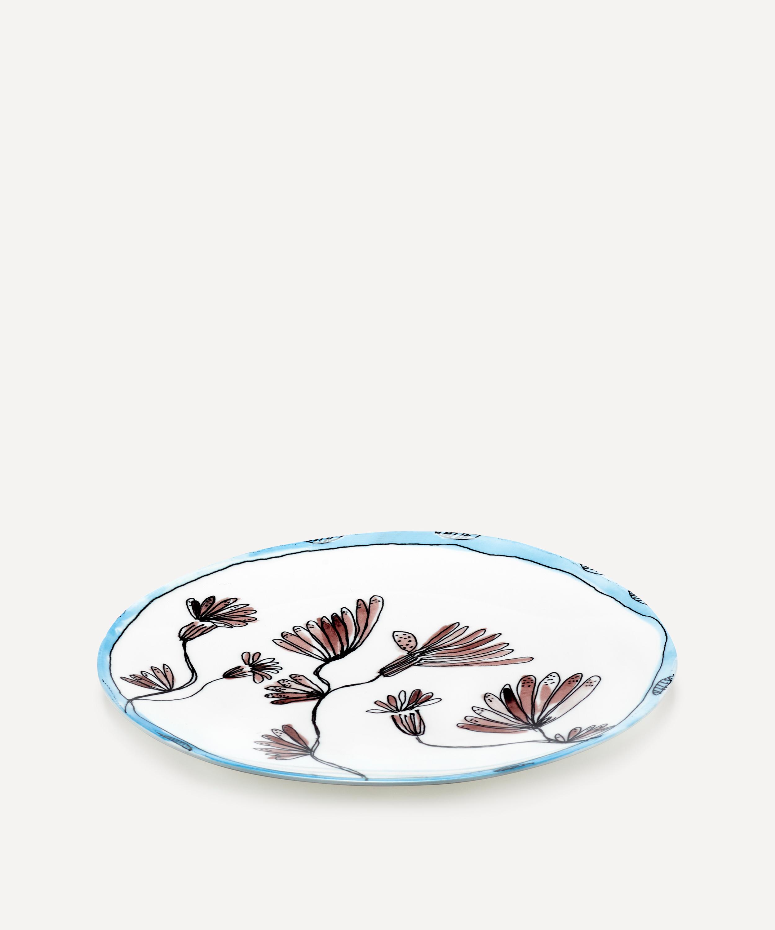 Fusing Marni’s joyful style with the homeware brand’s impeccable craftsmanship, this plate features a delicate illustration of a central aubergine-hued flower complimented with subtle painterly banding. Finished with a protective glazed layer, arrange with other pieces from the collection for a brilliantly botanical tablescape.