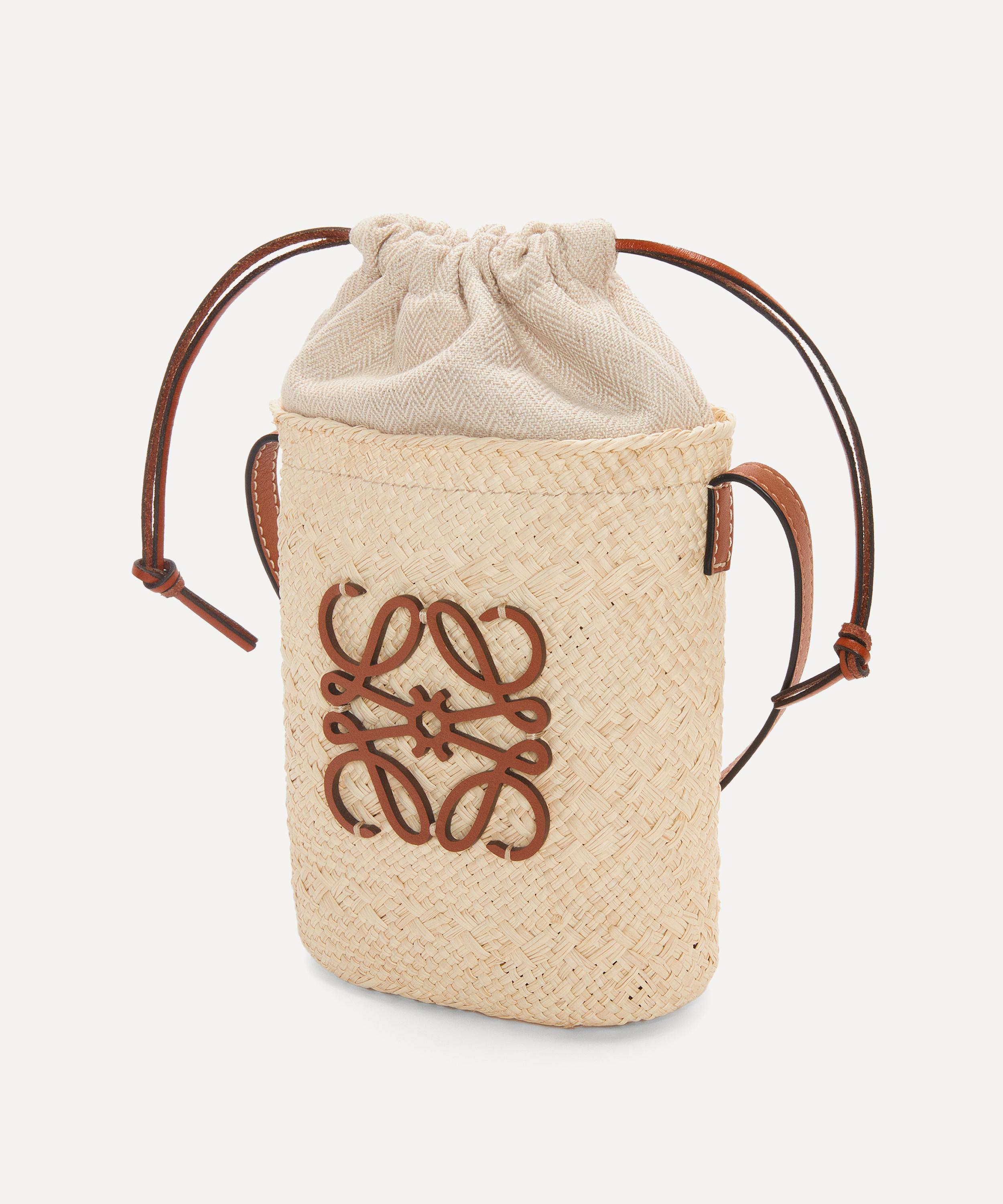 Part of Loewe’s Paula’s Ibiza collection, each piece takes inspiration from Armin Heinemann’s namesake 1970s Spanish boutique – fusing the store’s iconic care-free hippie sentiment with a Mediterranean colourway. Crafted from palm leaf, this square pocket bag showcases a rustic, unlined design with a leather shoulder strap and a drawstring top in herringbone cotton canvas. Finished with the brand's distinctive Anagram logo embroidered in leather on the front, this piece is ideal for market shopping, city strolls and trips to the beach.