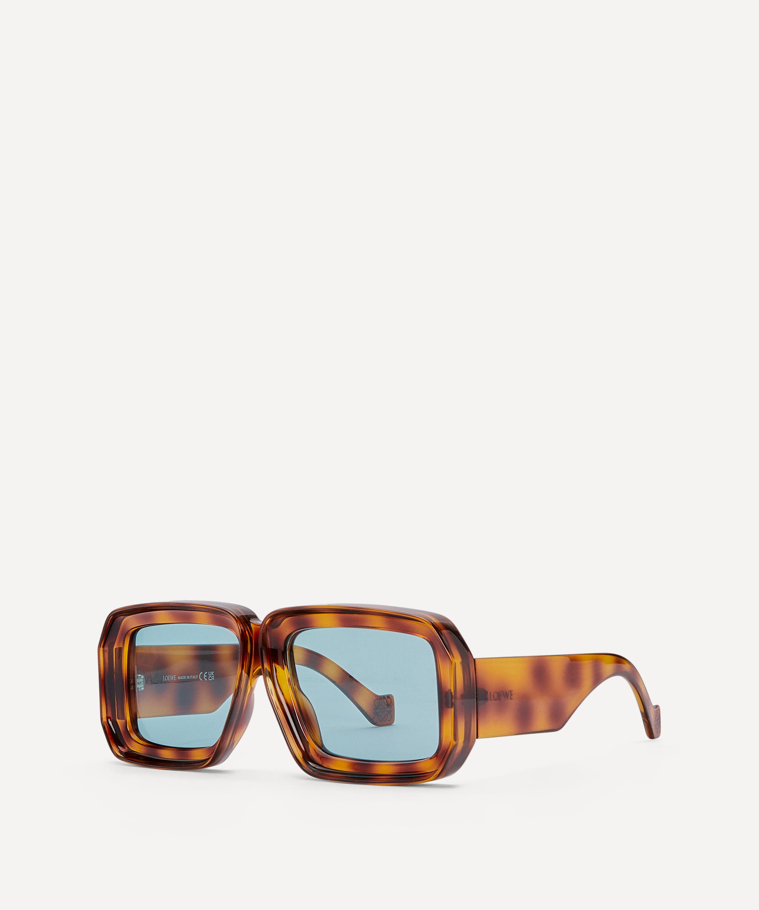 Crafted in Italy from glossy acetate, these sunglasses have a chunky square silhouette with thick lens rims that recall traditional diving masks. In a versatile Light Havana colourway with a brand logo at each temple, they are a continuation of the bold hues and urban architecture that appear throughout the collection - pair them with one of the label's woven basket bags for the ultimate summer look.