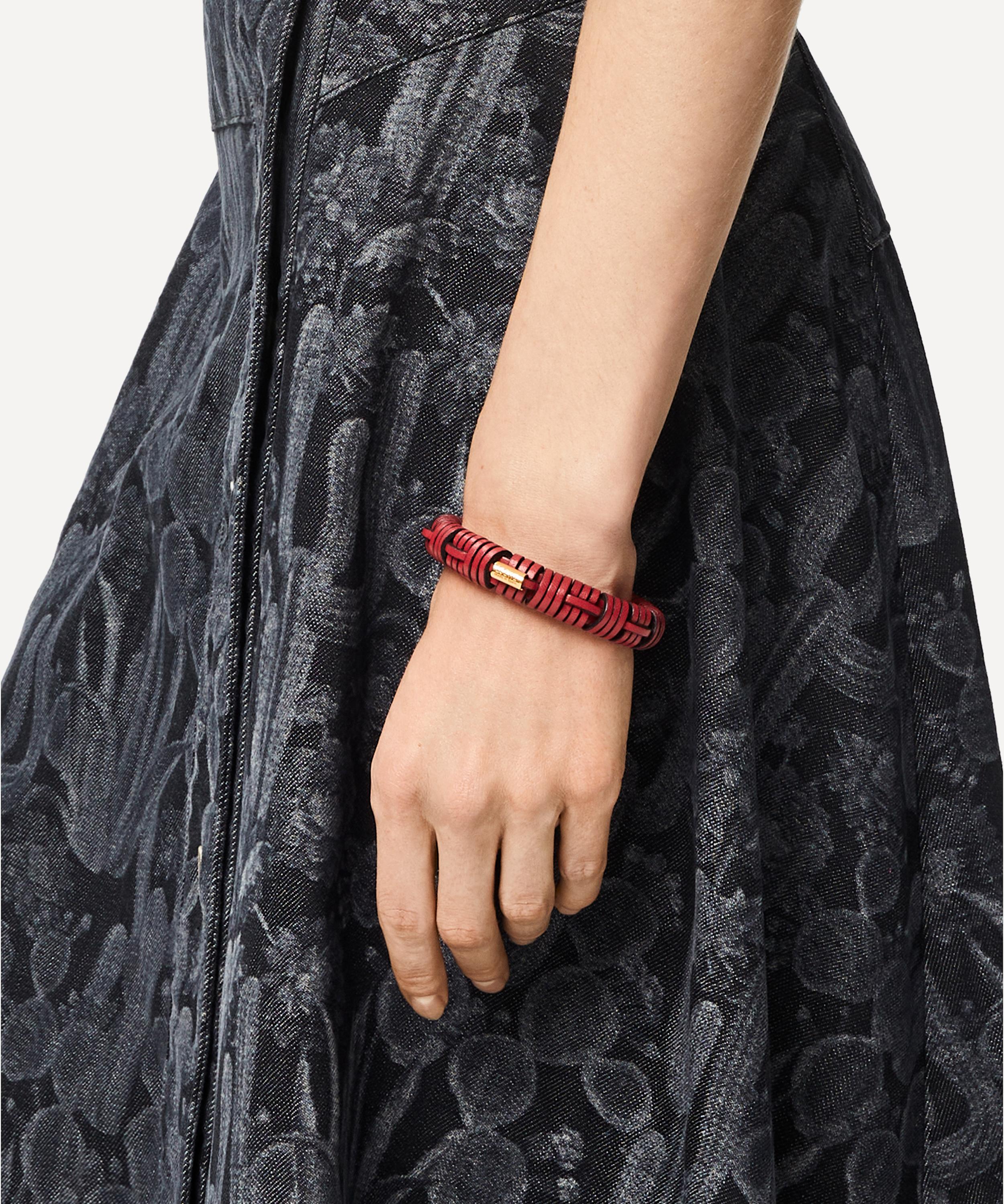 Crafted with intricately woven calfskin leather and brass, this bangle from Loewe will bring rustic style and dimension to your daily repertoire.