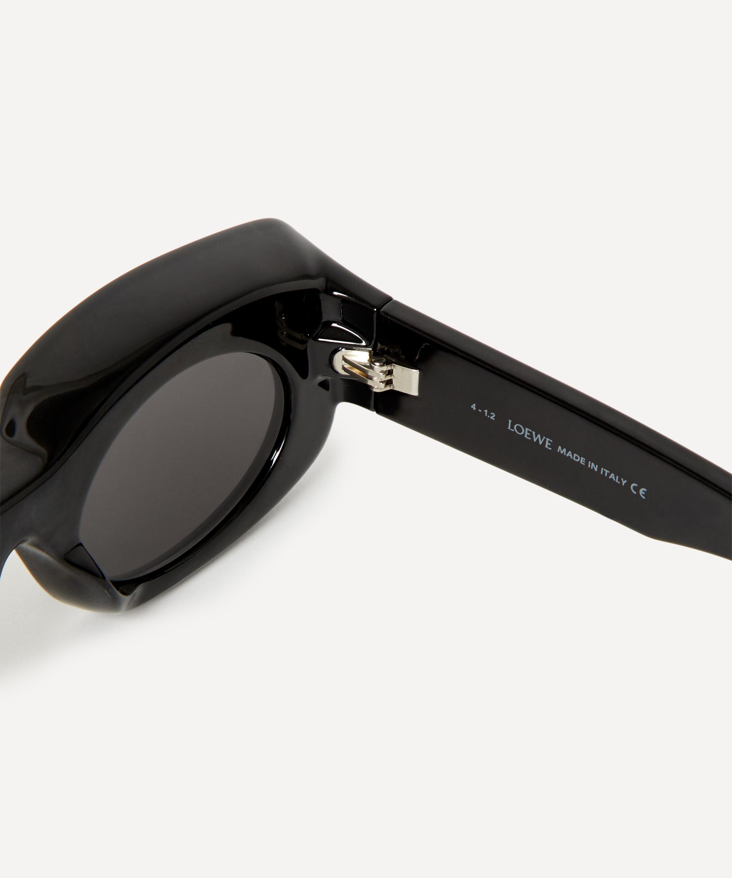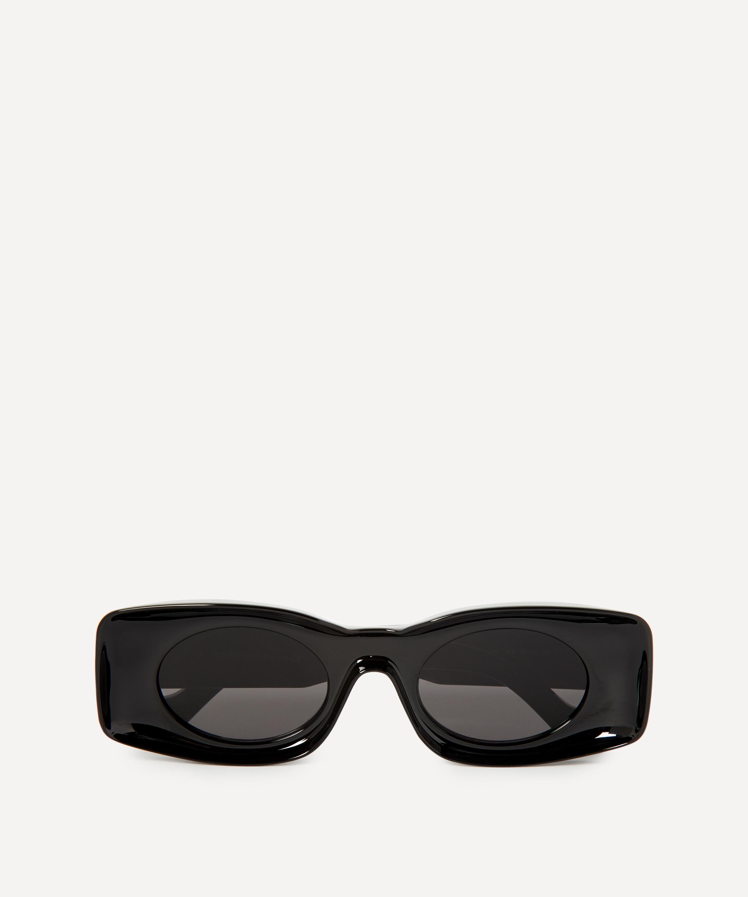 Crafted in Italy from glossy black acetate, these sunglasses have a thick square silhouette with sculptural curved lens rims. Complete with round black lenses and a contrasting white brand logo at each temple, they are a continuation of the architectural aesthetic that appears throughout the collection - pair them with one of the label's woven basket bags for a breezy summer look.