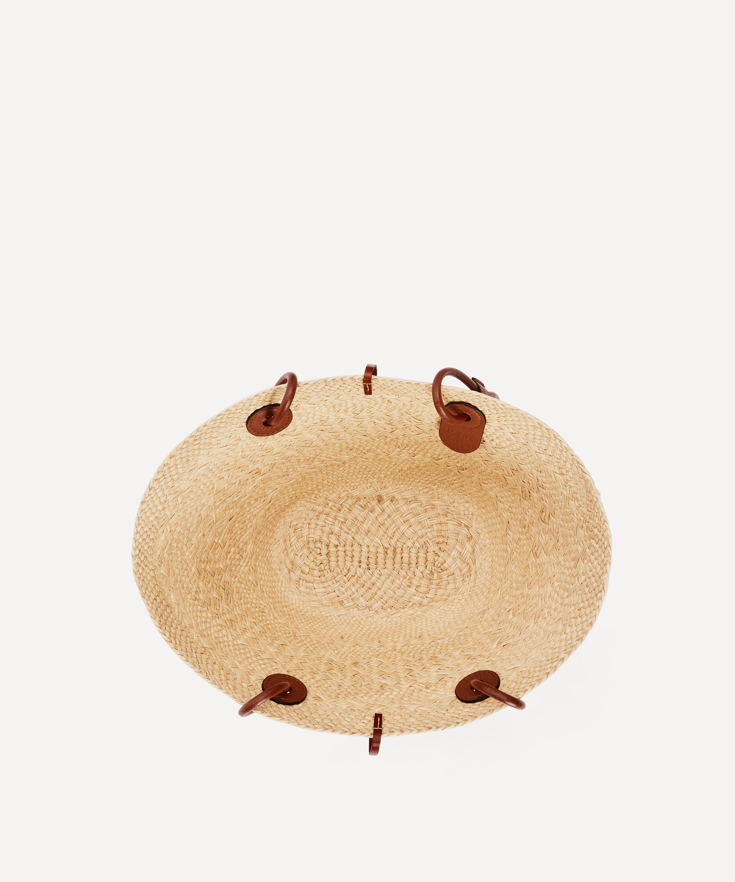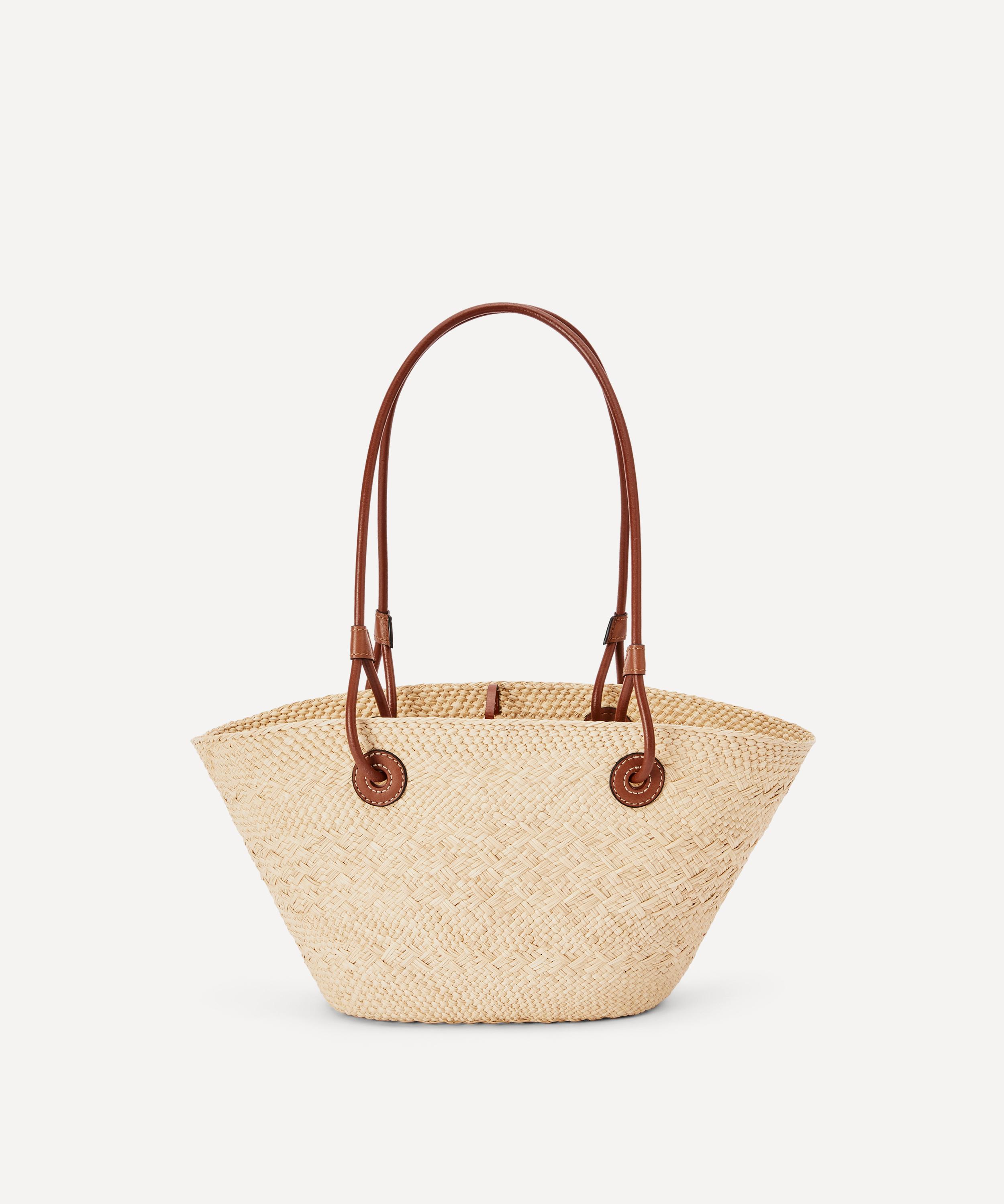 Part of Loewe’s Paula’s Ibiza collection, each piece takes inspiration from Armin Heinemann’s namesake 1970s Spanish boutique – fusing the store’s iconic care-free hippie sentiment with a Mediterranean colourway. This smaller version of Loewe's Basket bag is crafted from iraca palm that's cultivated, harvested and sun-dried in Colombia, then hand-woven by women artisans from fair trade organisation Corporación Oficio y Arte. Each one is finished with calfskin leather details including a tie fastening, two tubular top handles and a large Anagram logo plaque stitched to the front - ideal for market shopping, city strolls and trips to the beach.