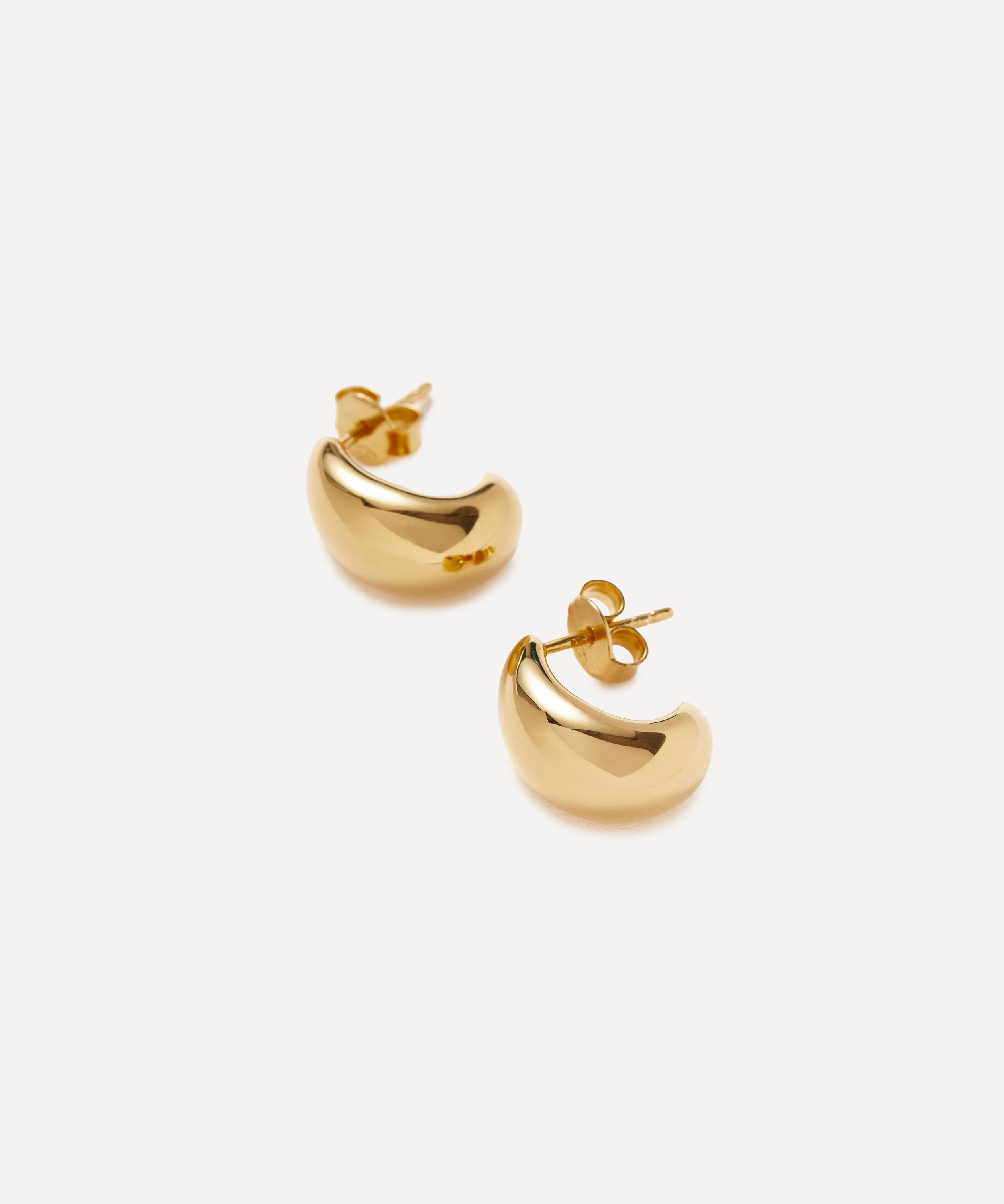 Made in collaboration with creative SAVISLOOK, this pair is crafted from sterling silver plated in 18ct gold vermeil, featuring a chunky dome silhouette in a polished finish – boasting a pared-back, modern look with a subtle vintage aesthetic. Style with the Dome Medium Hoop Earrings to create a scaled hoop stack, or wear solo for a minimal statement look.
