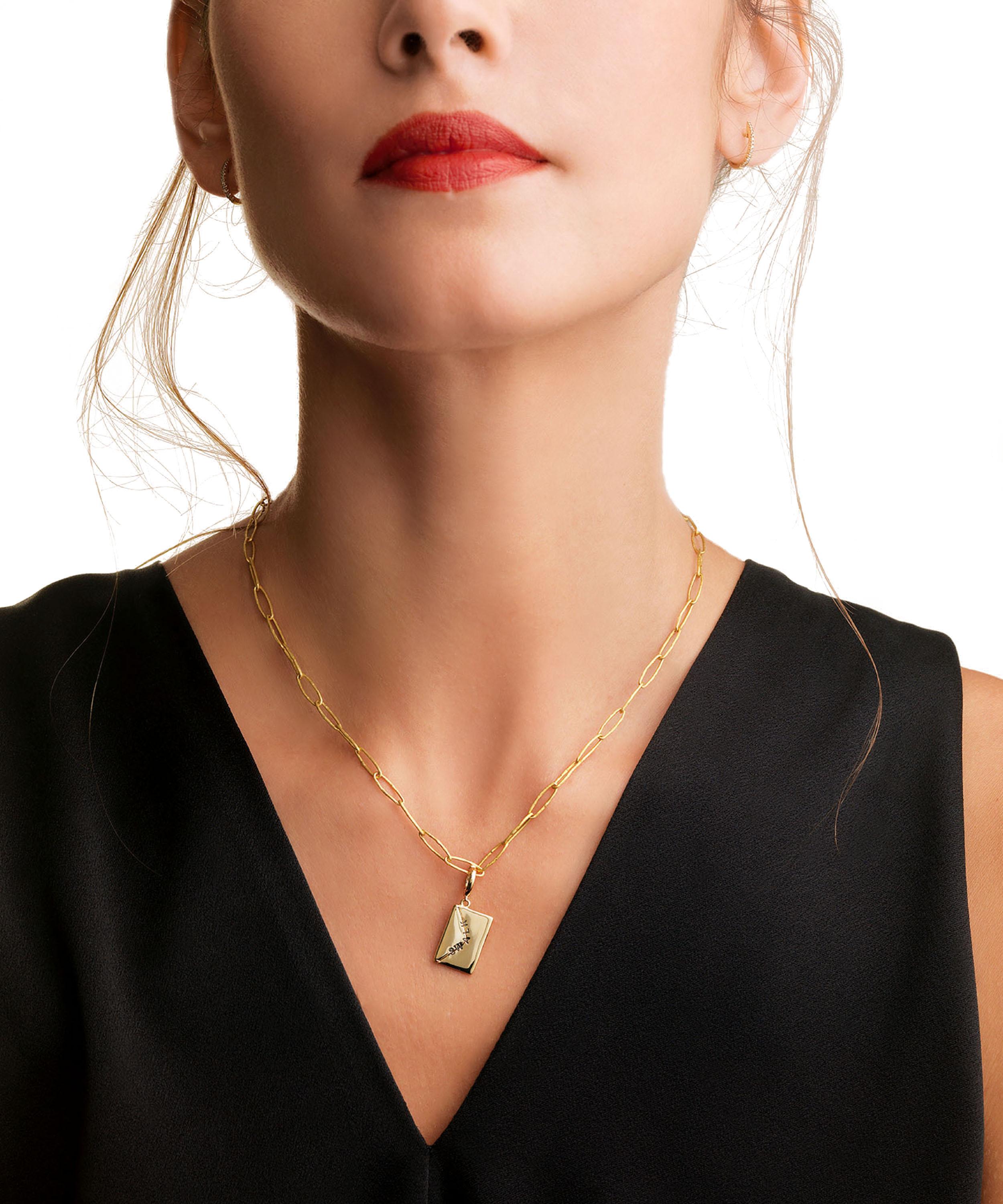 Combining Annoushka's intricate craftsmanship with the subversive beauty of The Vampire's Wife, this collaborative collection features a single charm bracelet and 13 charms inspired by Susie's favourite Nick Cave song lyrics. Crafted from high-polished 18 carat gold, the 'Love Letter’ charm is characterised by a small hinged envelope with a 'LOVE LETTER' engraving on the back and 'SWALK', or 'Sealed With A Loving Kiss', engraved on the seal. Style it solo on a simple chain necklace or mix and match with others from the collection for your own custom curation of memories, immortalised in gold.