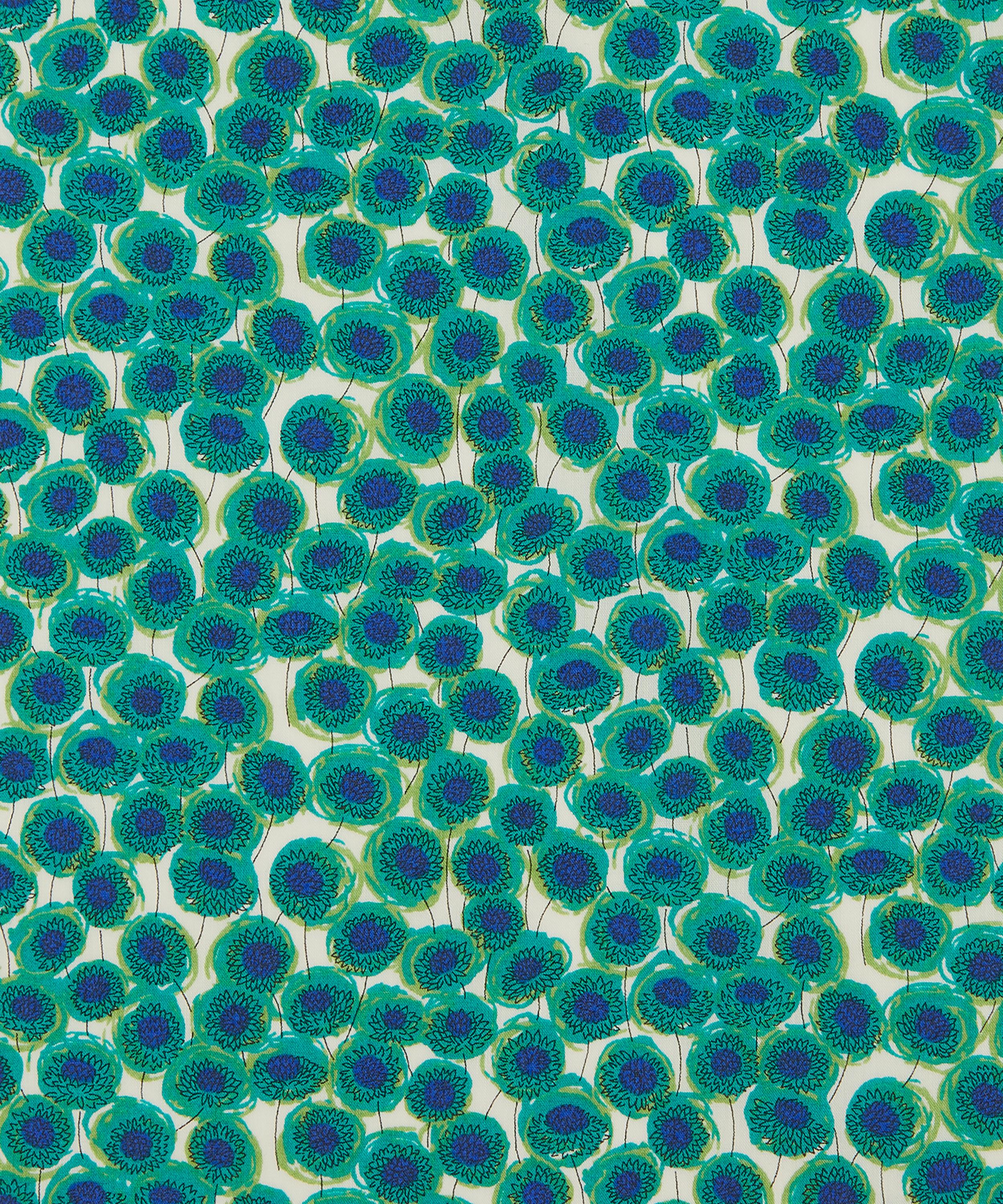 Originally created in 2011, Xanthe Sunbeam draws inspiration from the golden wildflowers scattered across Tresco Abbey Garden in the Isles of Scilly. Painted on-site, this vibrant, densely packed meadow design features stylized circular blooms with delicately outlined petals, enhanced by loosely applied inky washes that add depth and texture.