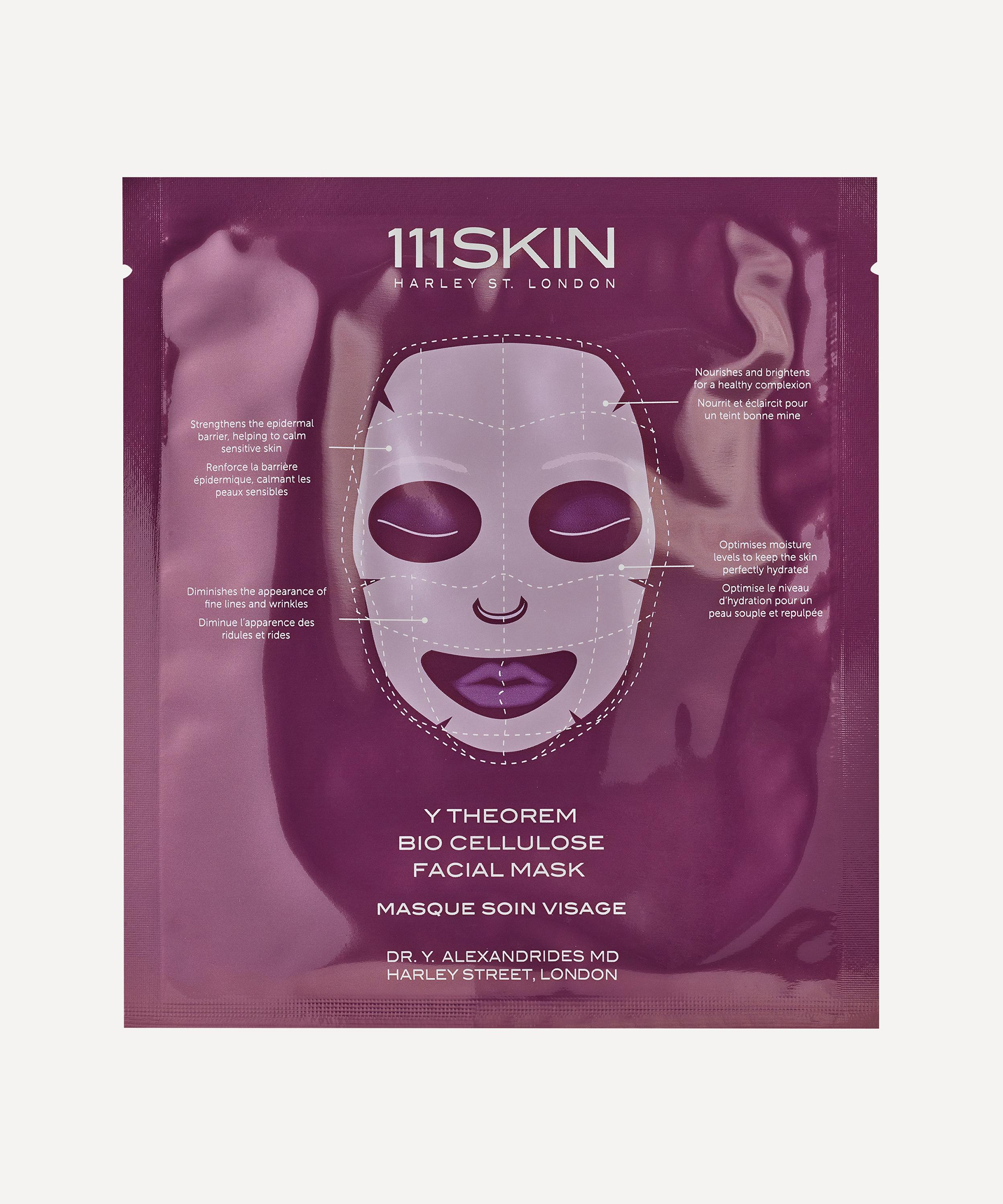 111SKIN's Y Theorem Bio Cellulose Facial Mask is a hydrating sheet mask designed to soothe, support and strengthen stressed skin for a repaired and rejuvenated appearance.