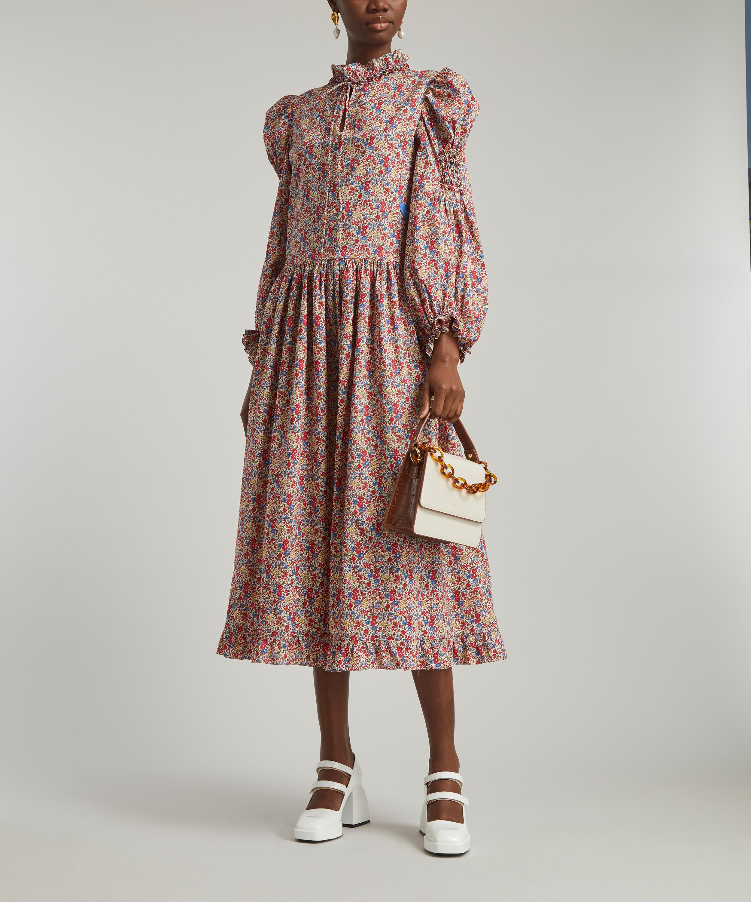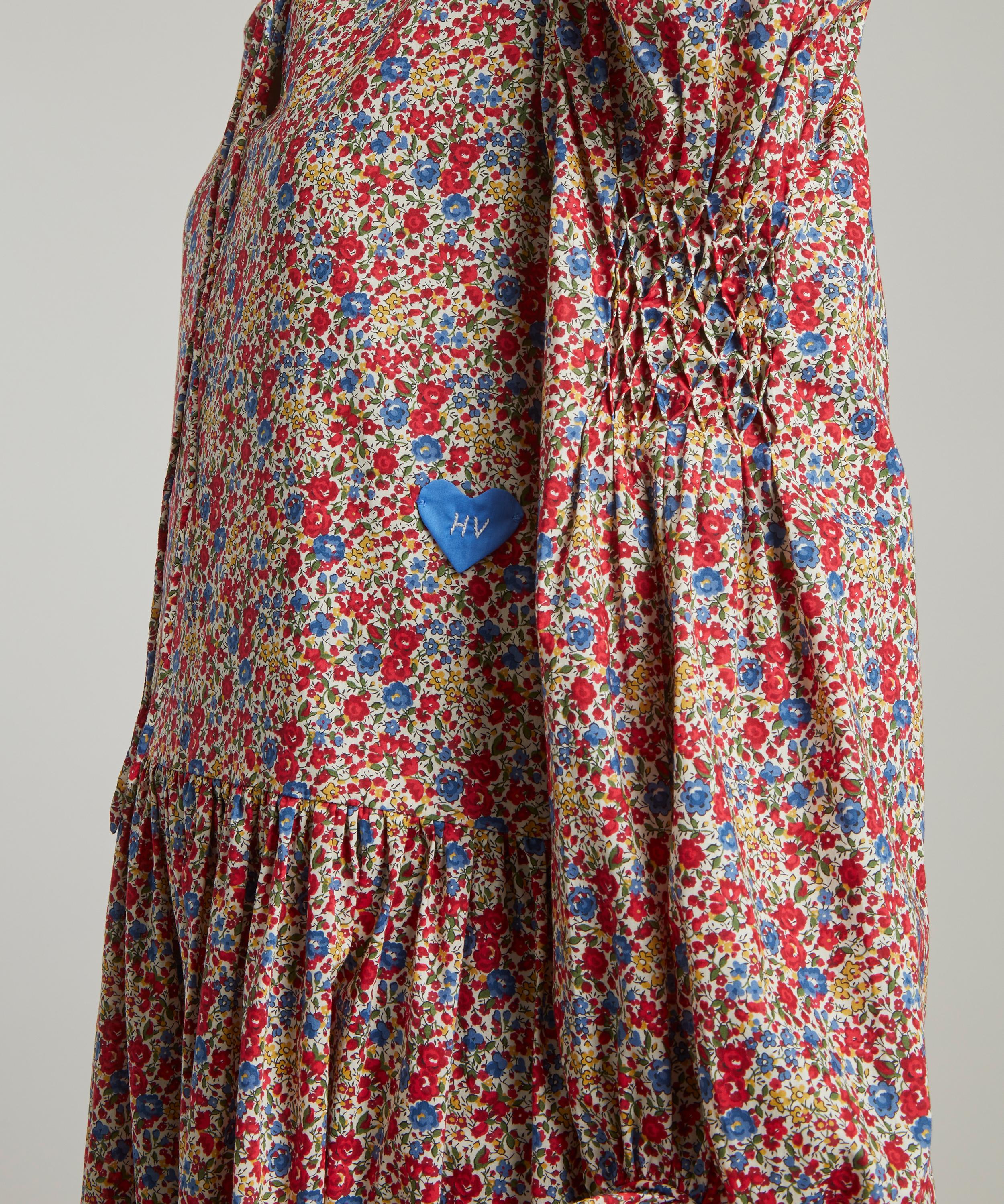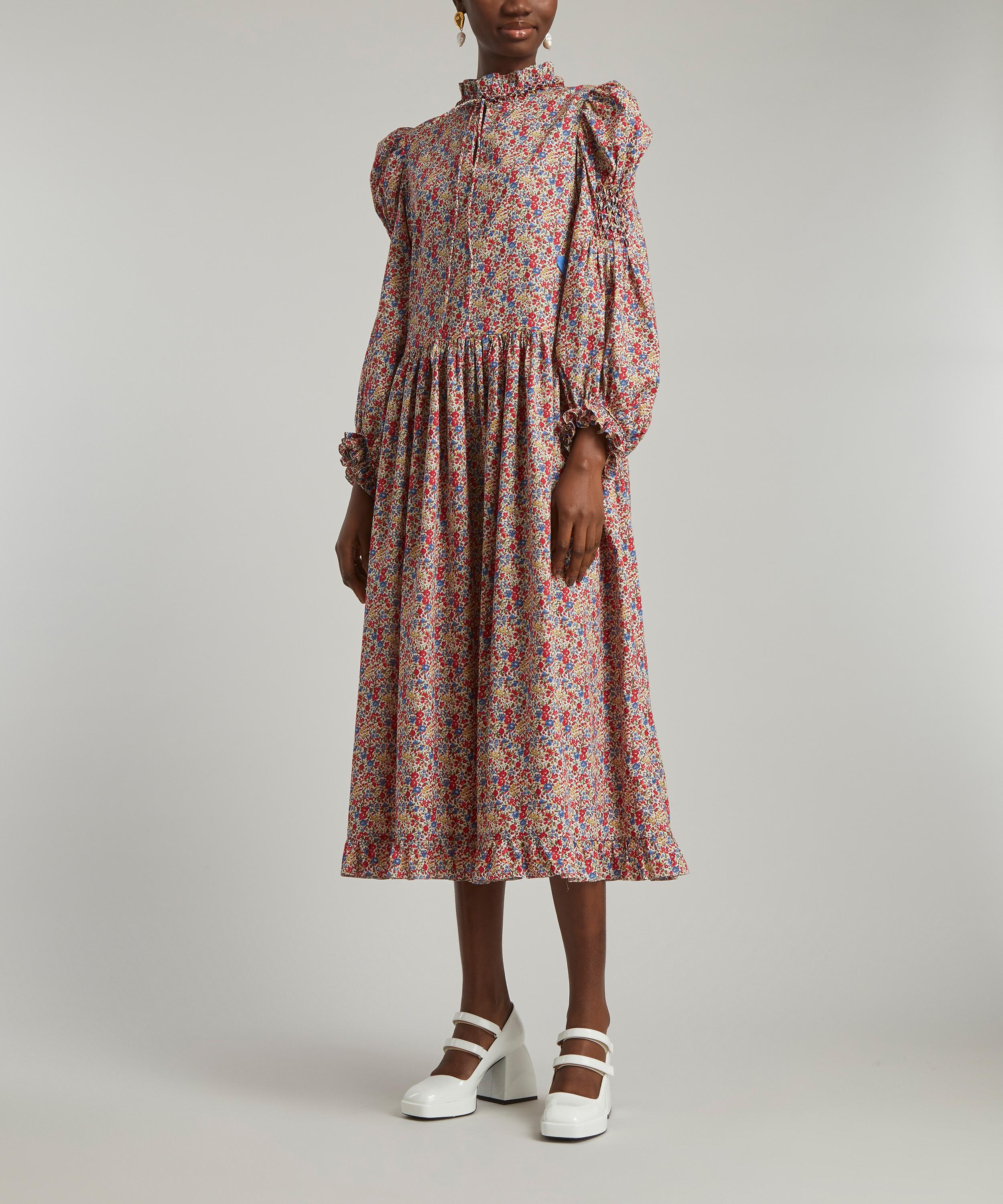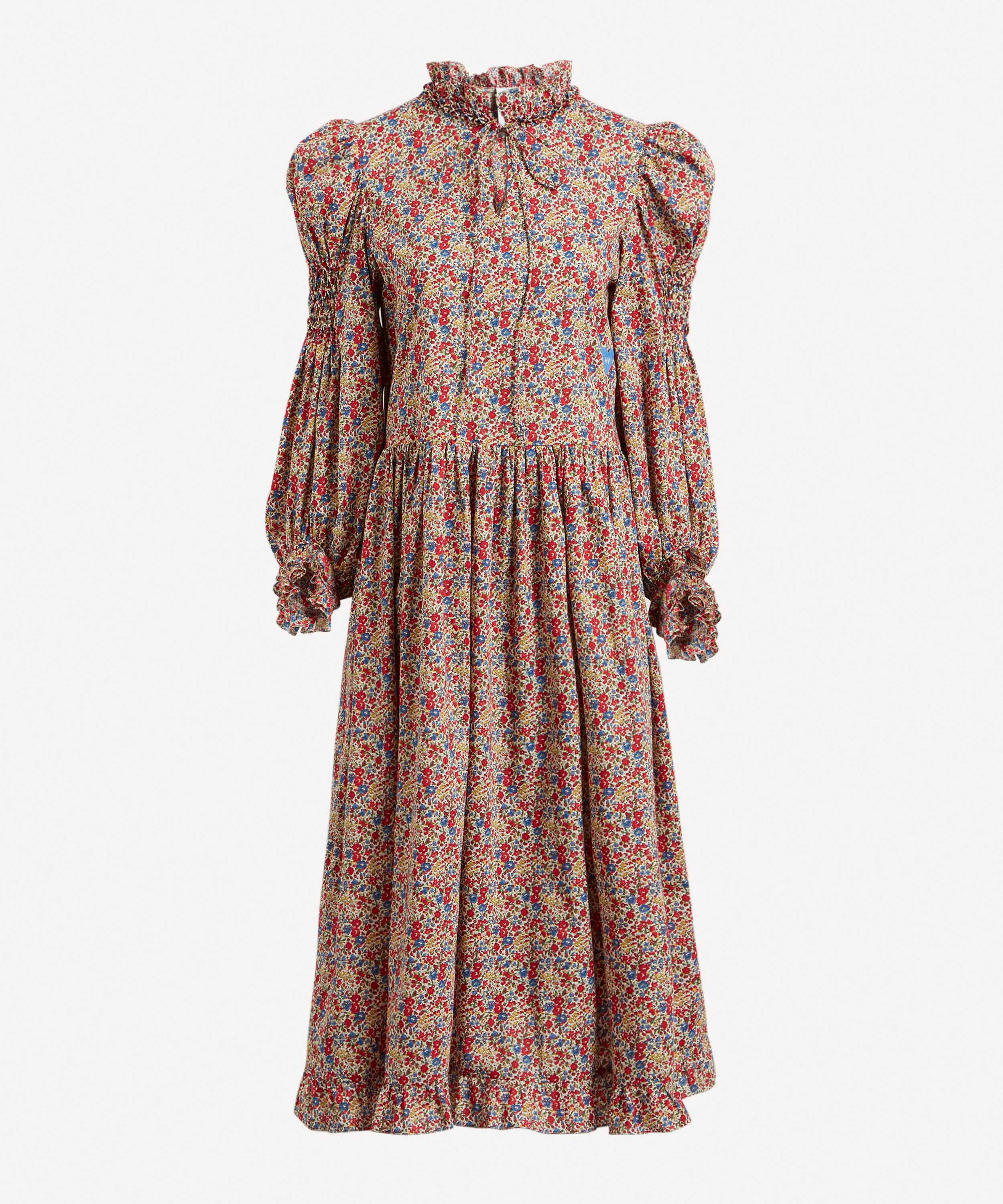 Fusing feminine frills with floral Liberty prints, Munich-based label Horror Vacui presents the Yuzuki dress. Inspired by vintage nightwear from the 15th and 16th century, this twee dress is crafted from Liberty’s classic Emma and Georgina Tana Lawn™ Cotton, and cut to a relaxed, tiered silhouette with an adjustable string belt for a fitted finish. A dainty design, its hand-smocked blouse features honeycomb pleating along its ruffled high-neckline, complete with further smocked detailing across its puffed sleeves for a modern finishing touch.