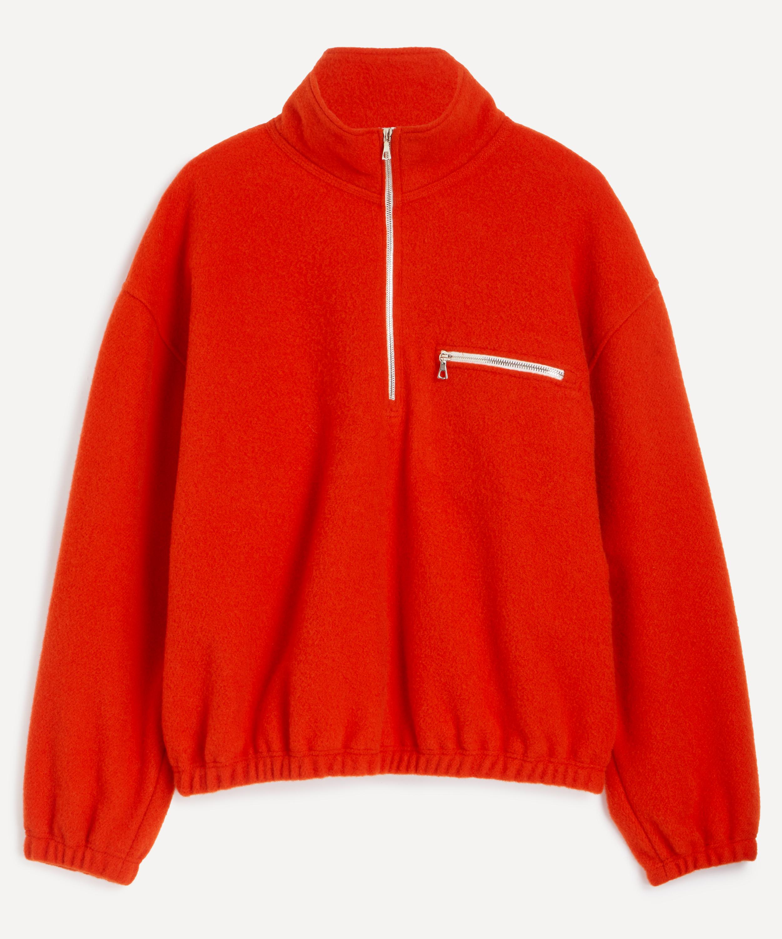 Made in Austria, this fleece is crafted from plush wool fleece-pile. Cut for a relaxed, boxy fit with dropped shoulders, it features a standing collar fastened with a Riri® half-zip, and a zipped pocket to the chest for an elegant, sporty aesthetic.