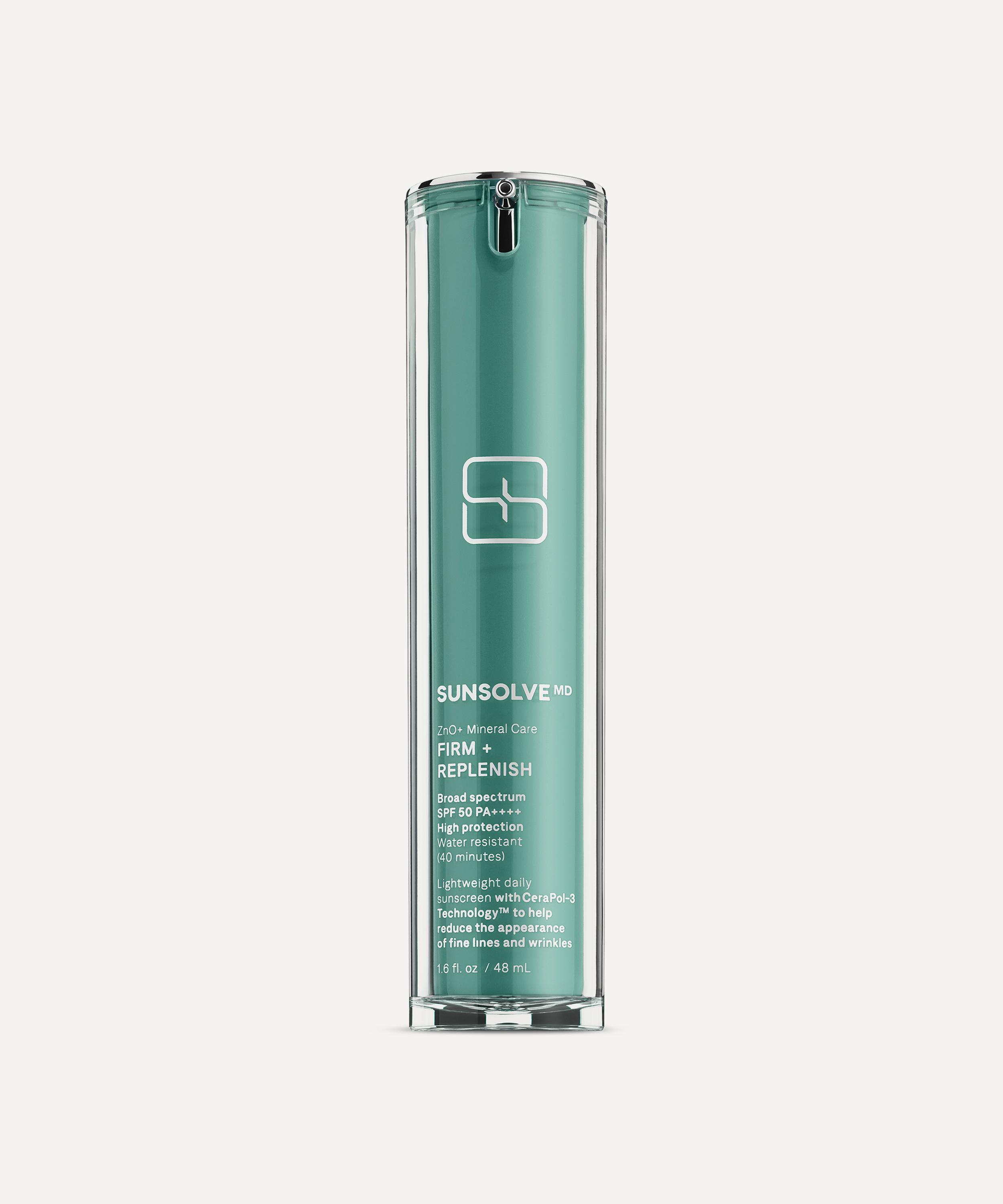 Replenish your skin with SunsolveMD's best-selling ZnO+ Mineral Care Firm + Replenish Complex, a multi-tasking mineral sunscreen with broad spectrum SPF 50 that softens visible signs of ageing over time.