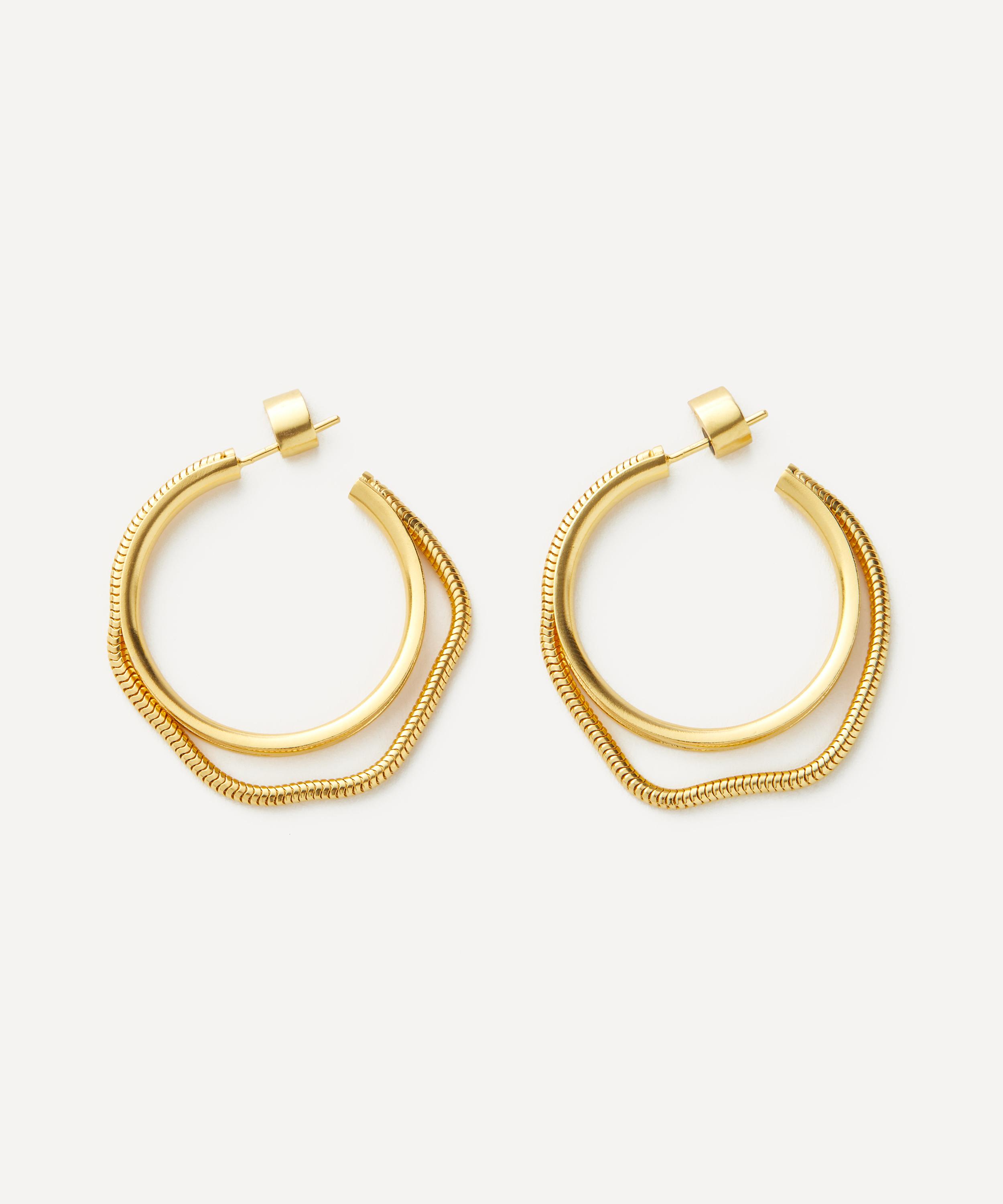 Maggoosh is an extension of the body’s natural movement fashioned into fluid forms, here expressed in the Twinkler hoop earrings. Crafted from 10ct gold and gold-plated silver, each earring features a slim, polished hoop adorned with a snake chain. Style yours with complimenting pieces from the brand’s extensive collection, or favourites from your own jewellery archive.
