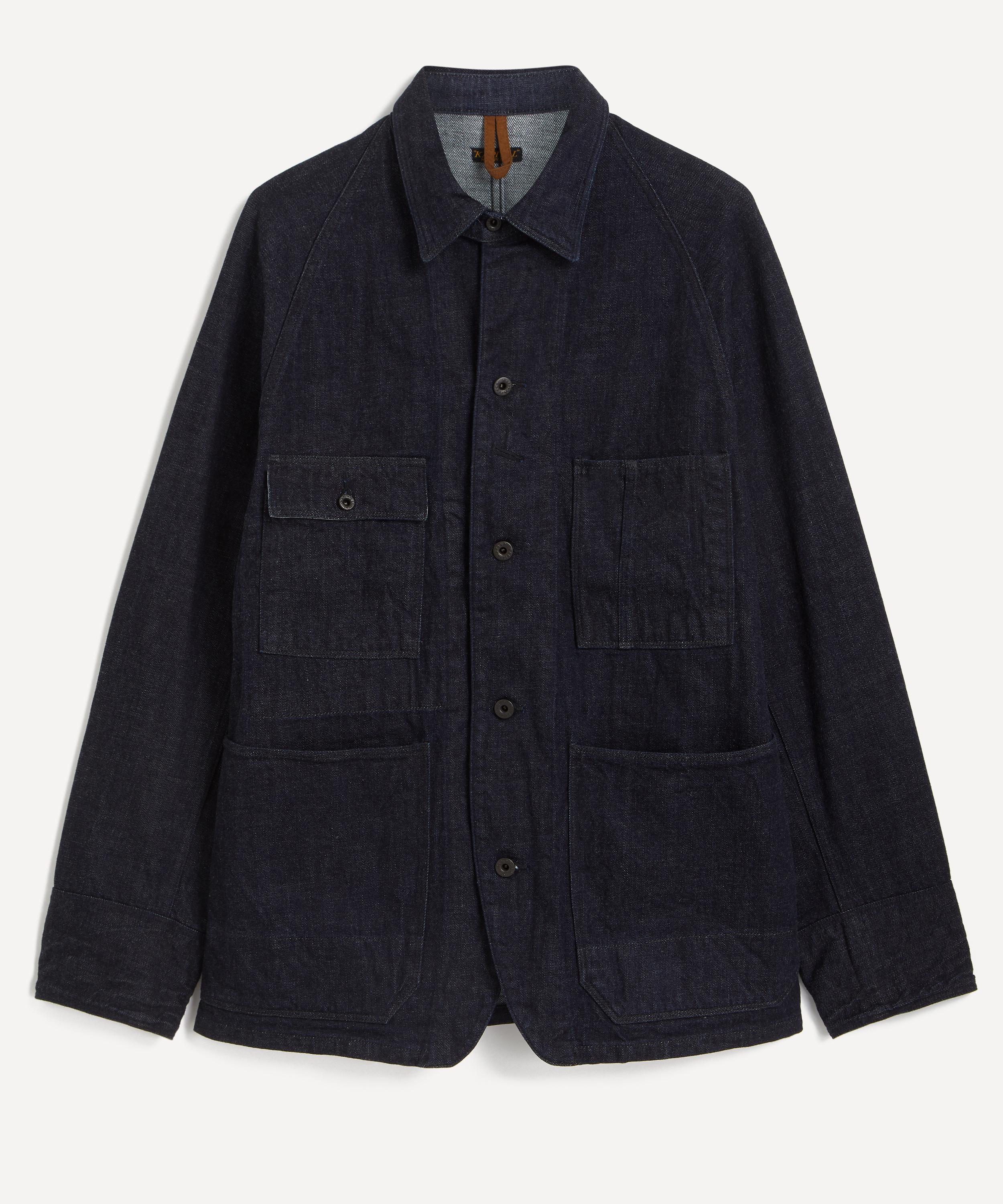 The 12oz Denim CACTUS Coverall BLK Thread Jacket from cult Japanese label KAPITAL is designed with a modern, streetwear-inspired aesthetic.