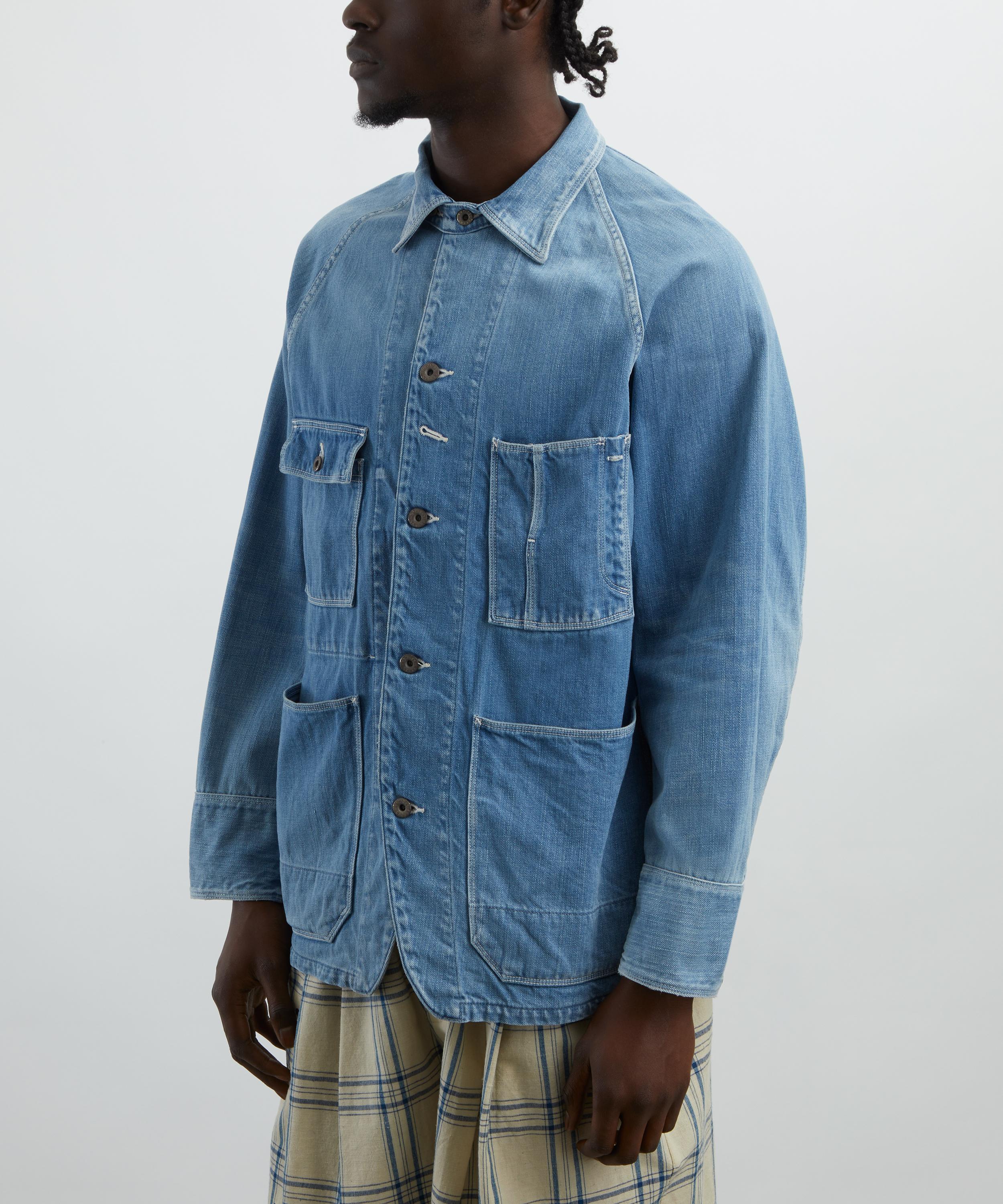 The 12oz Denim Cactus Coverall Jacket from cult Japanese label KAPITAL is designed with a modern, streetwear-inspired aesthetic.