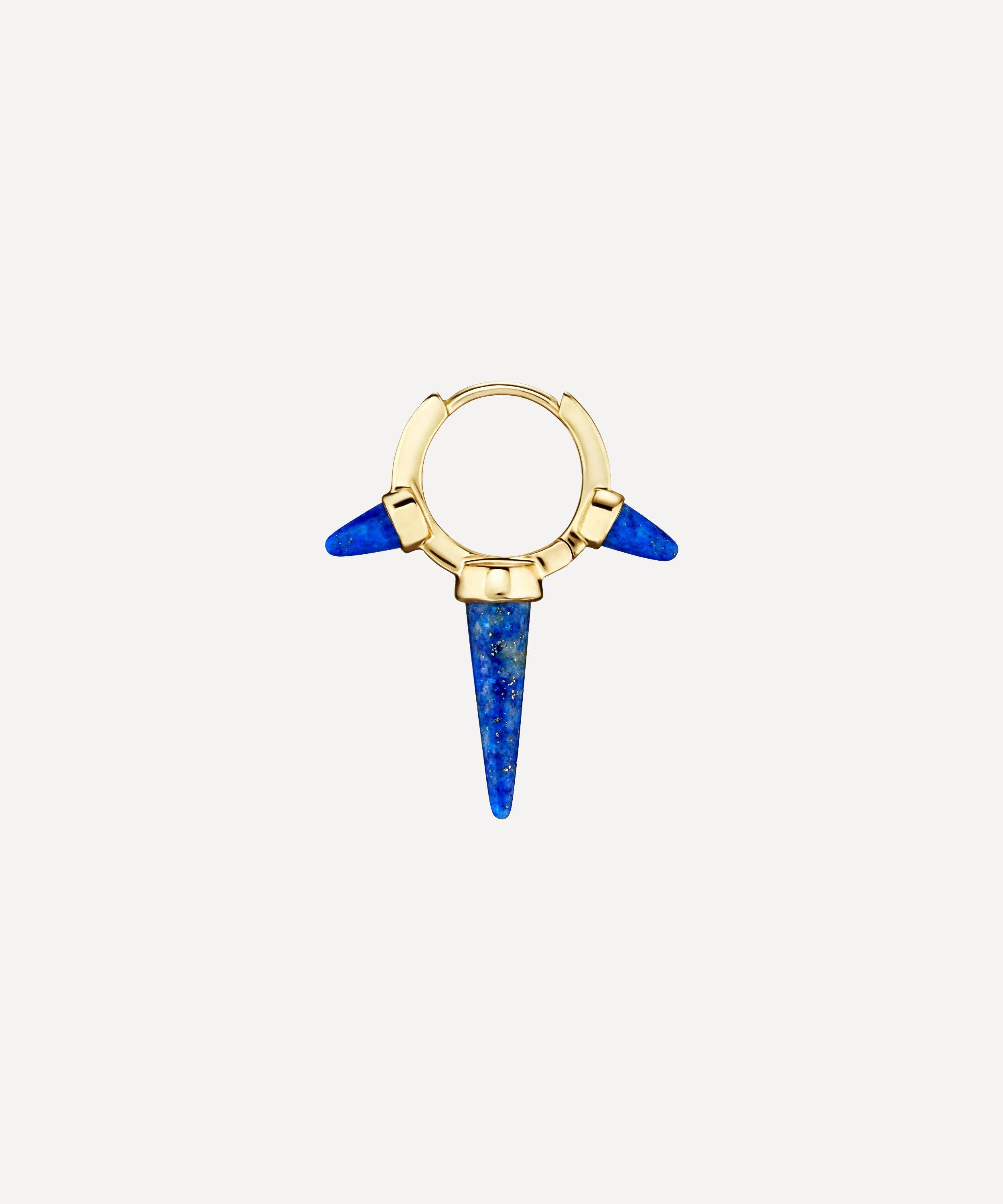 A colourful take on a Maria Tash signature, this hoop earring is adorned with two short lapis lazuli spikes and a long central spike for a dramatic, punk-inspired drop.