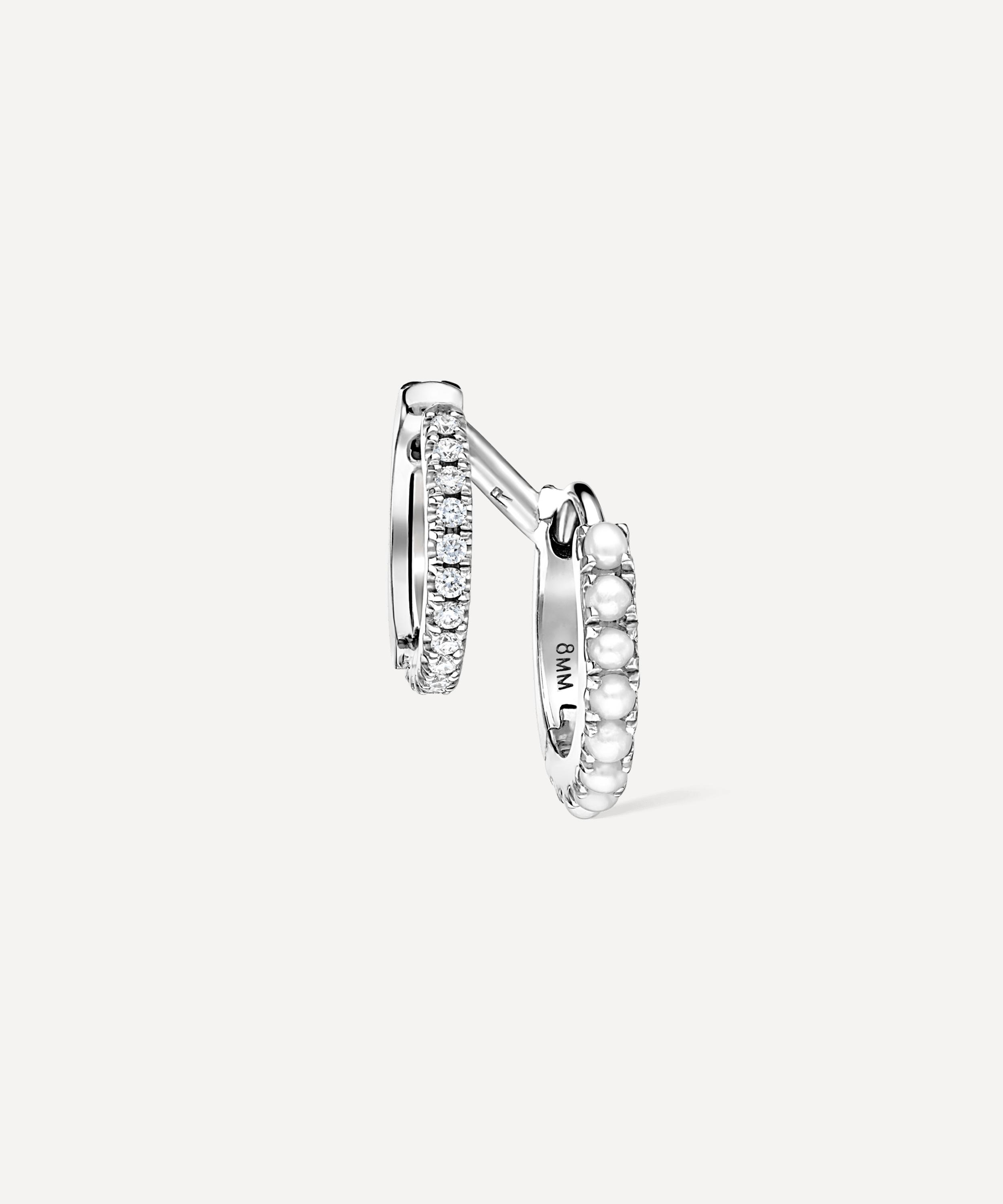 14ct 8mm Pearl and Diamond Double Linked Eternity Hoop Earring Right